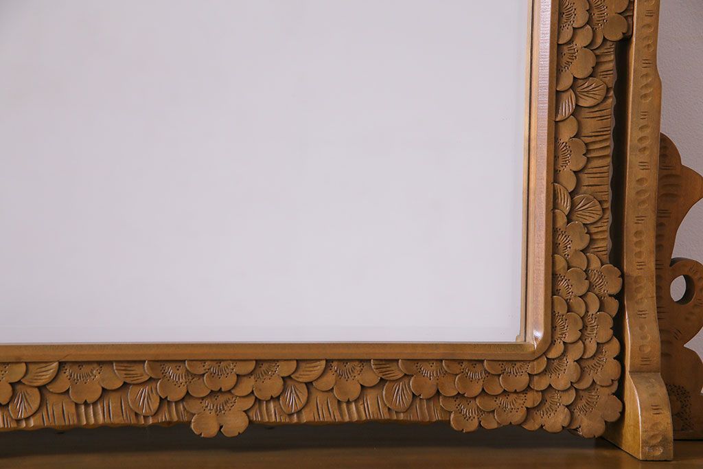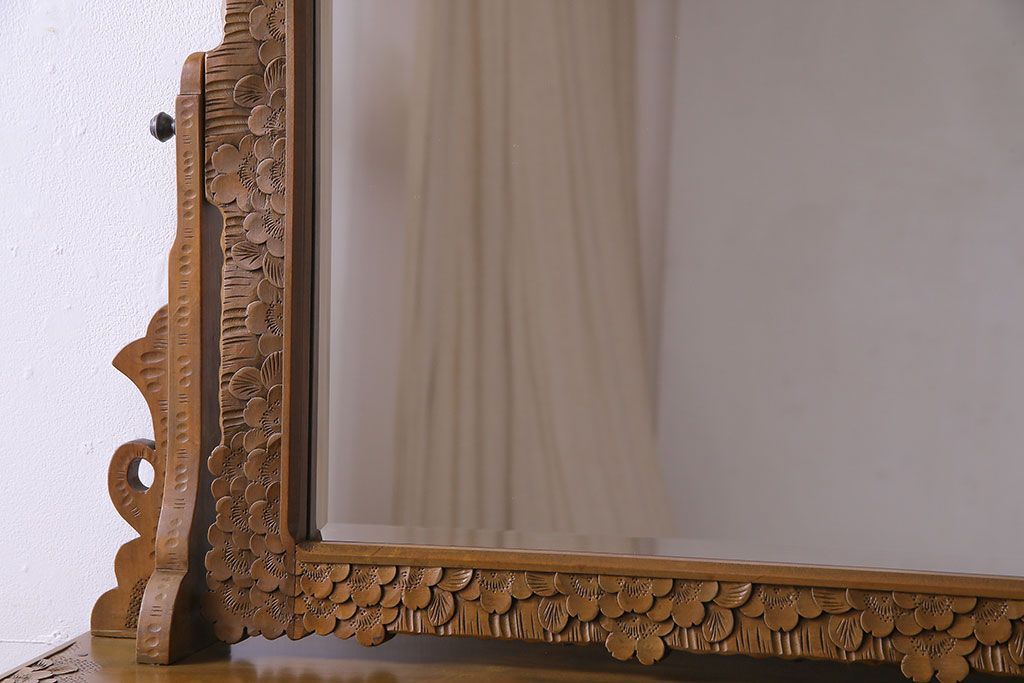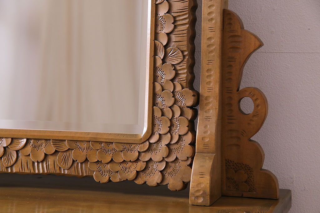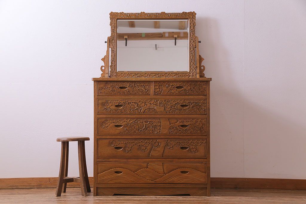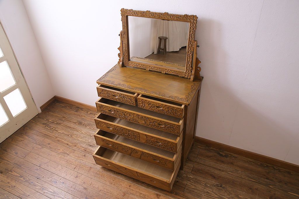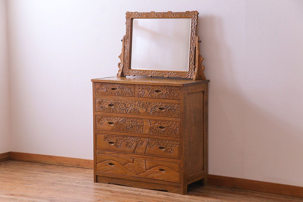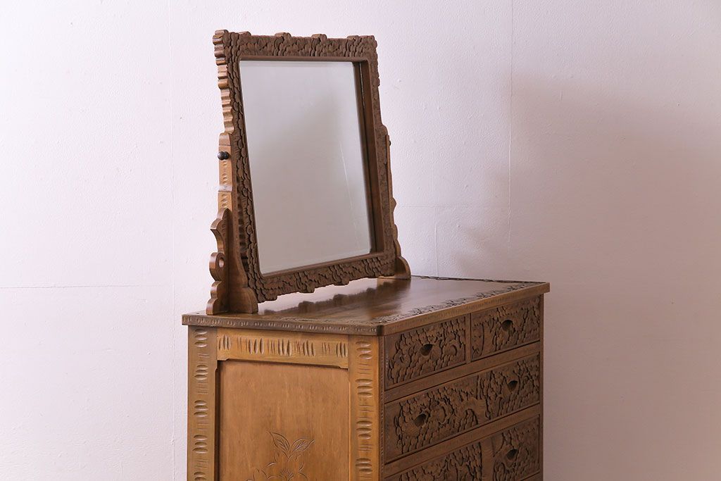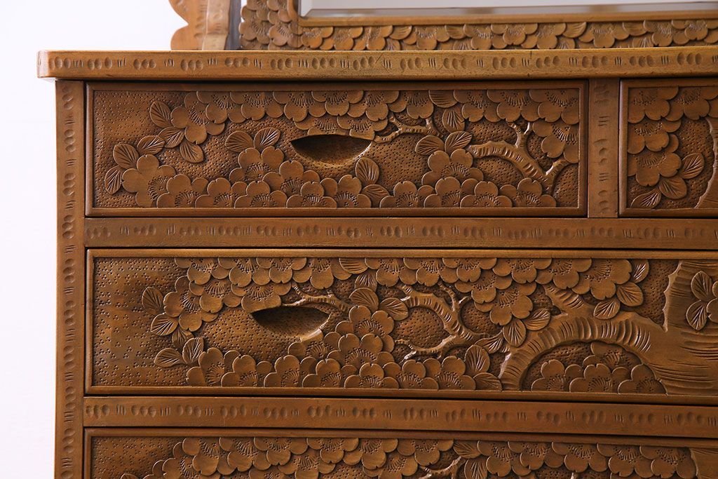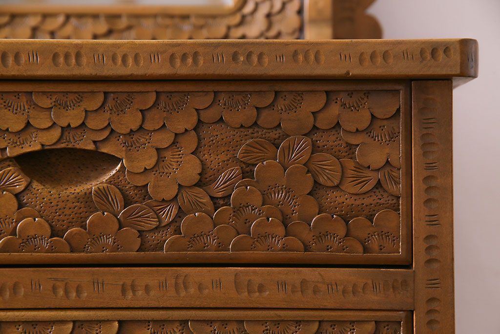 中古 伝統工芸軽井沢彫り 華やかな印象のドレッシングチェスト(ドレッサー、鏡、ミラー)