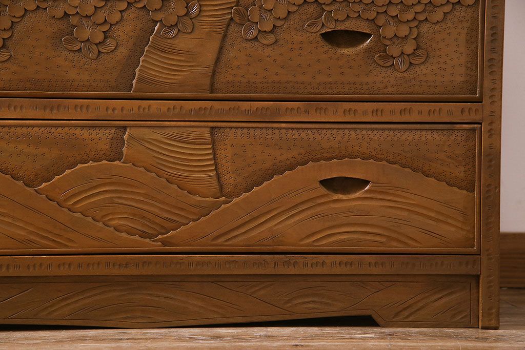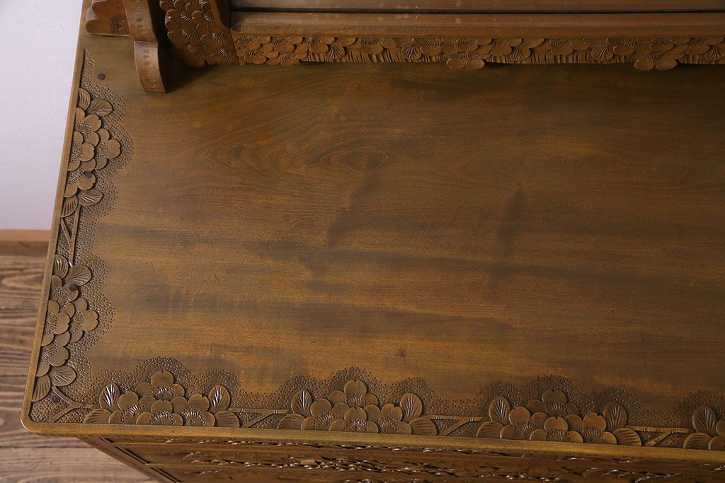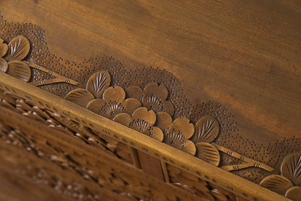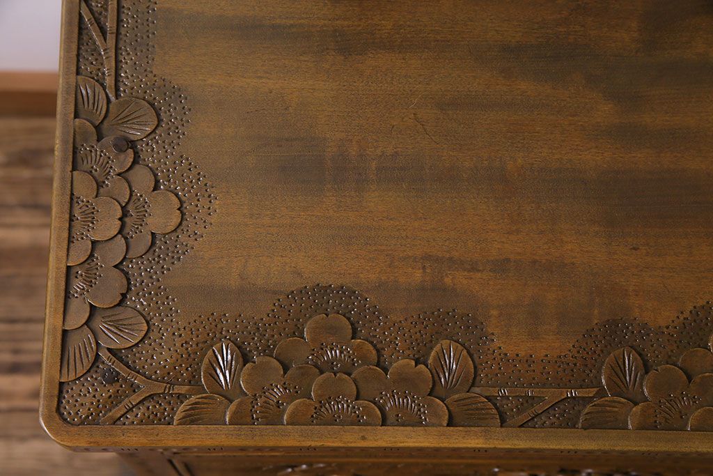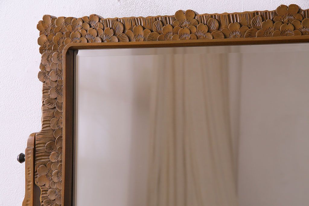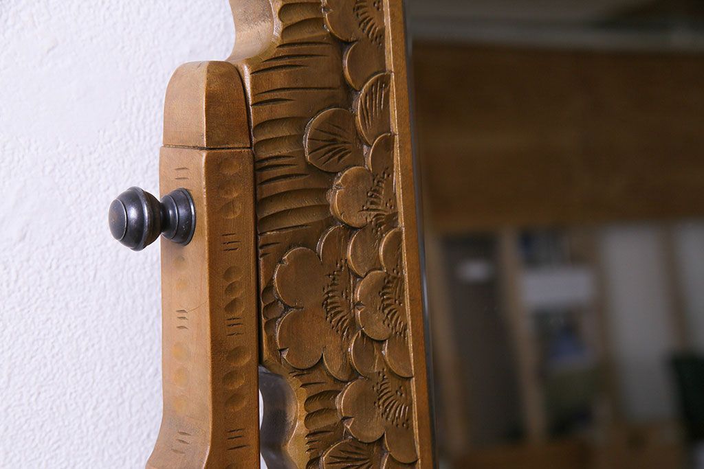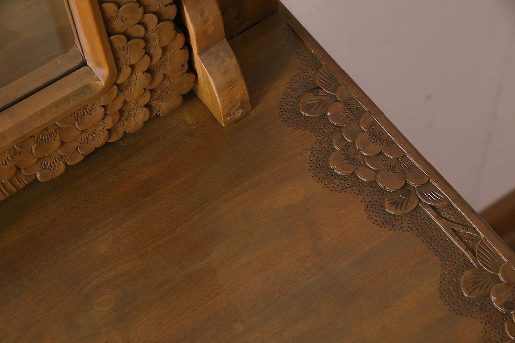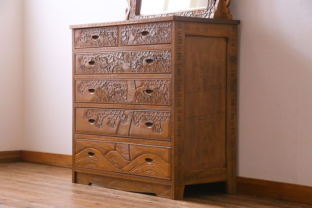 中古 伝統工芸軽井沢彫り 華やかな印象のドレッシングチェスト(ドレッサー、鏡、ミラー)