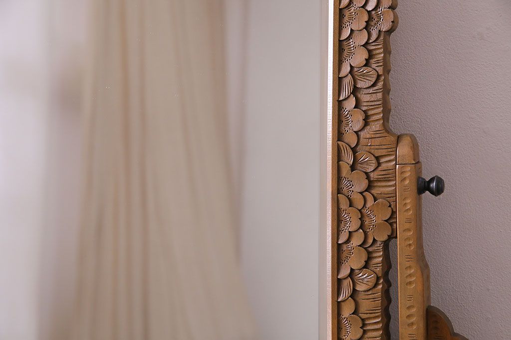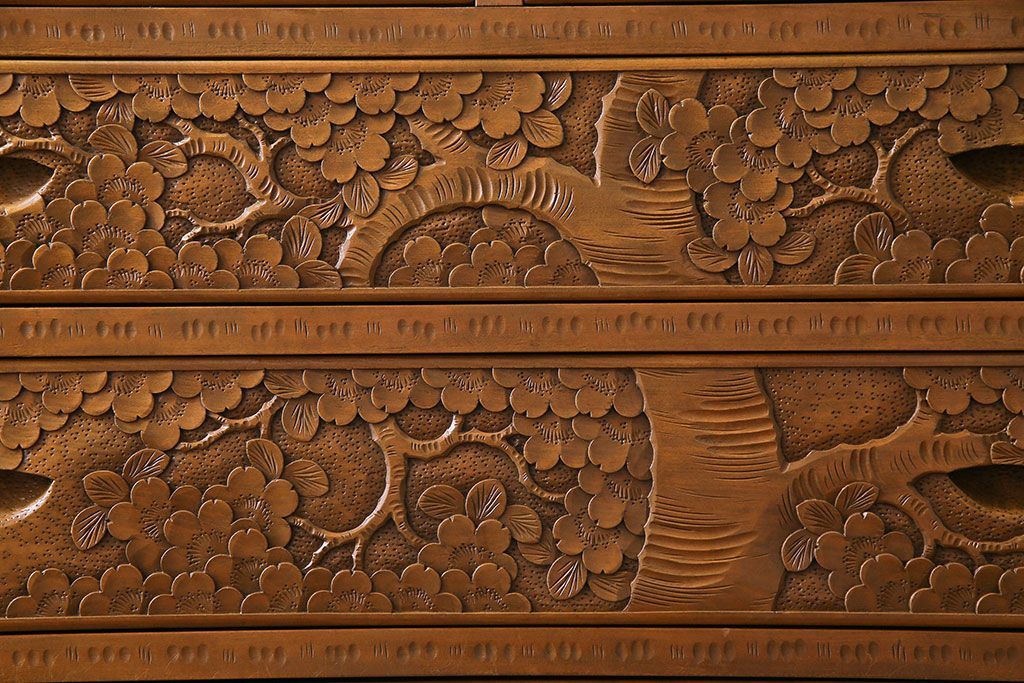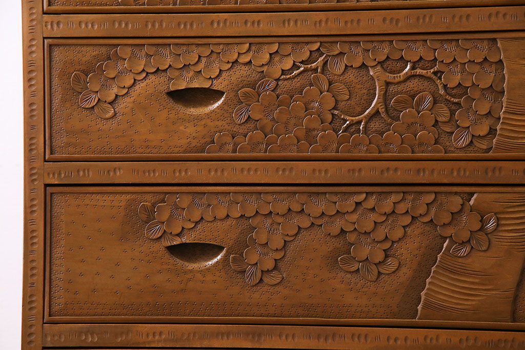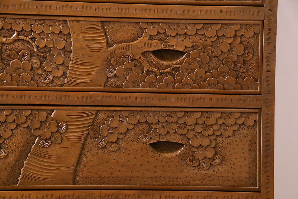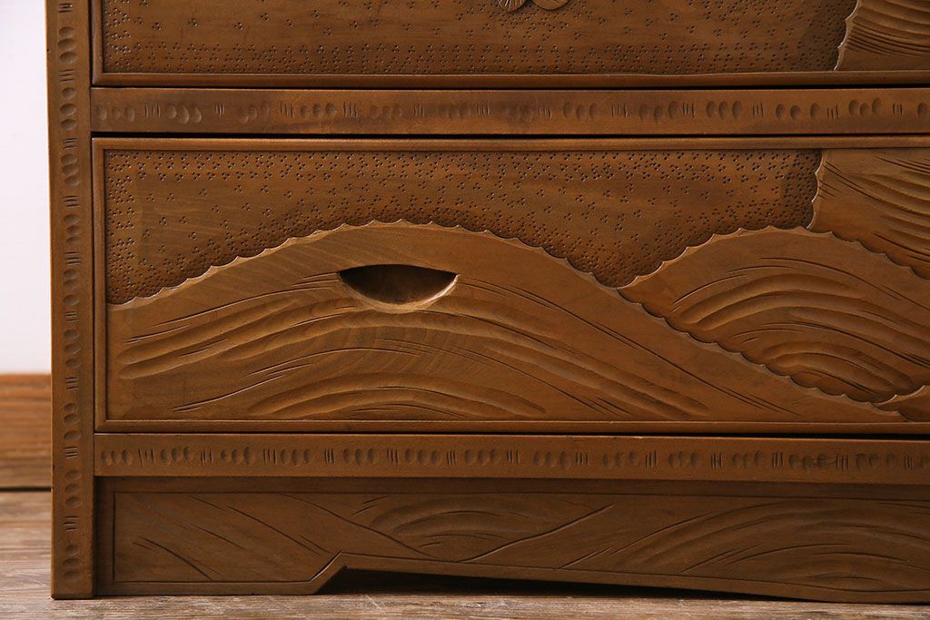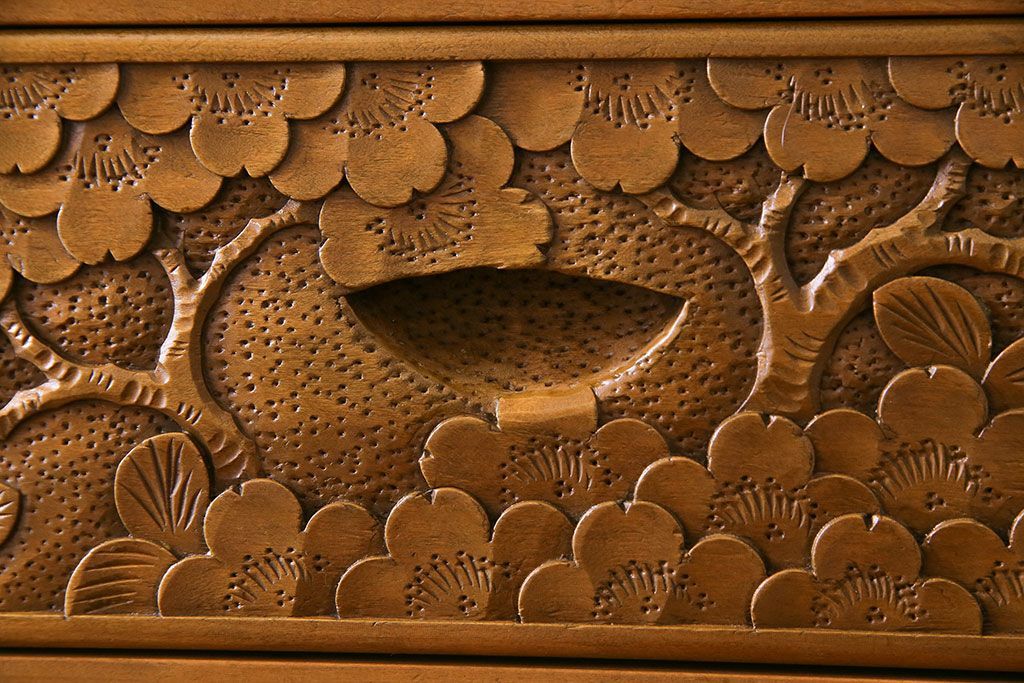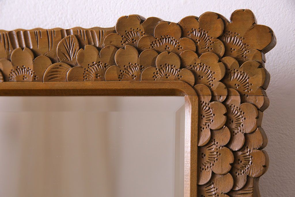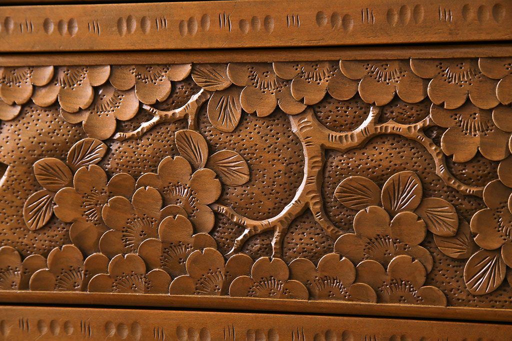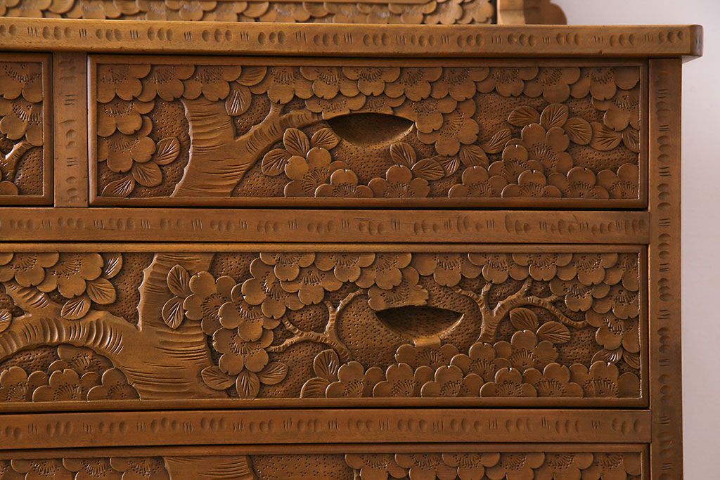 中古 伝統工芸軽井沢彫り 華やかな印象のドレッシングチェスト(ドレッサー、鏡、ミラー)