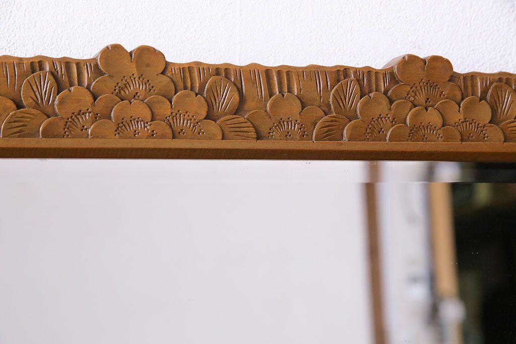 中古 伝統工芸軽井沢彫り 華やかな印象のドレッシングチェスト(ドレッサー、鏡、ミラー)です。
