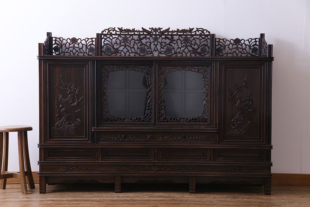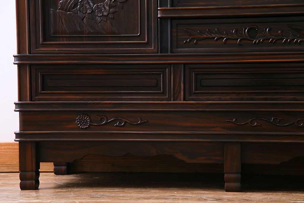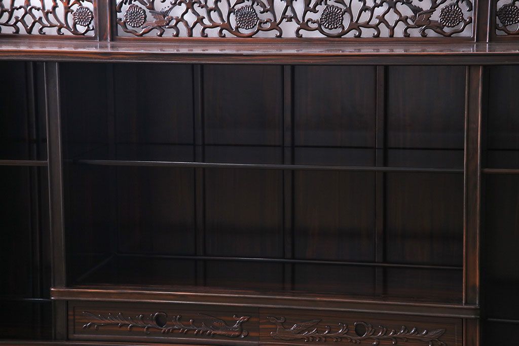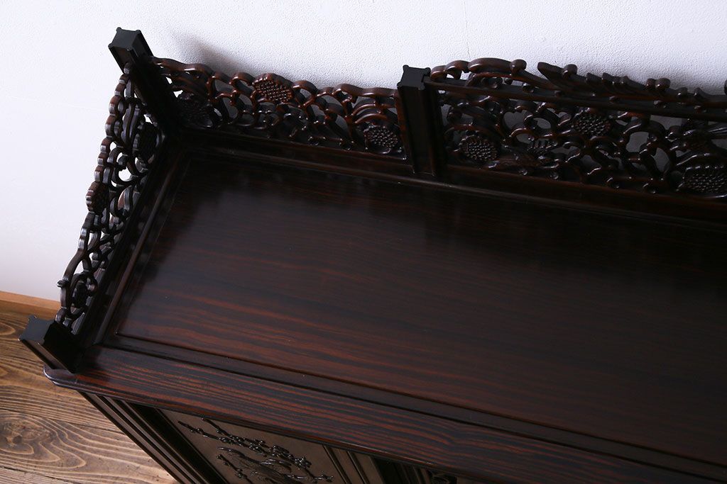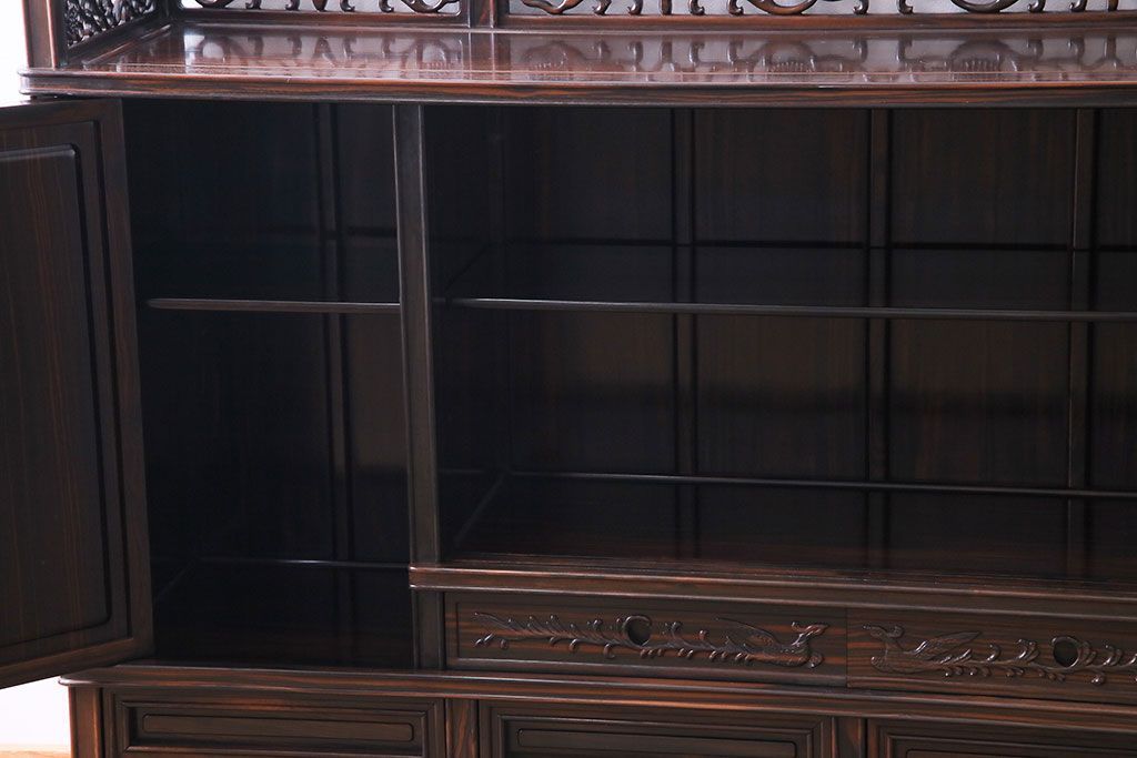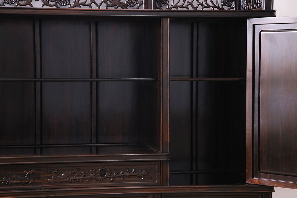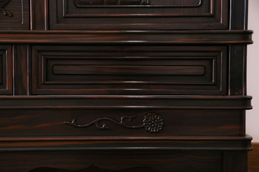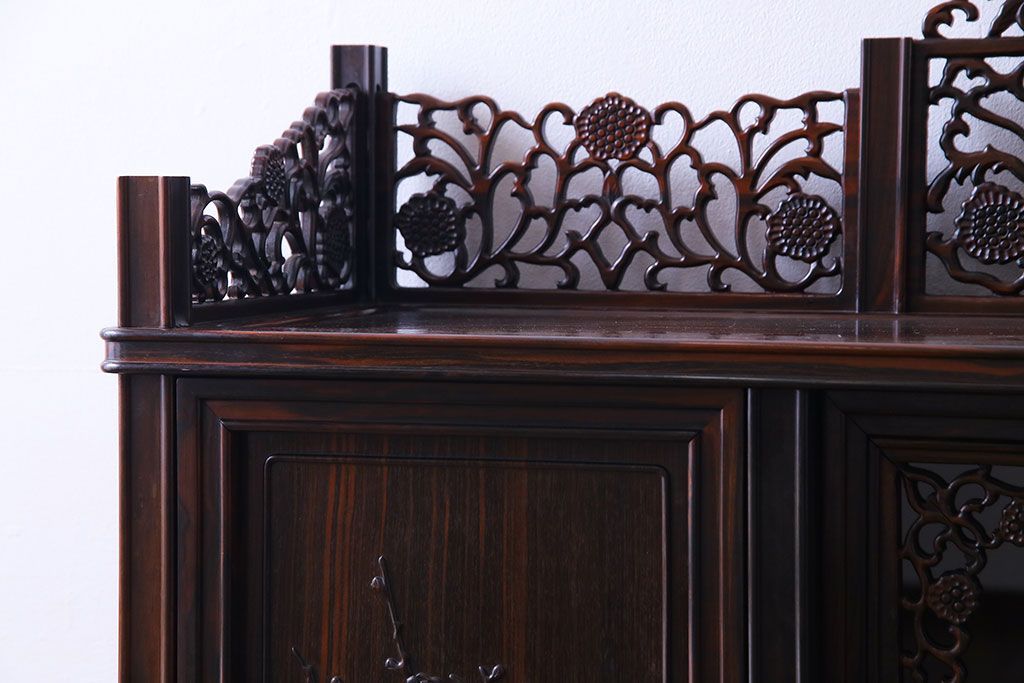 中古 民芸家具 黒檀材(唐木)製 高級品!彫刻が素晴らしいサイドボード(キャビネット、飾り棚)(定価約220万円)(1)