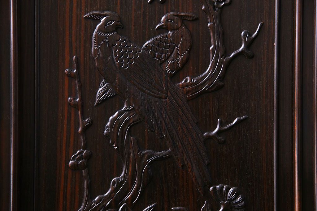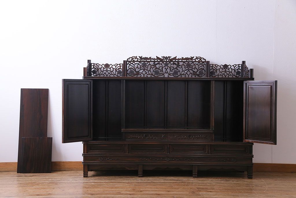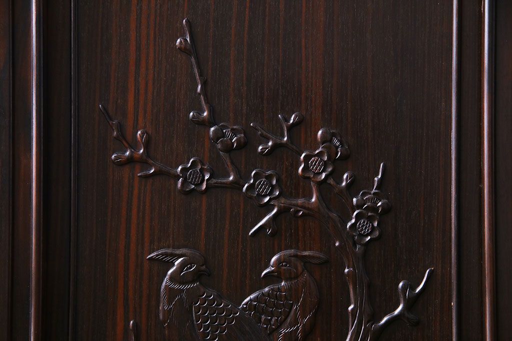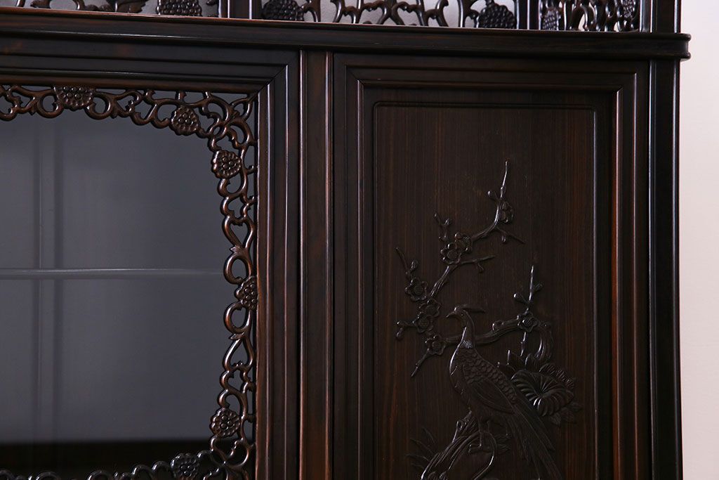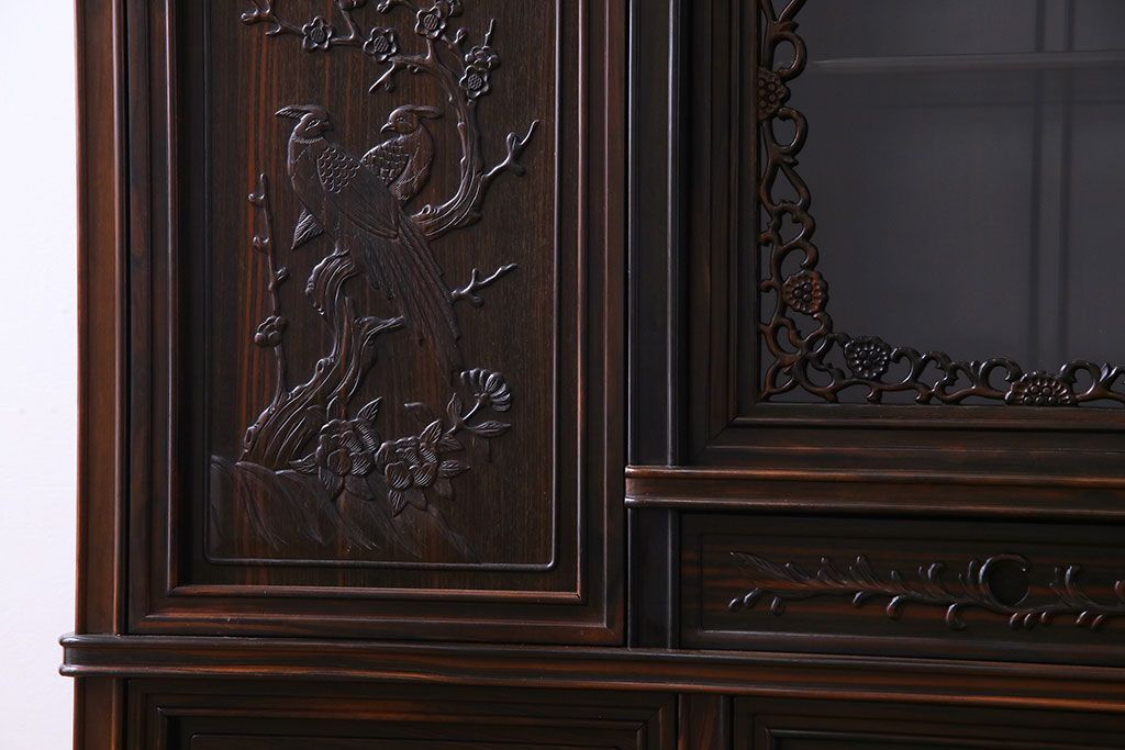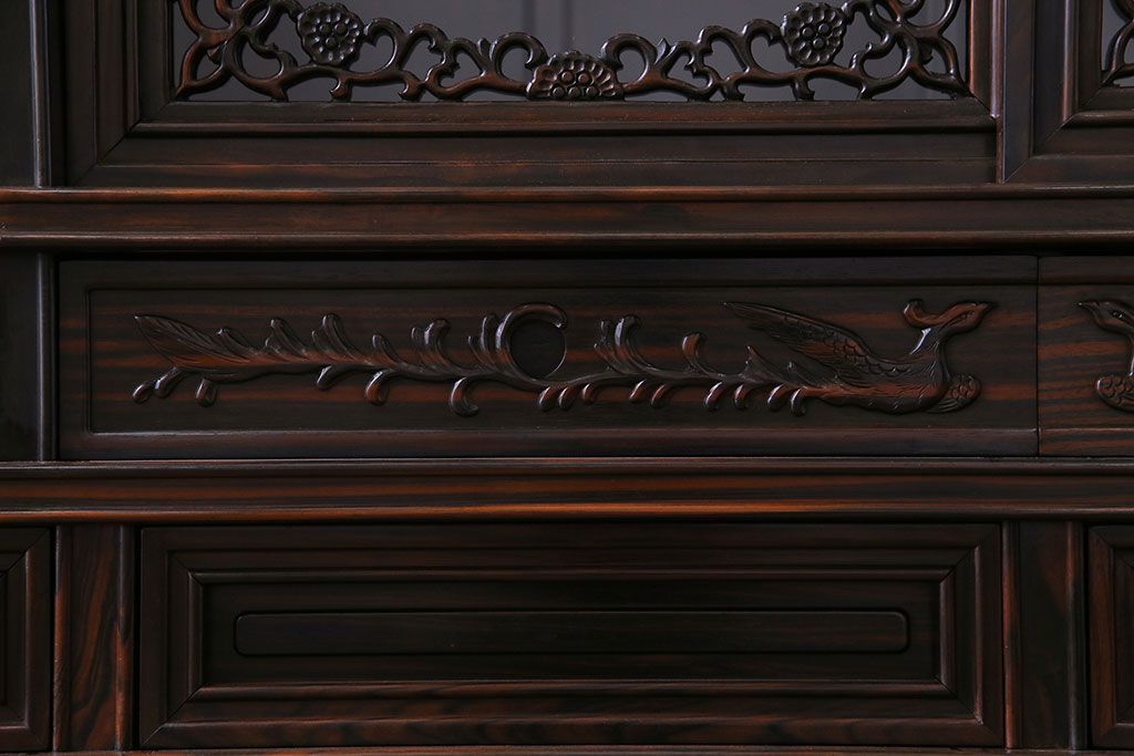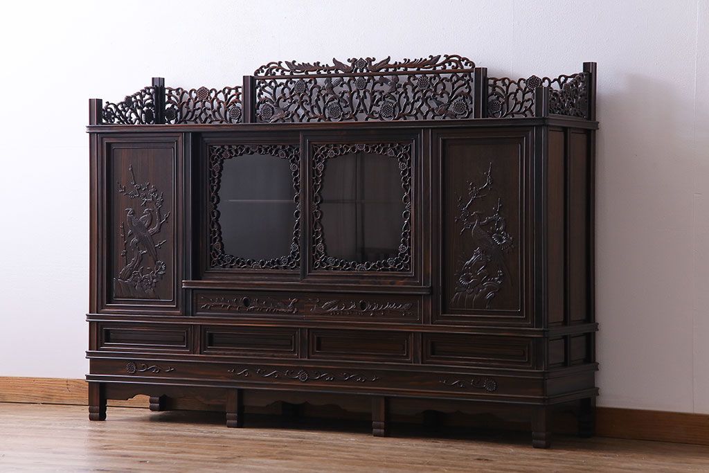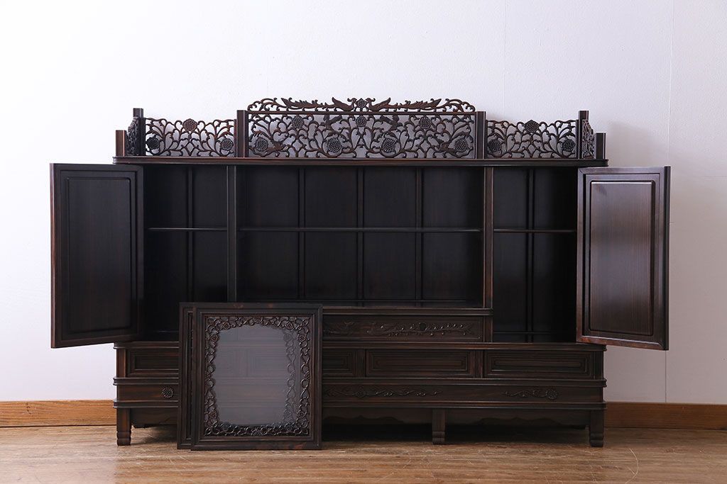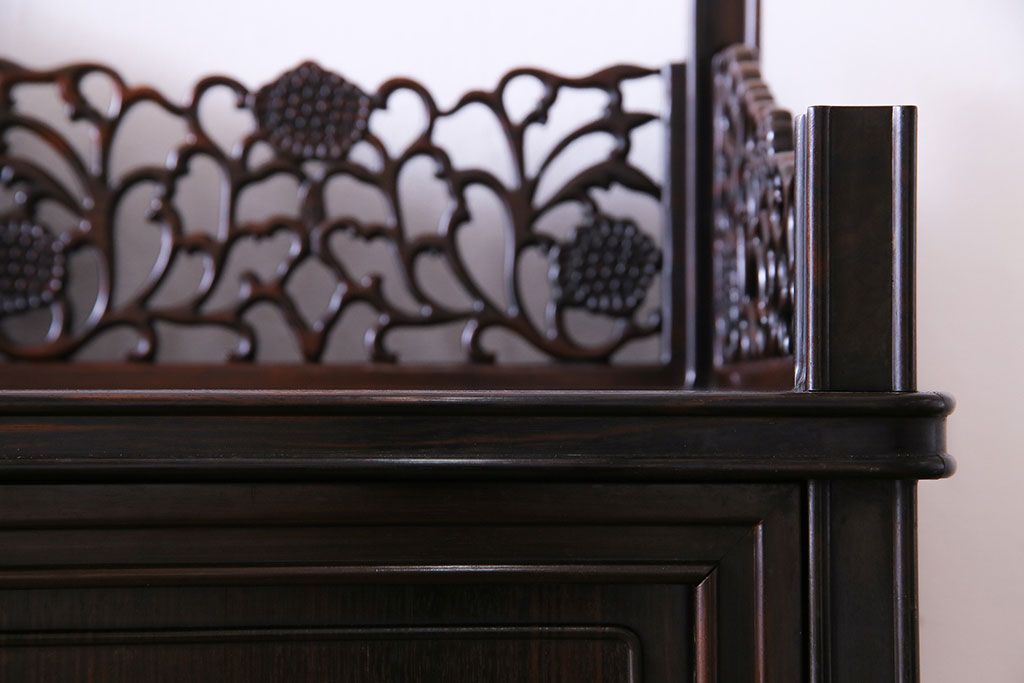 中古 民芸家具 黒檀材(唐木)製 高級品!彫刻が素晴らしいサイドボード(キャビネット、飾り棚)(定価約220万円)(1)