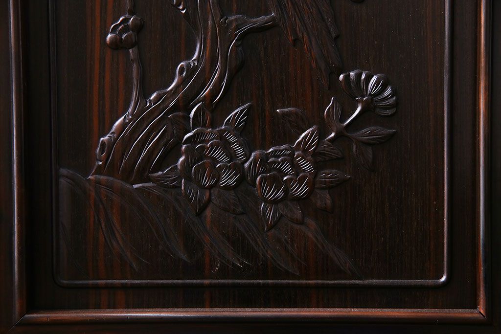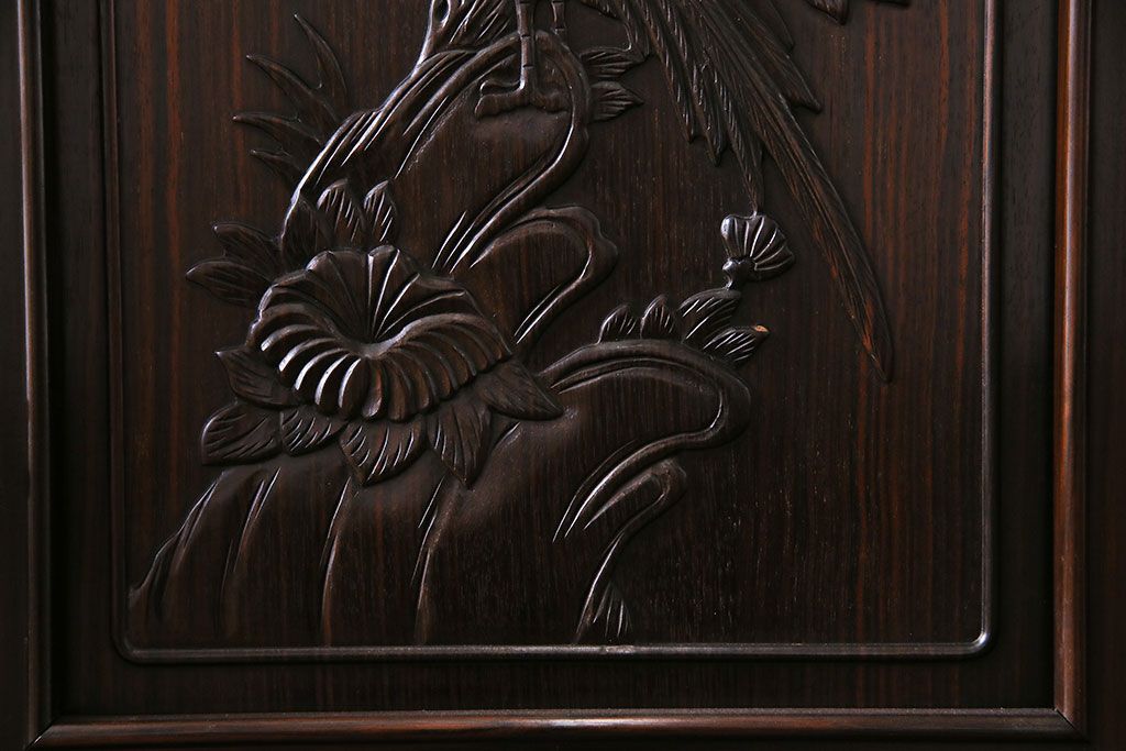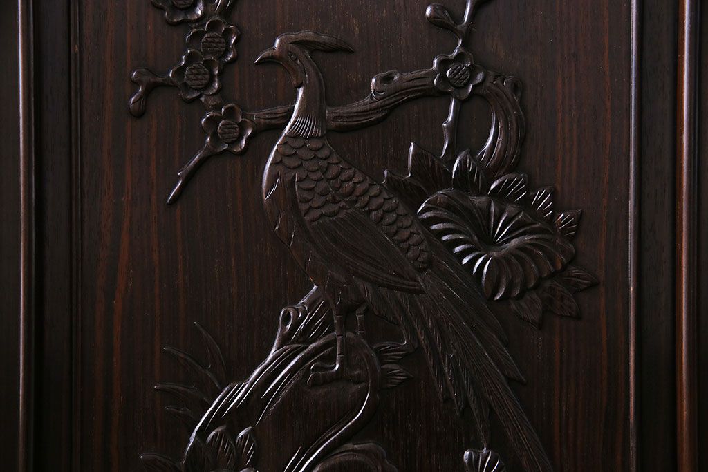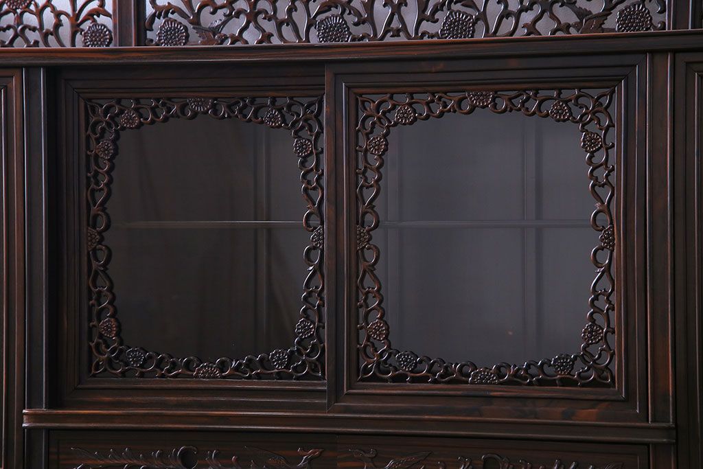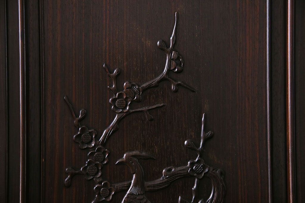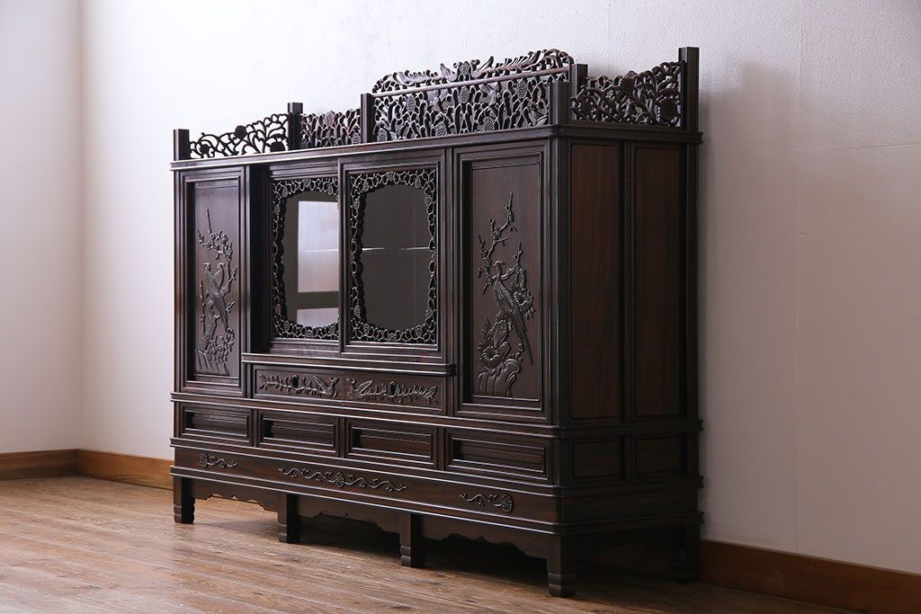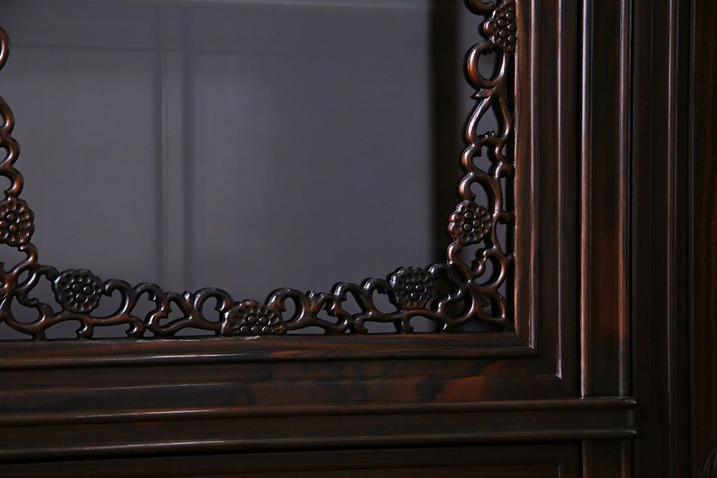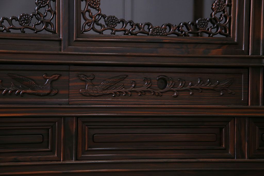 中古 民芸家具 黒檀材(唐木)製 高級品!彫刻が素晴らしいサイドボード(キャビネット、飾り棚)(定価約220万円)(1)