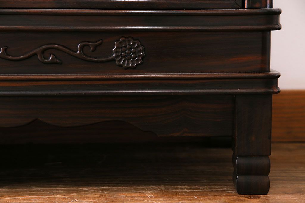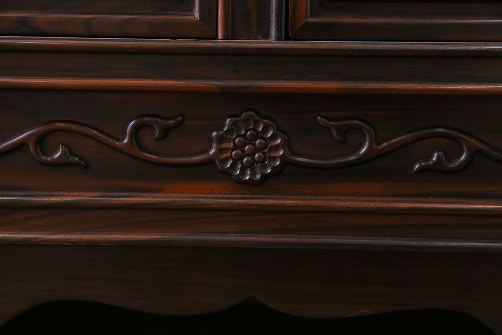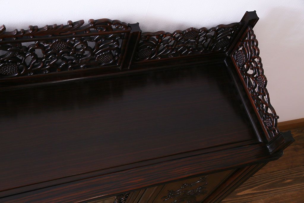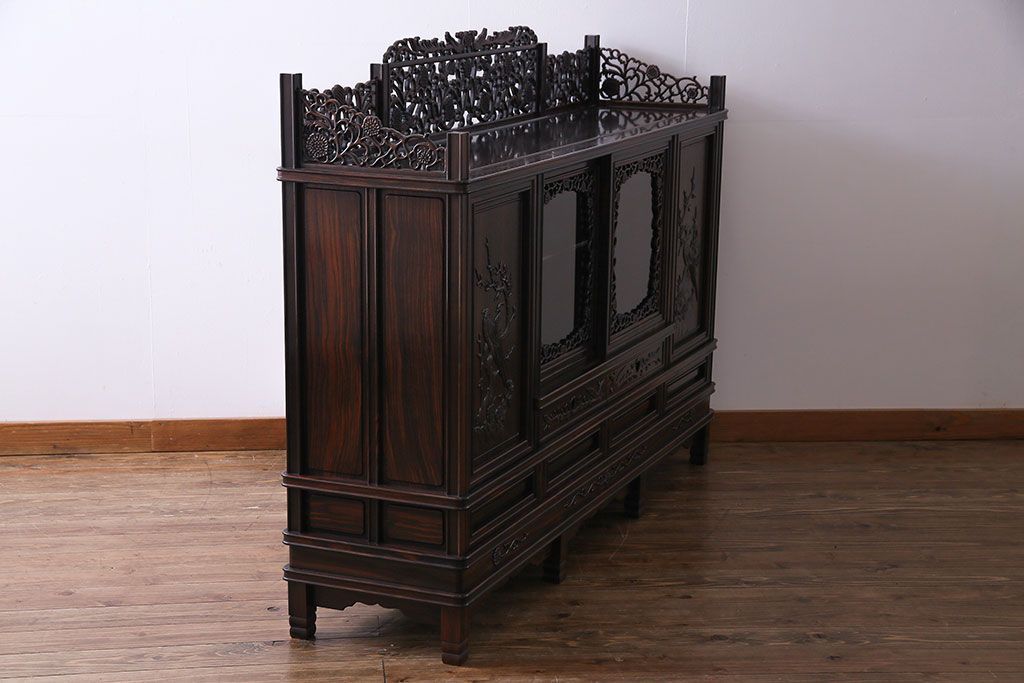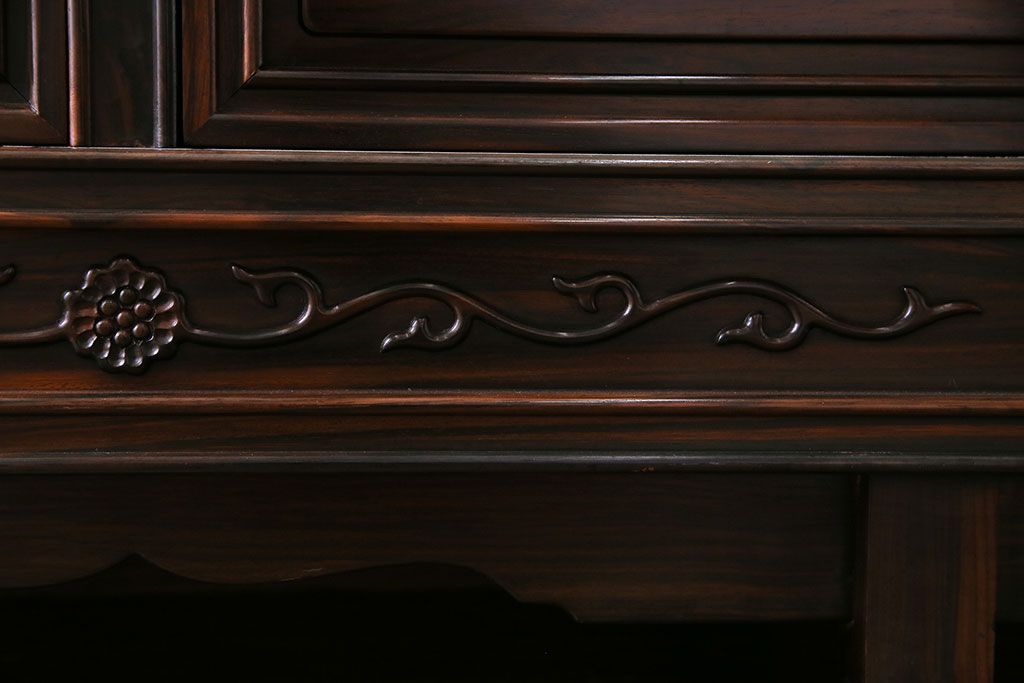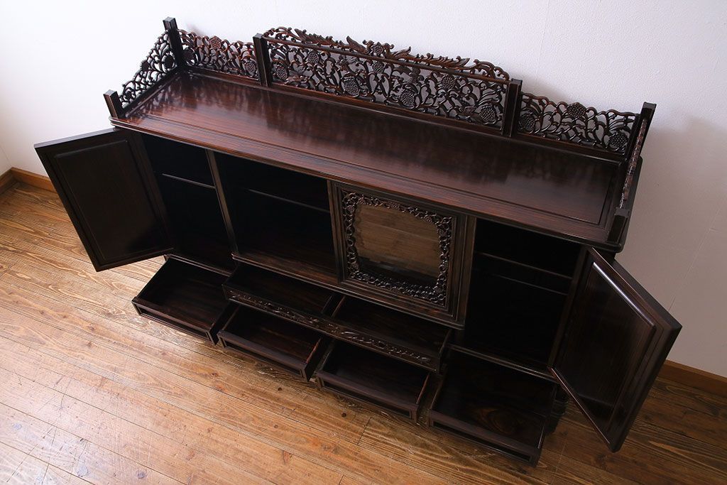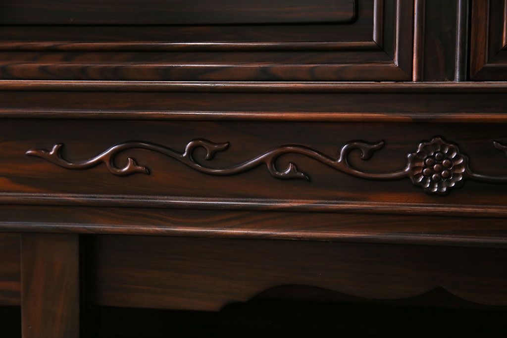 ラフジュ工房> キャビネット・戸棚> サイドキャビネット > 中古 民芸家具 黒檀材(唐木)製 高級品!彫刻が素晴らしいサイドボード(キャビネット、飾り棚)(定価約220万円)(1)