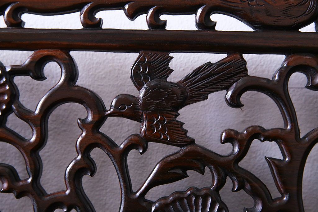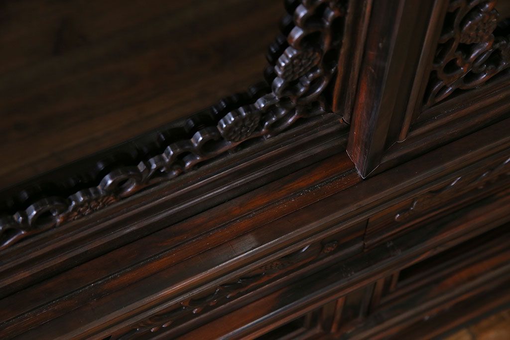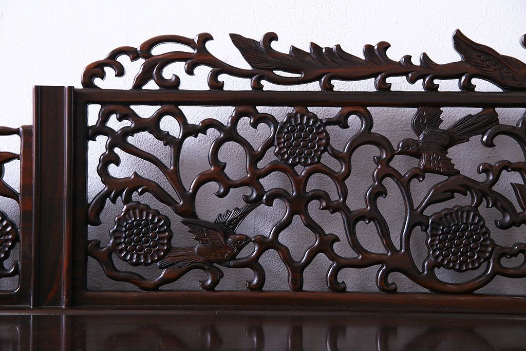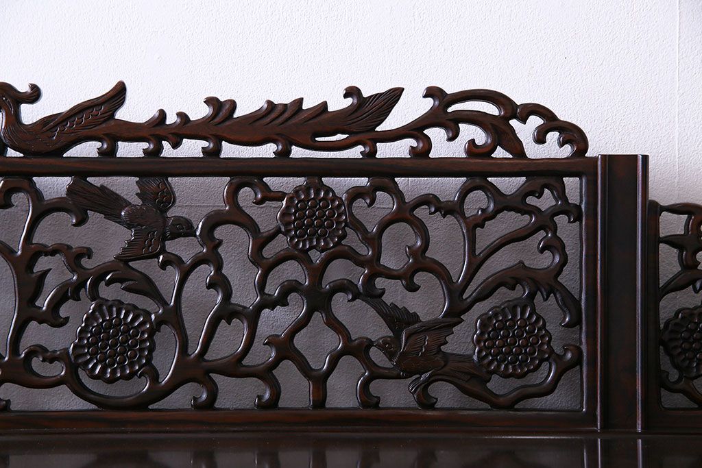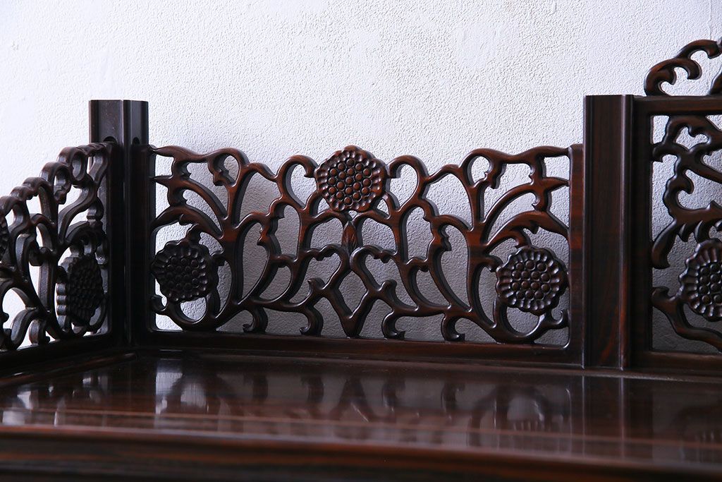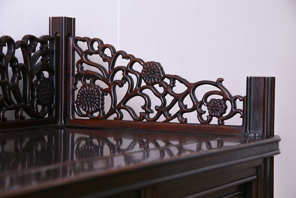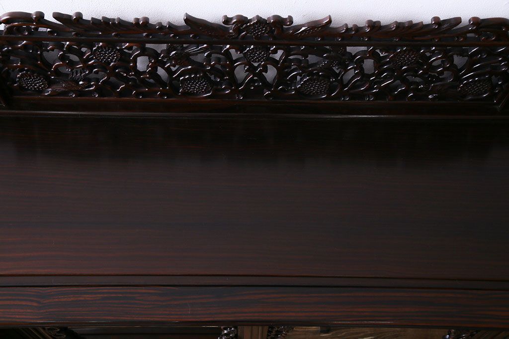 ラフジュ工房> キャビネット・戸棚> サイドキャビネット > 中古 民芸家具 黒檀材(唐木)製 高級品!彫刻が素晴らしいサイドボード(キャビネット、飾り棚)(定価約220万円)(1)
