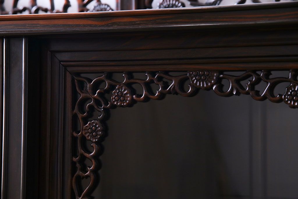 ラフジュ工房> 民芸家具 > 中古 民芸家具 黒檀材(唐木)製 高級品!彫刻が素晴らしいサイドボード(キャビネット、飾り棚)(定価約220万円)(1)