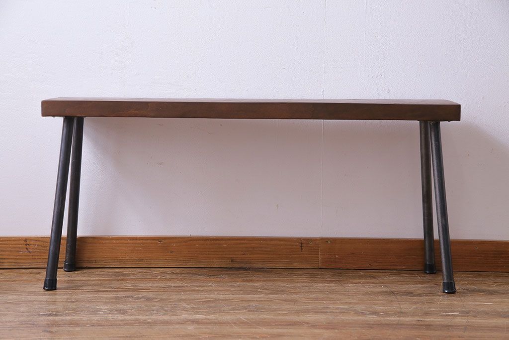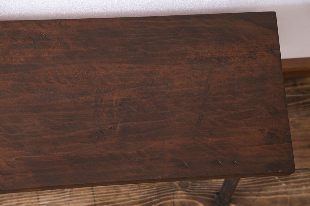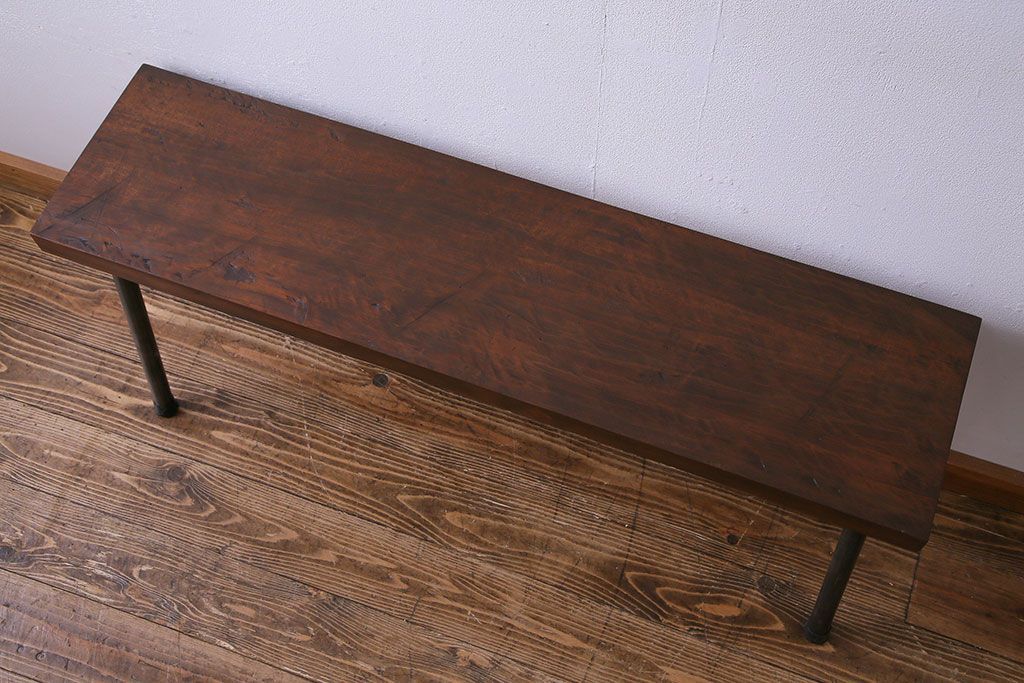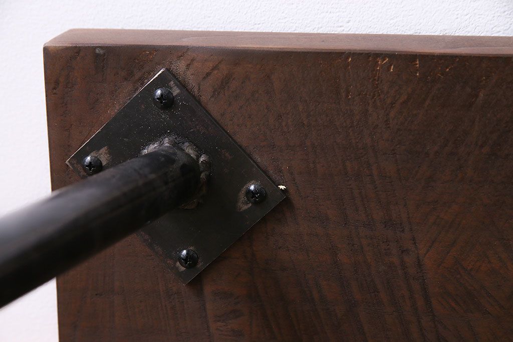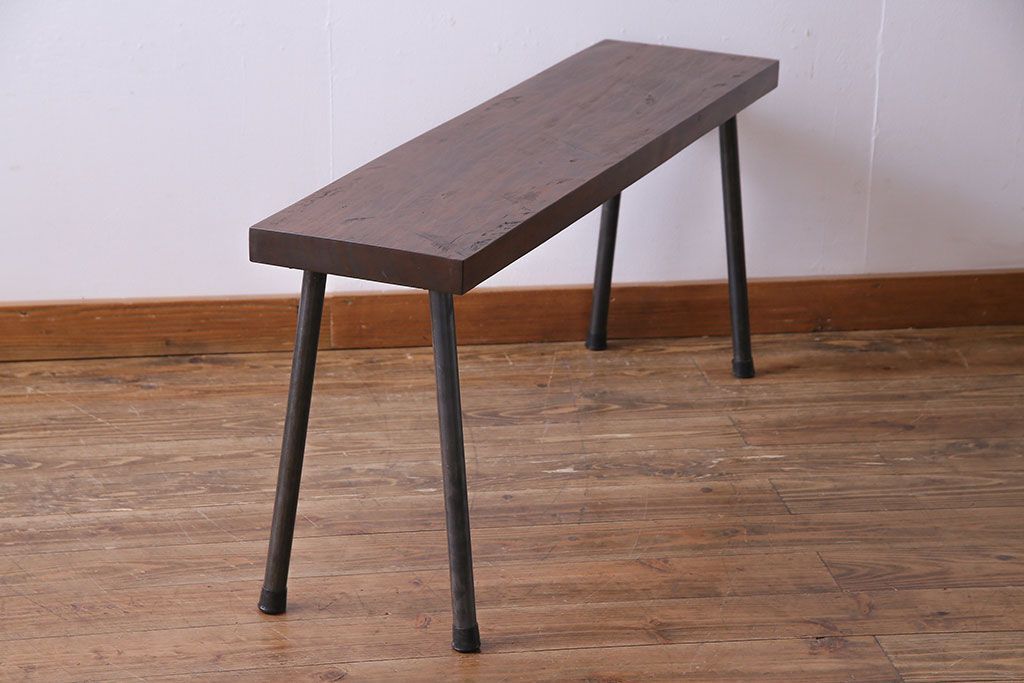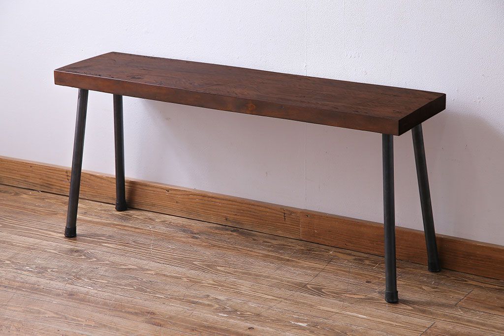昭和初期 トチノキ(栃の木) 古材の風合いを活かしたリメイク鉄脚ベンチ(椅子、板座チェア)