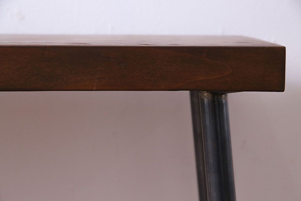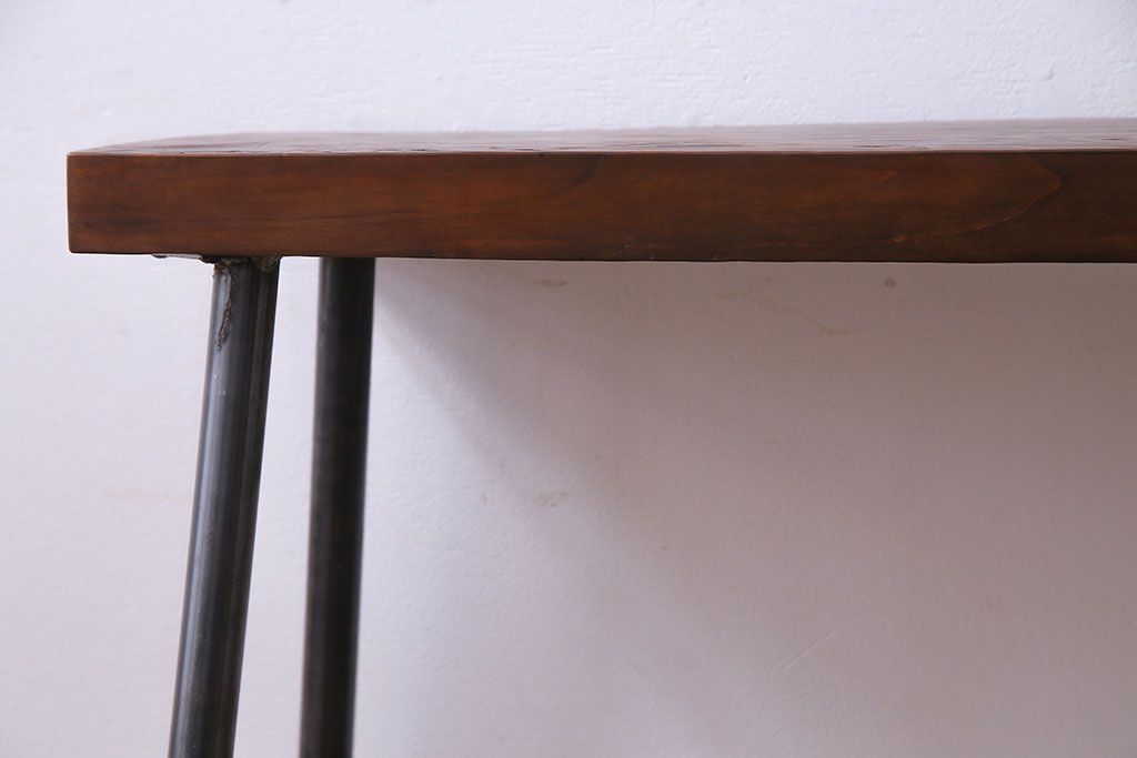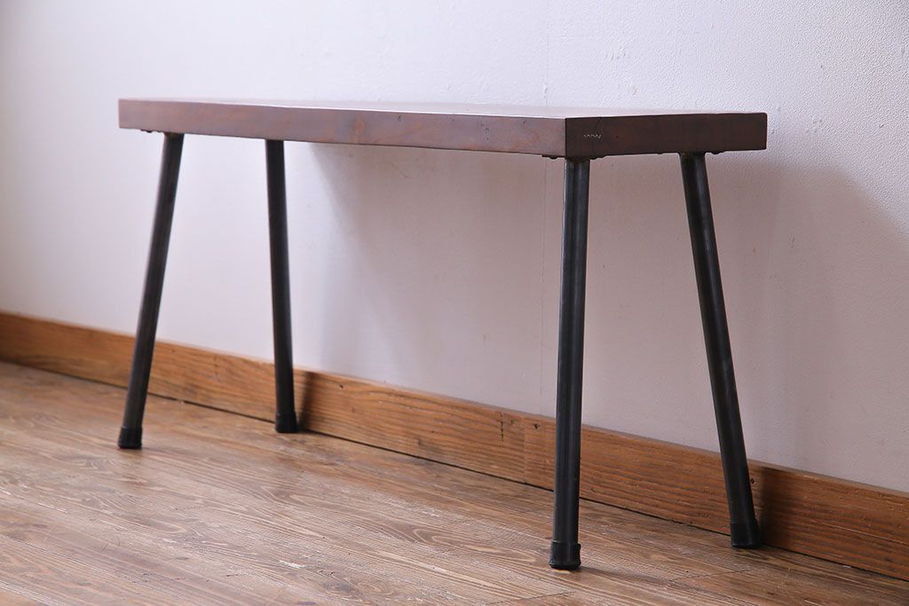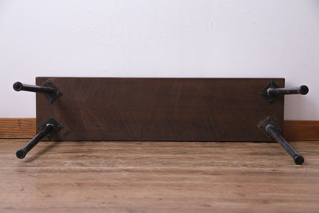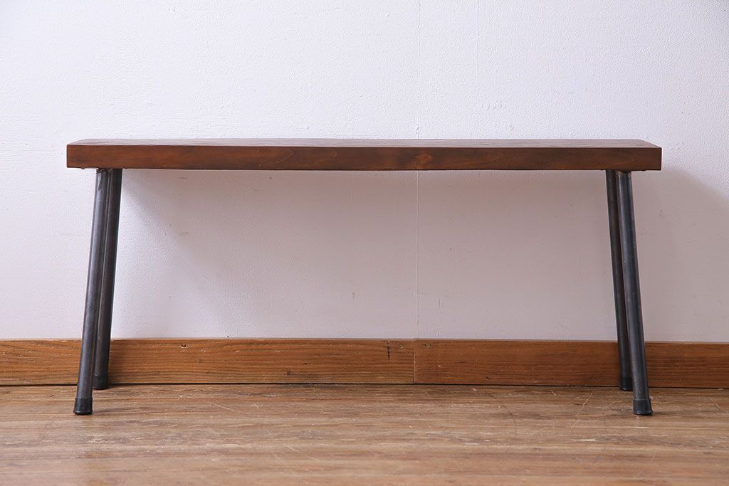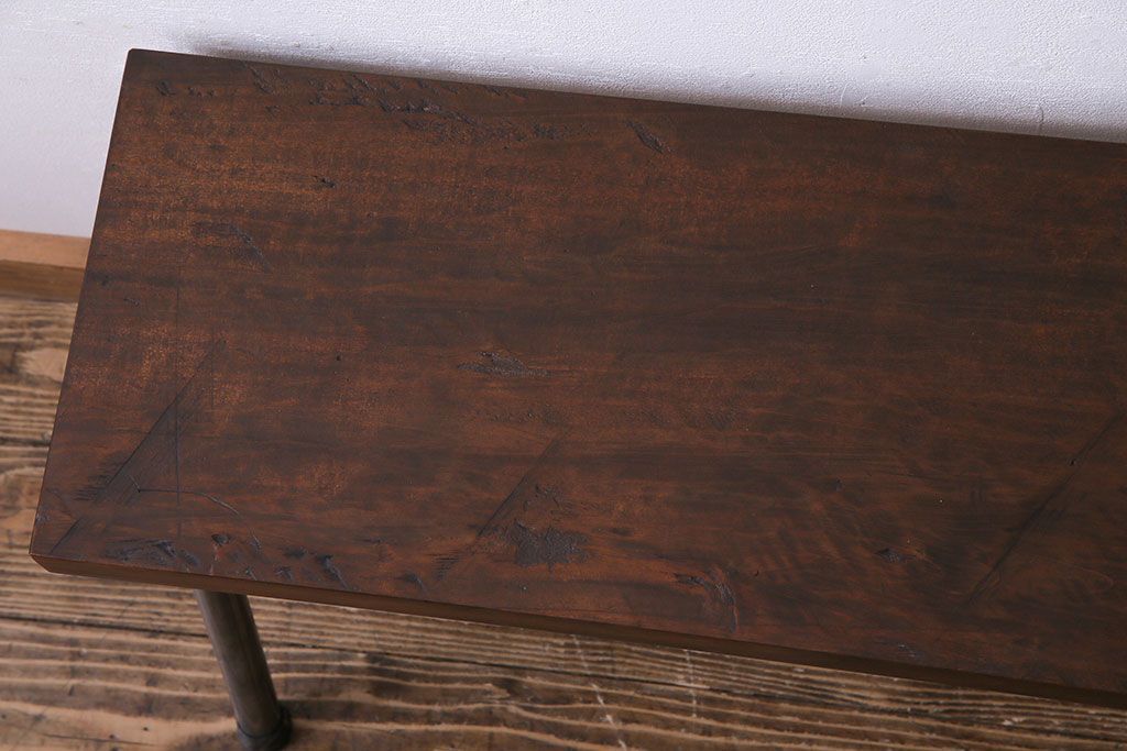 昭和初期 トチノキ(栃の木) 古材の風合いを活かしたリメイク鉄脚ベンチ(椅子、板座チェア)