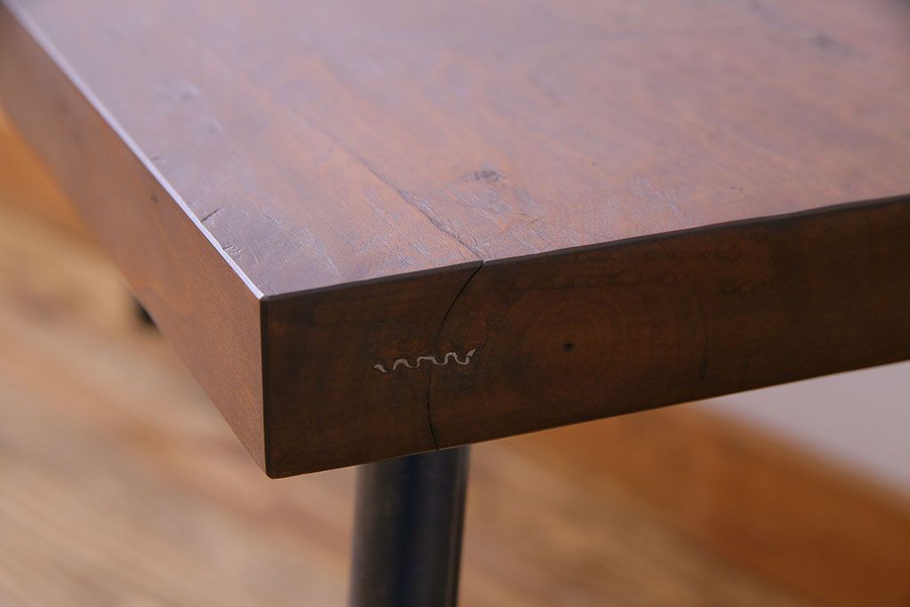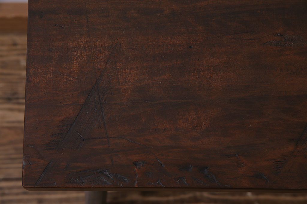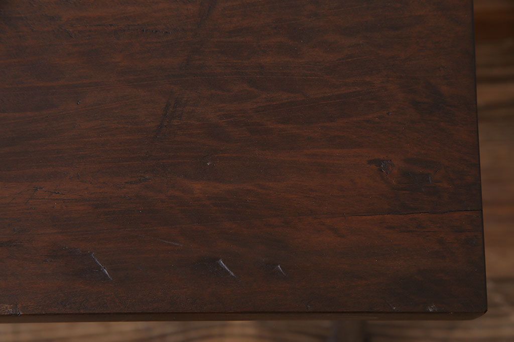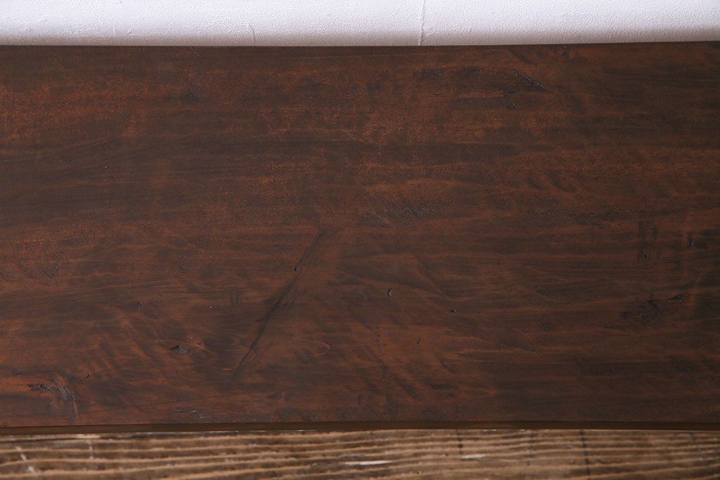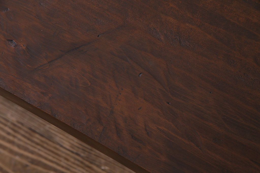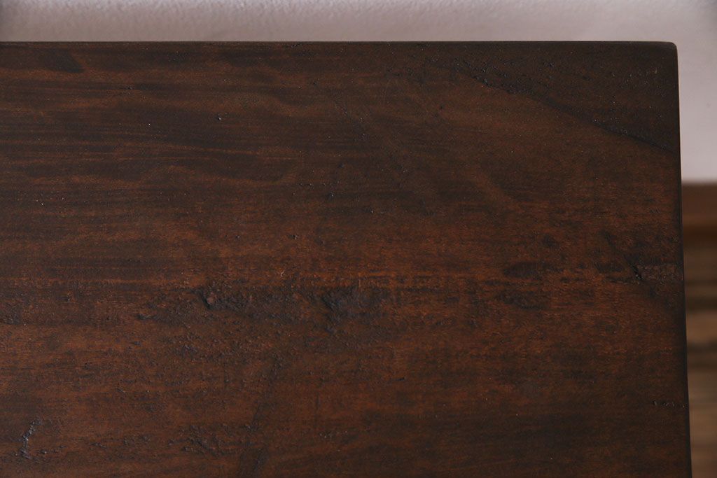 昭和初期 トチノキ(栃の木) 古材の風合いを活かしたリメイク鉄脚ベンチ(椅子、板座チェア)