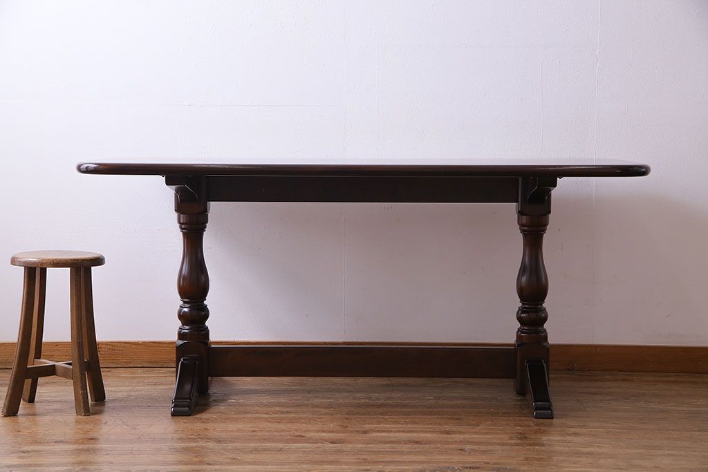 中古美品 松本民芸家具 シックな4人掛けT型食卓(ダイニングテーブル)(定価約37万円)