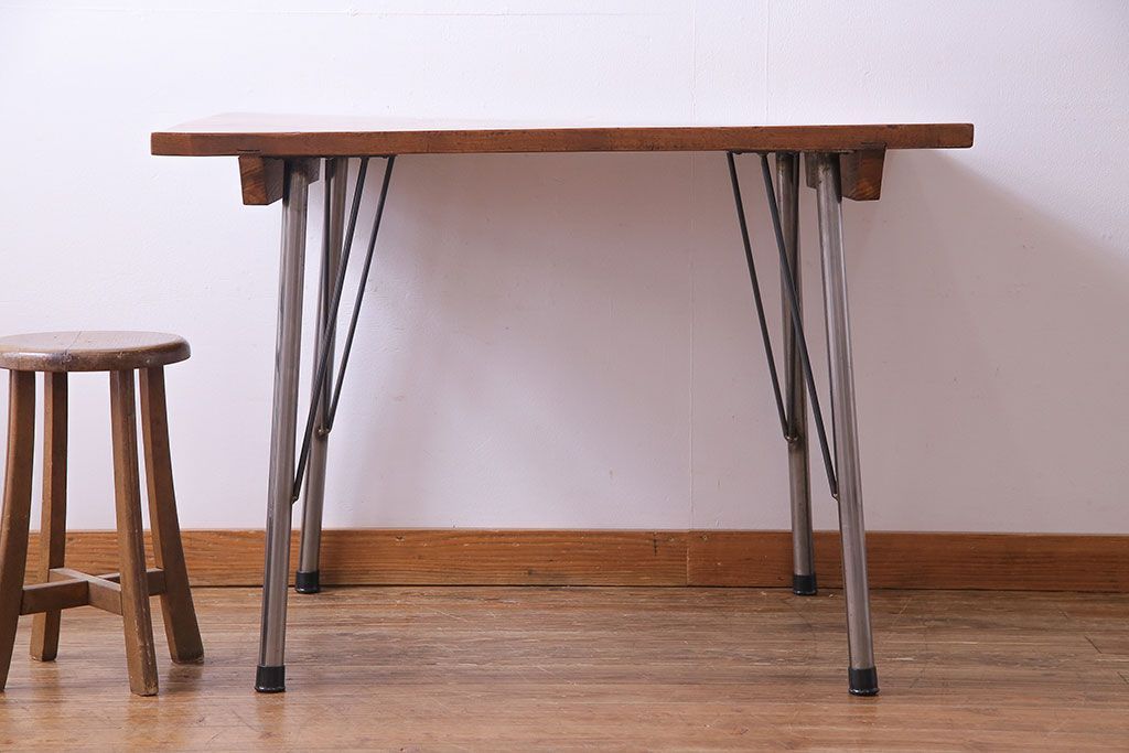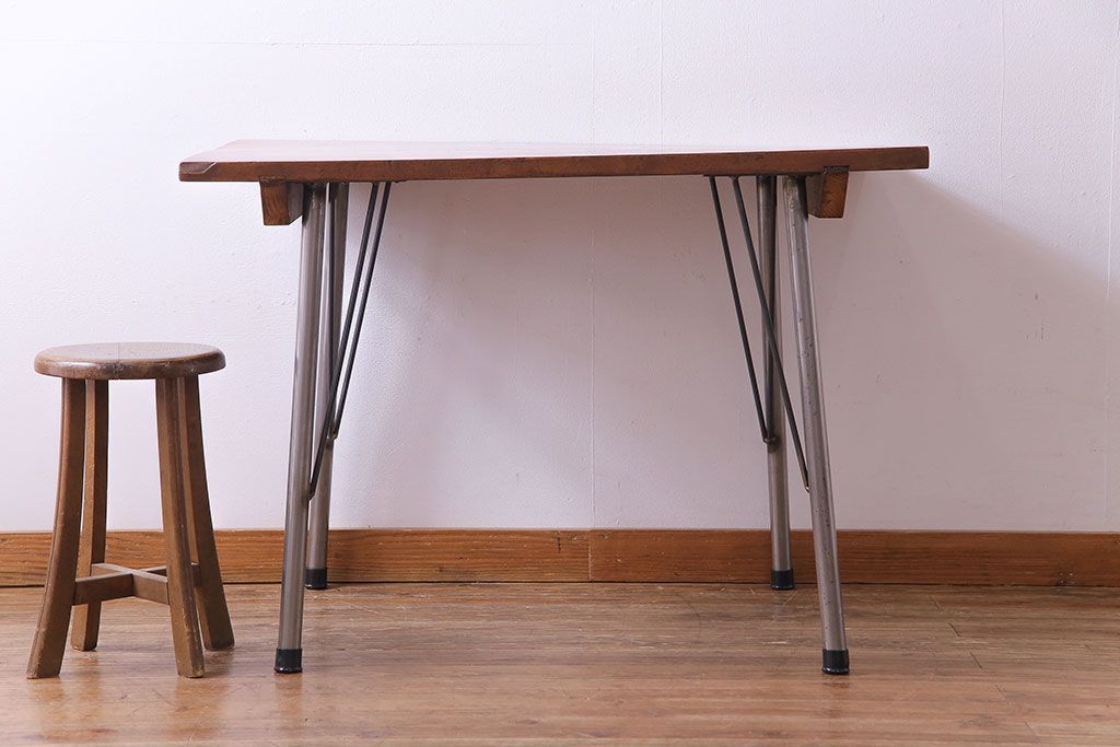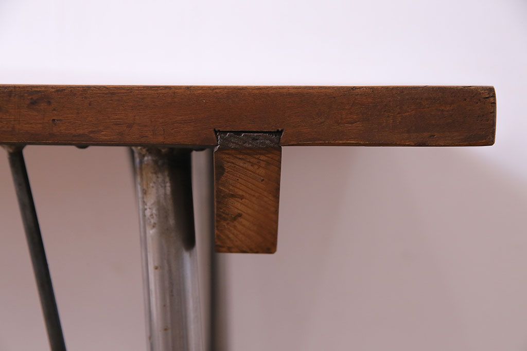ラフジュ工房> 雑貨 > ジャンク品 古い麺打ち台をリメイクした鉄脚付き作業台(鉄脚テーブル)