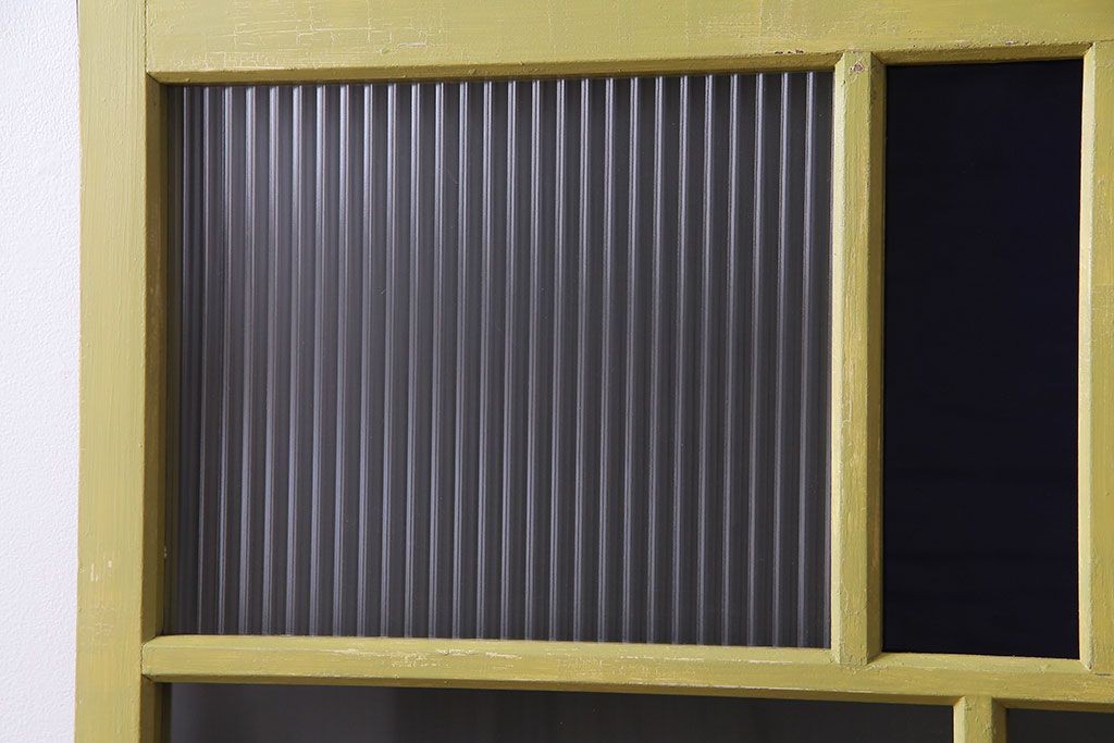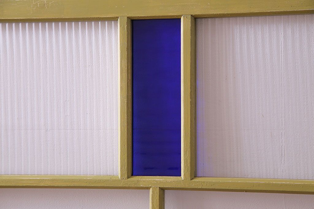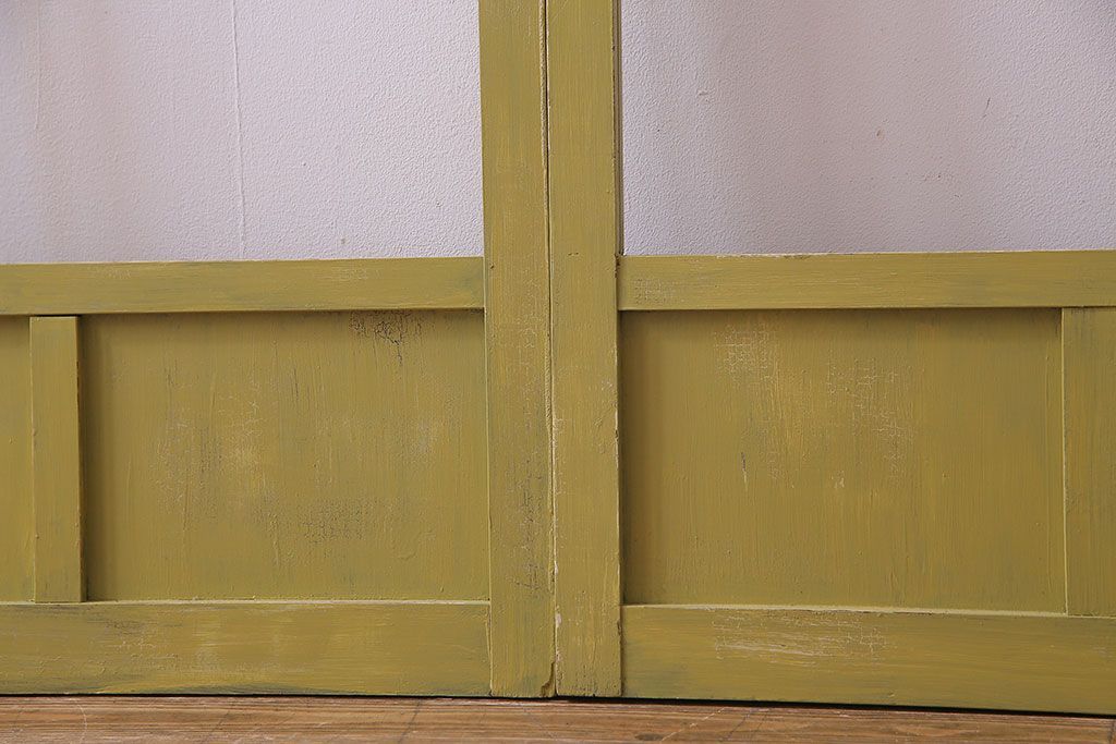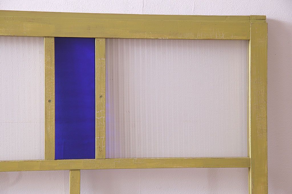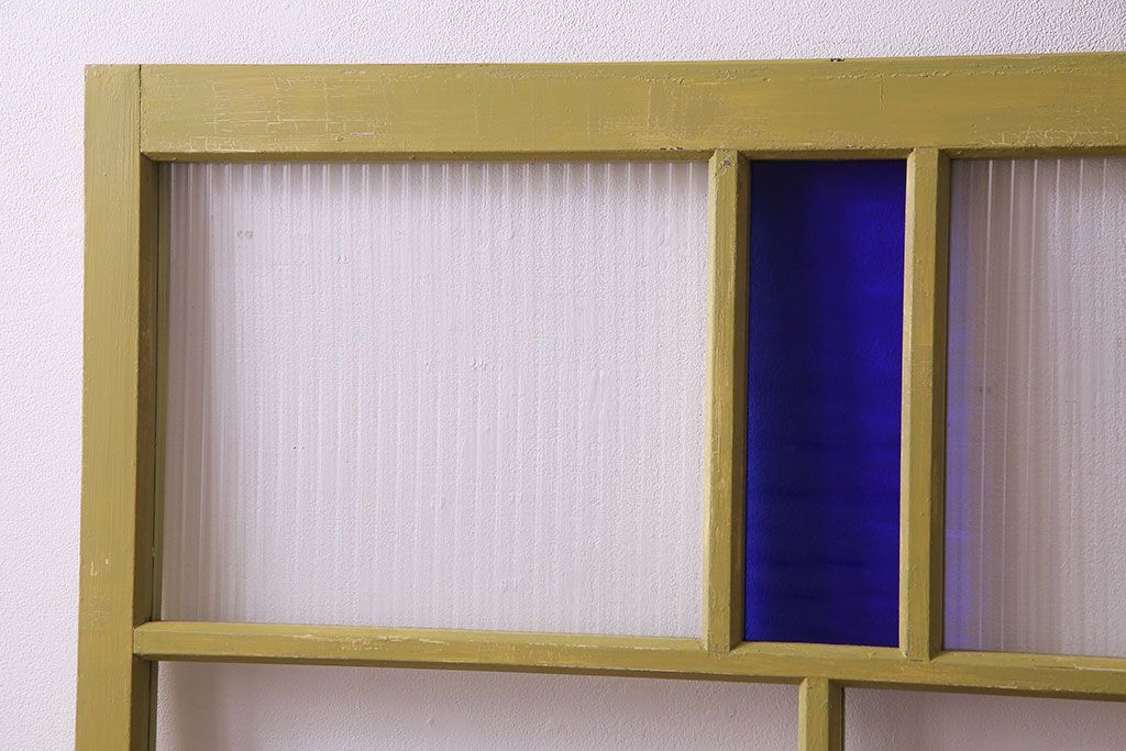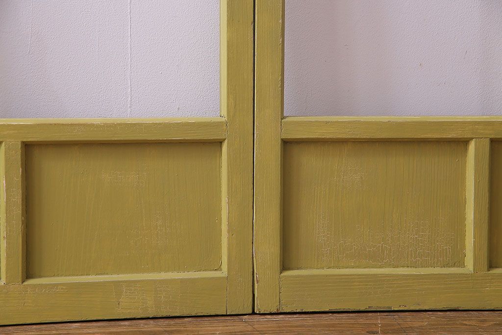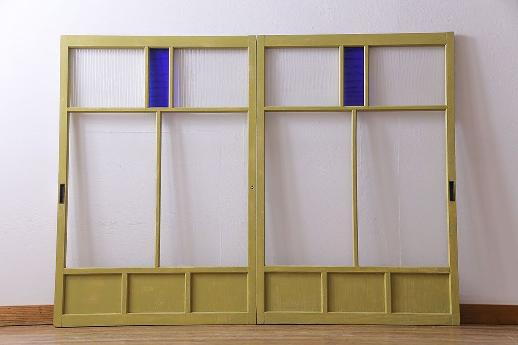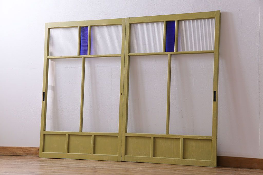 昭和レトロ 色ガラスがアクセントのペイントガラス戸(窓)2枚セット(1)