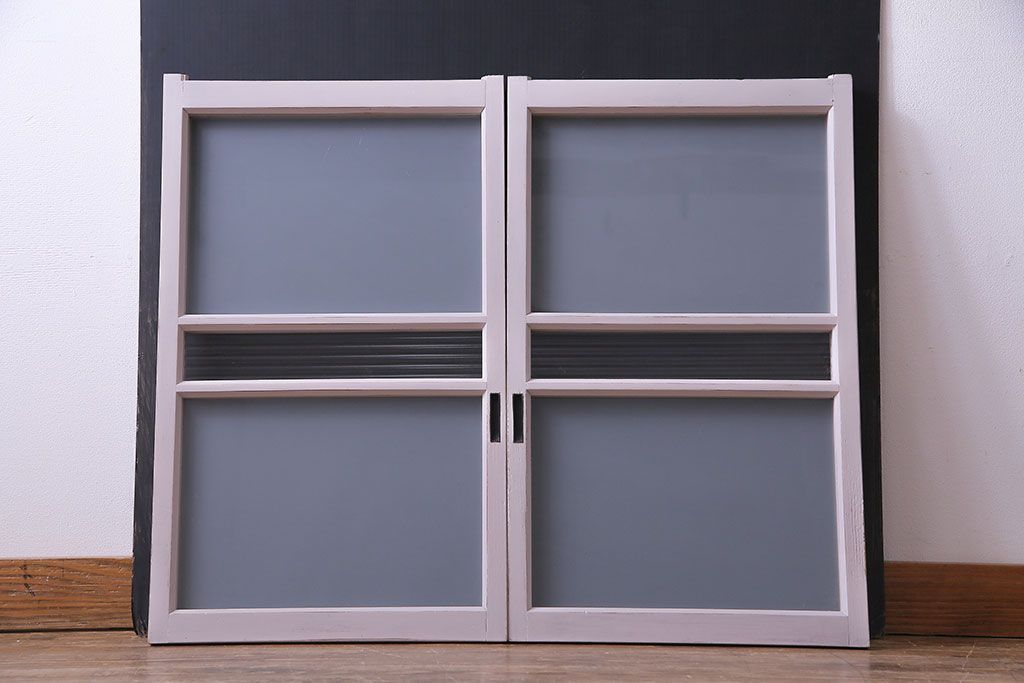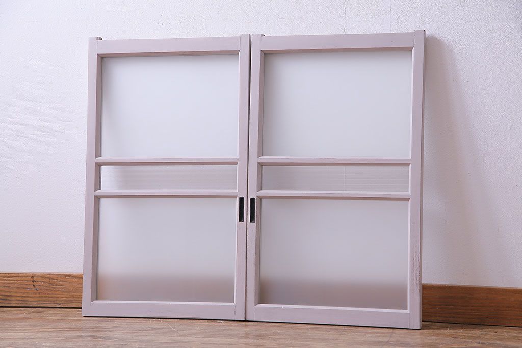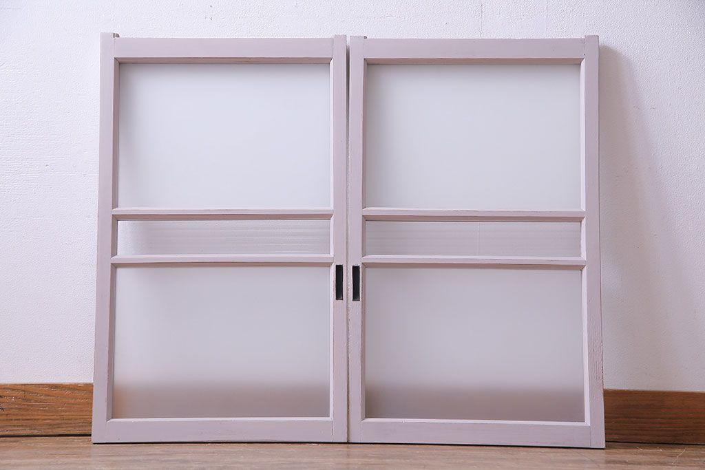 淡いカラーが可愛らしいペイントガラス戸(窓)2枚セット