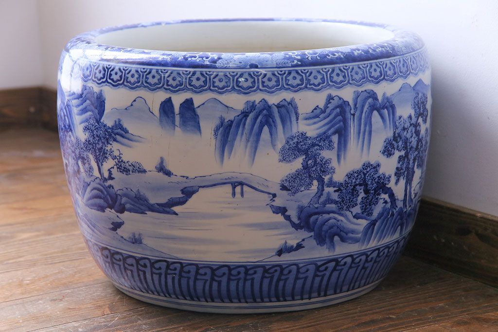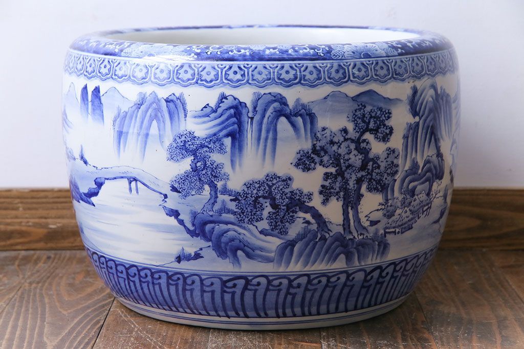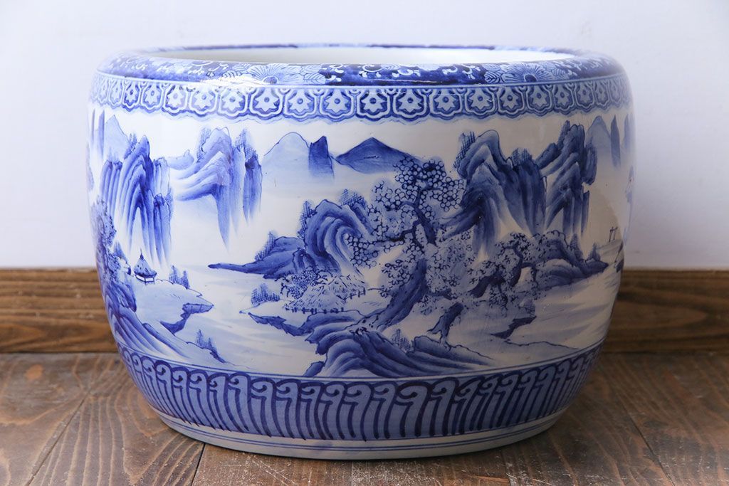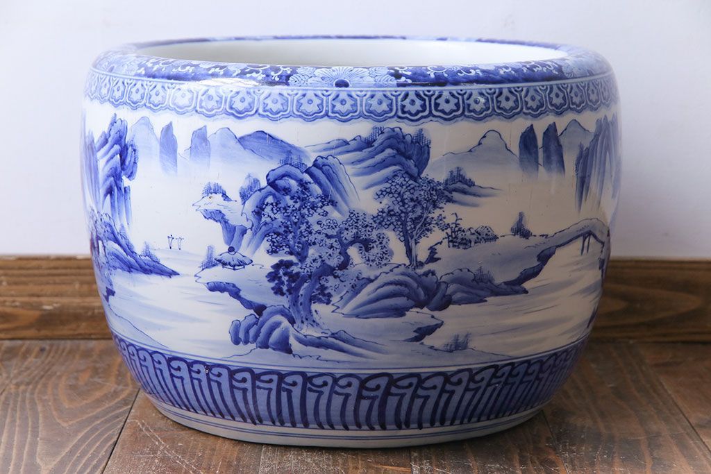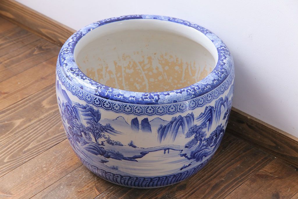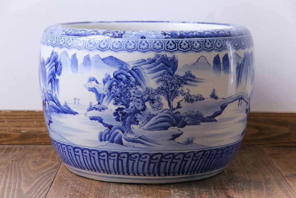 アンティーク雑貨 昭和初期 山水図 どっしりとした佇まいの瀬戸火鉢(鉢カバー)