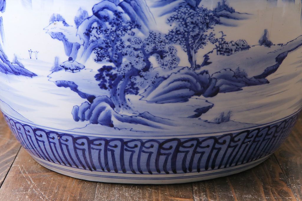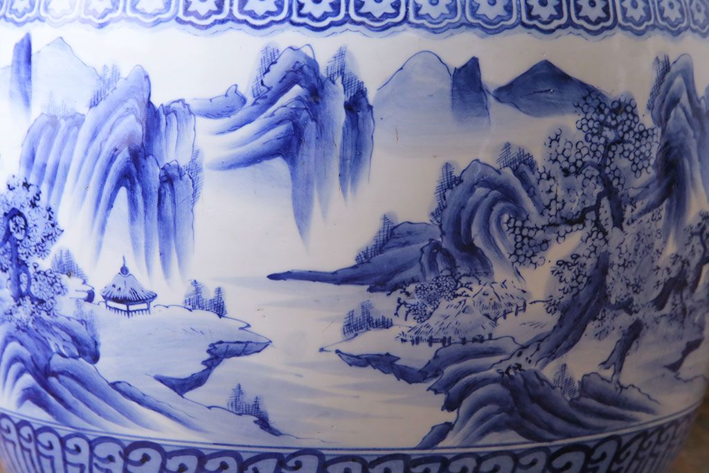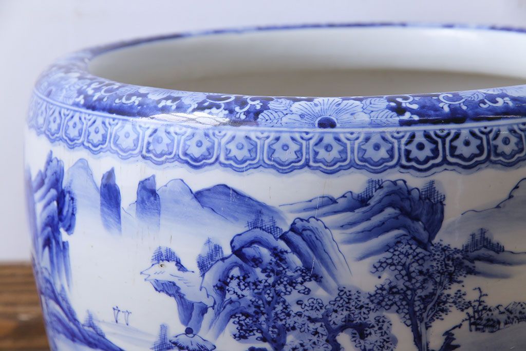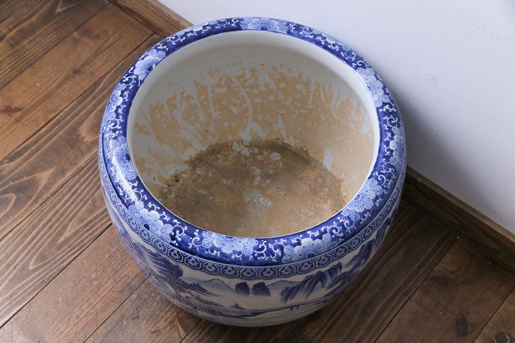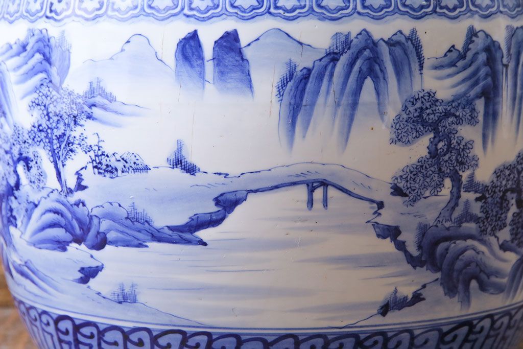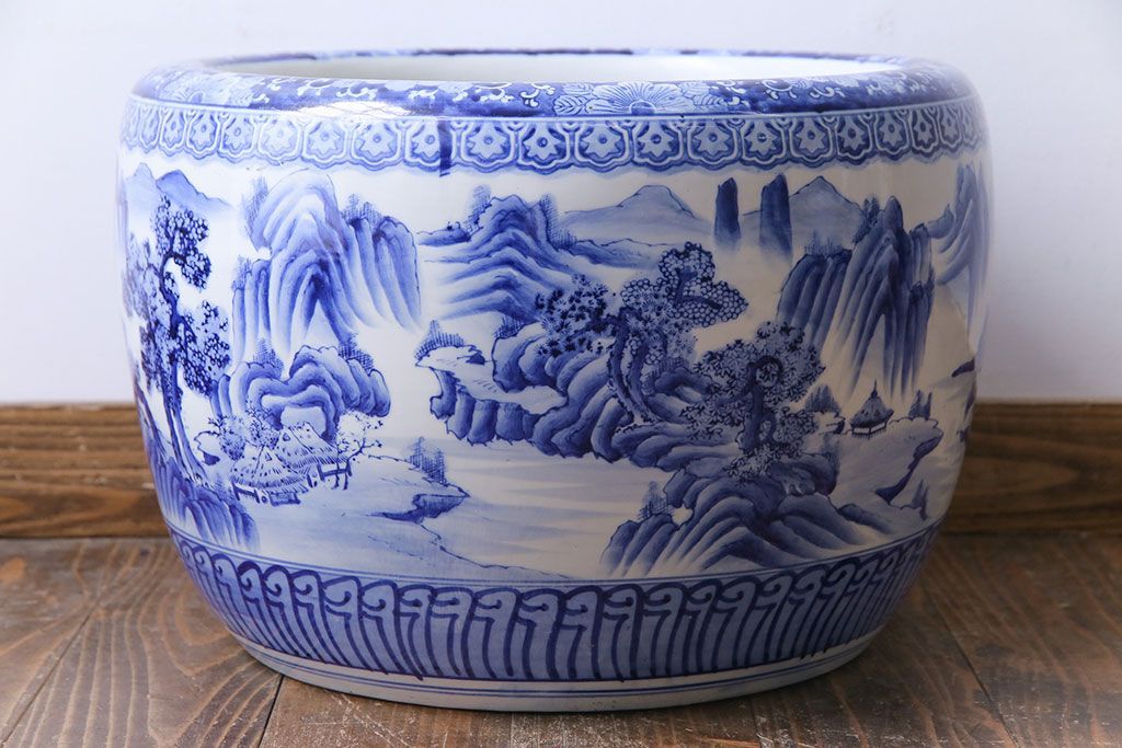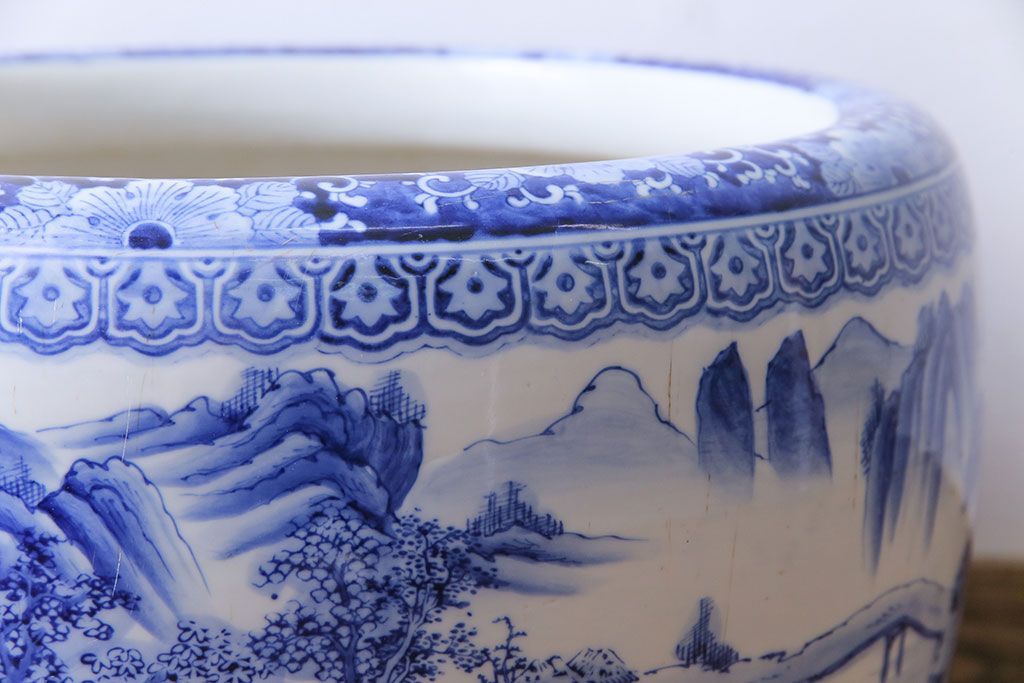 アンティーク雑貨 昭和初期 山水図 どっしりとした佇まいの瀬戸火鉢(鉢カバー)