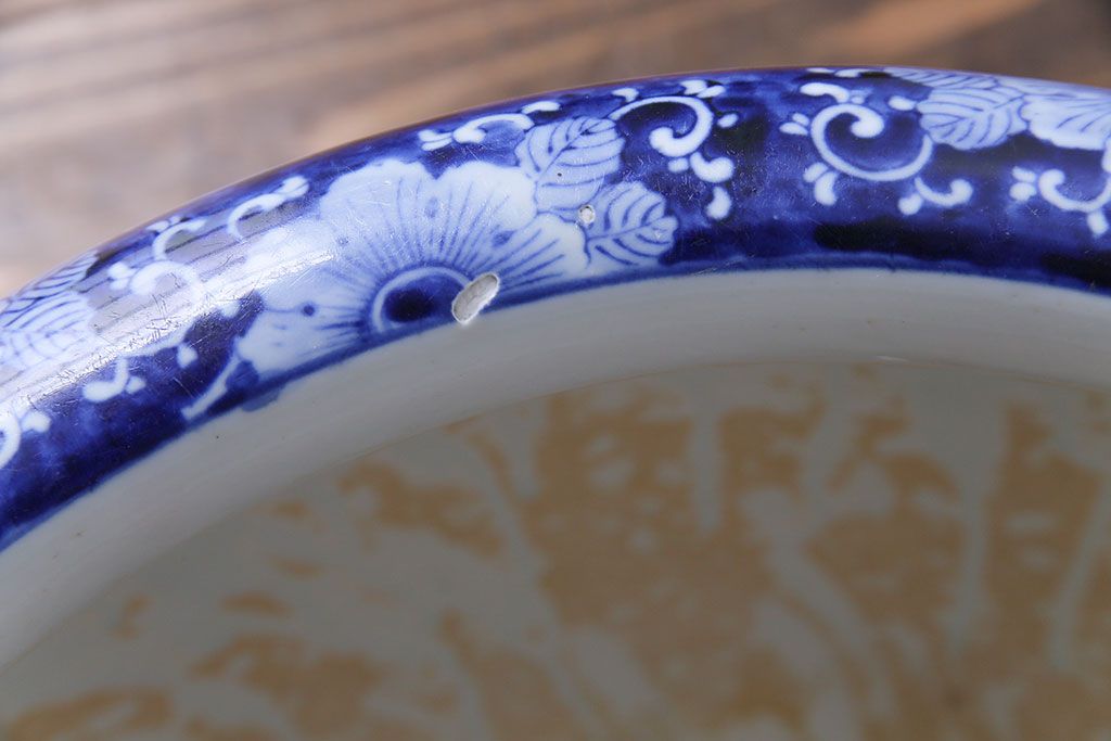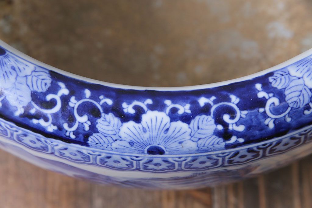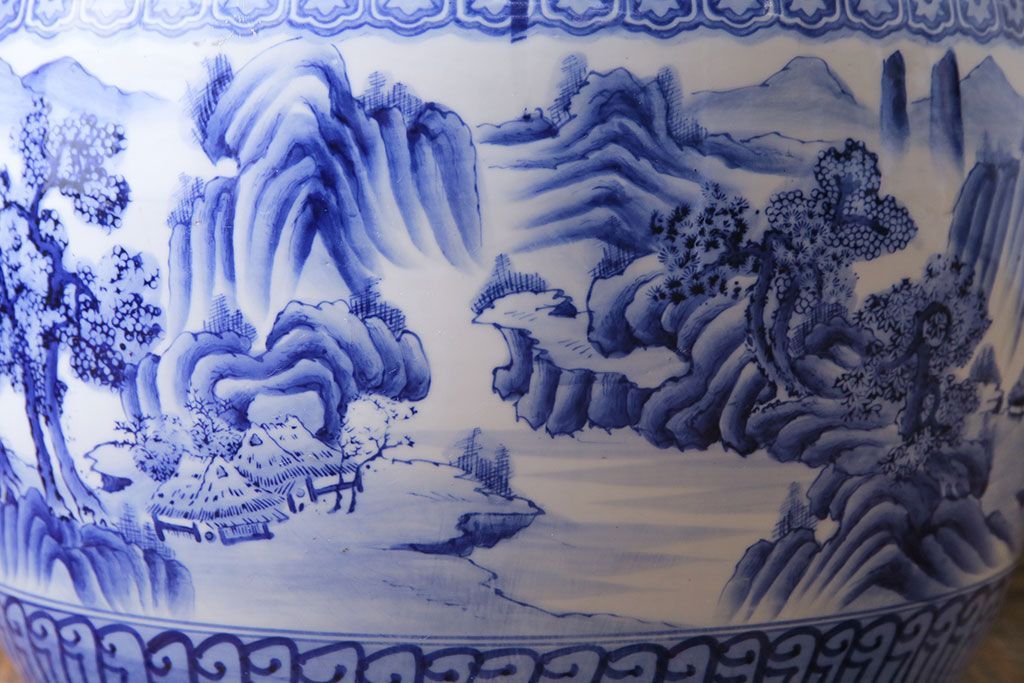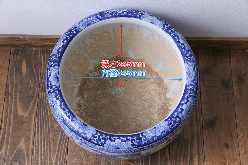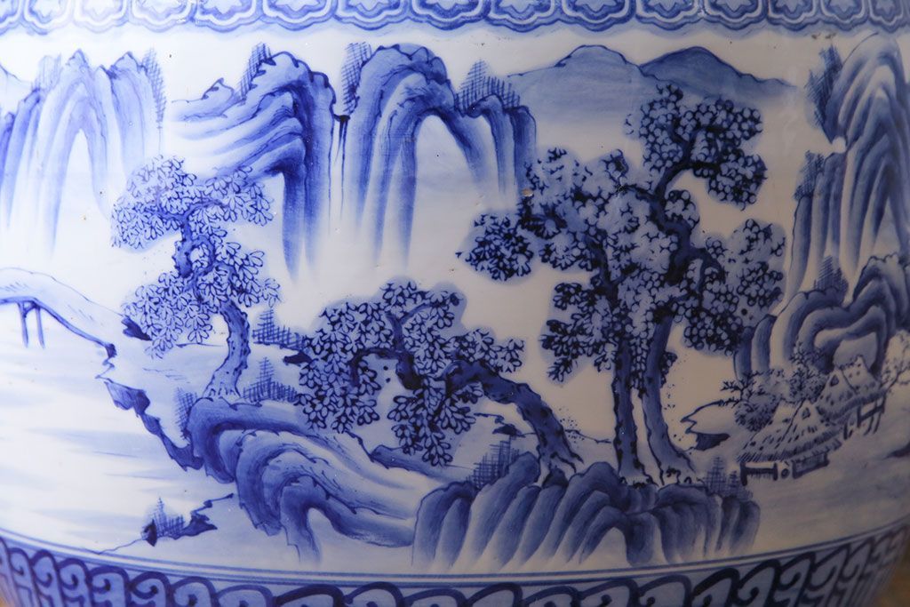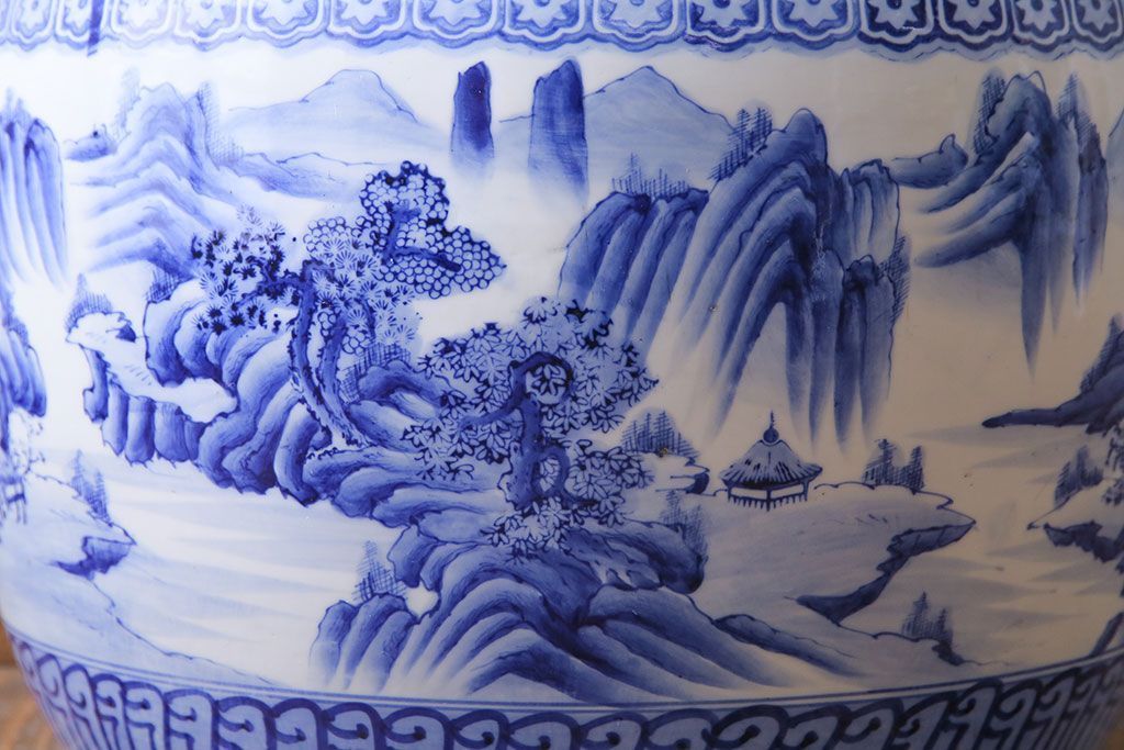 アンティーク雑貨 昭和初期 山水図 どっしりとした佇まいの瀬戸火鉢(鉢カバー)