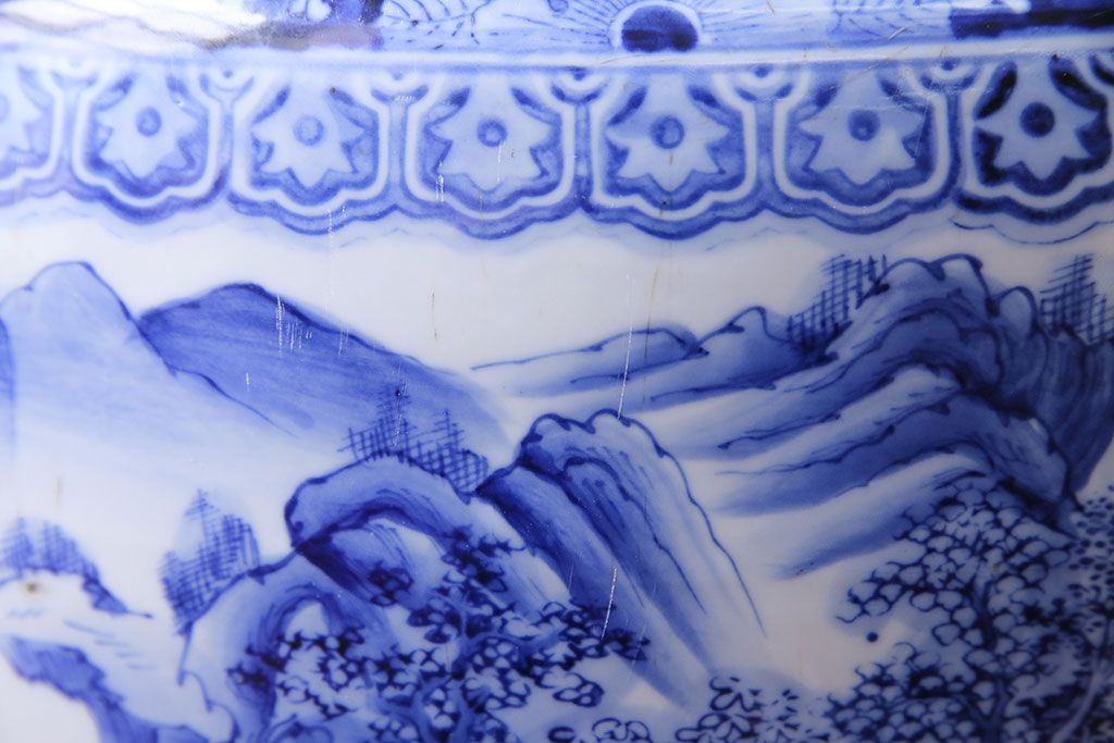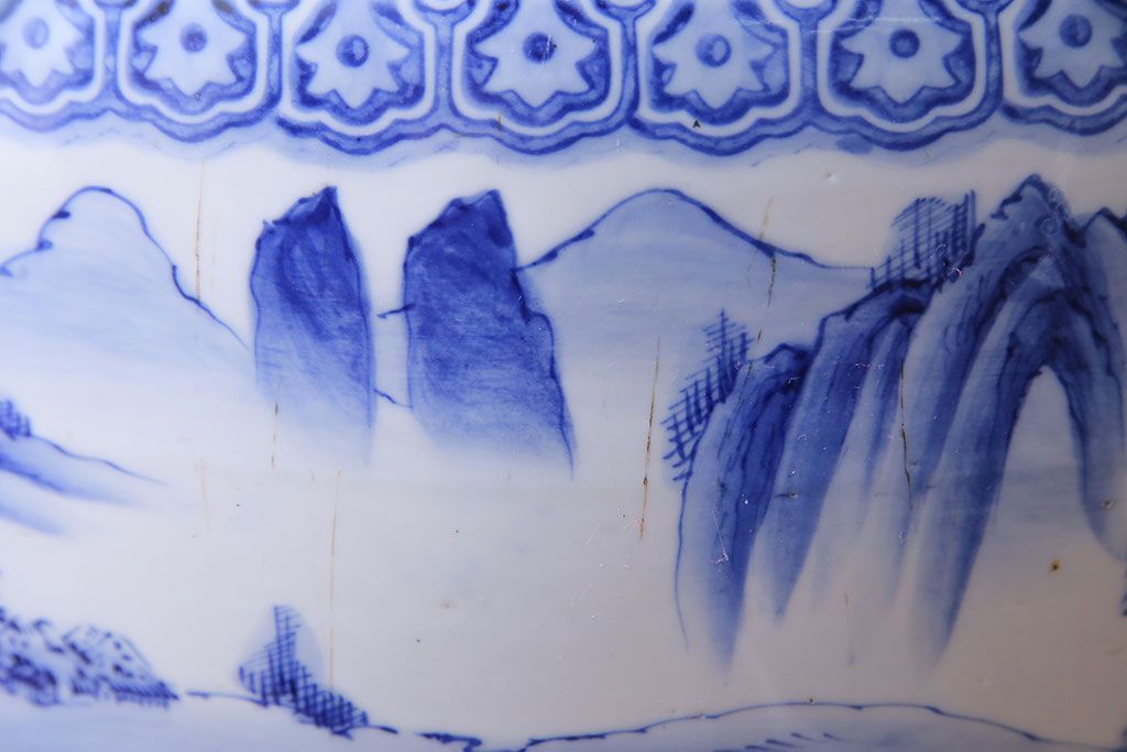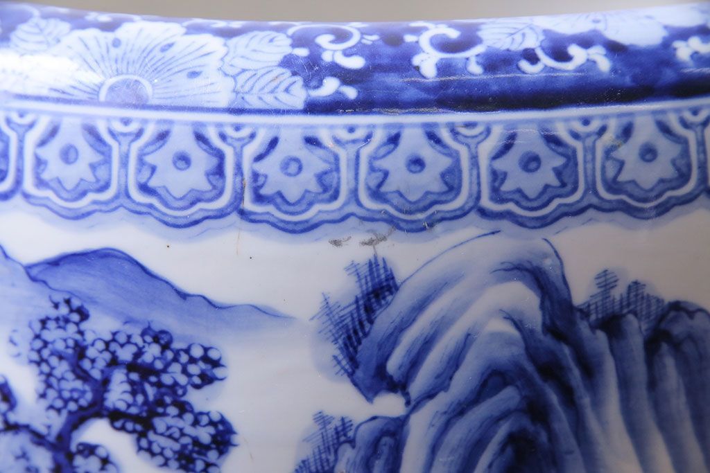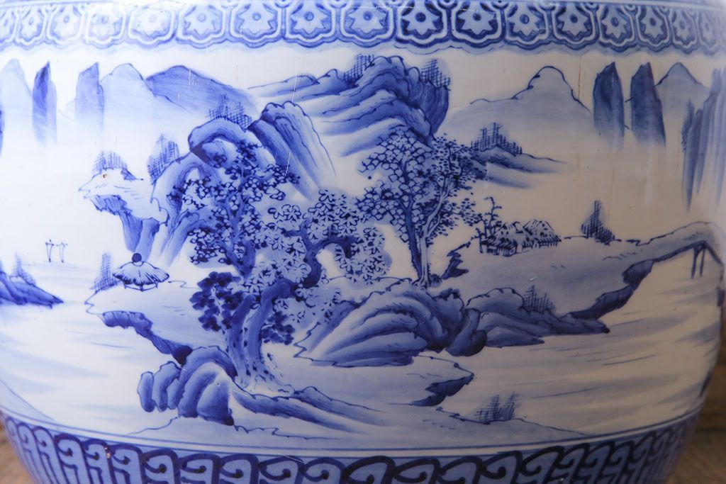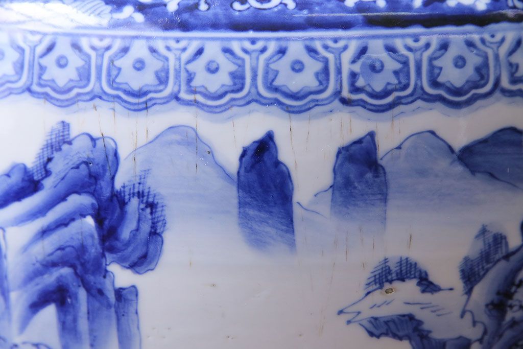 昭和初期 山水図 どっしりとした佇まいの瀬戸火鉢(鉢カバー)です。