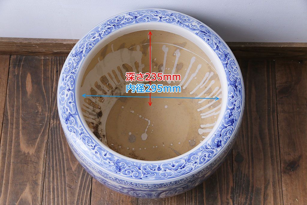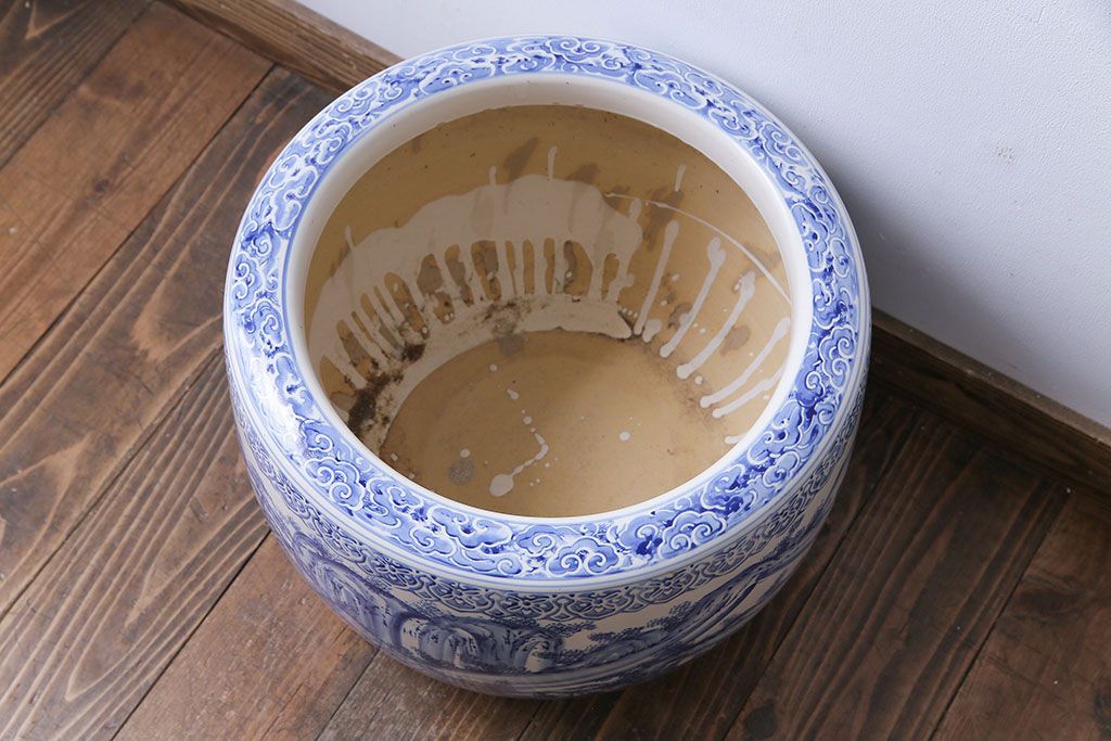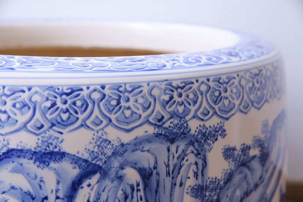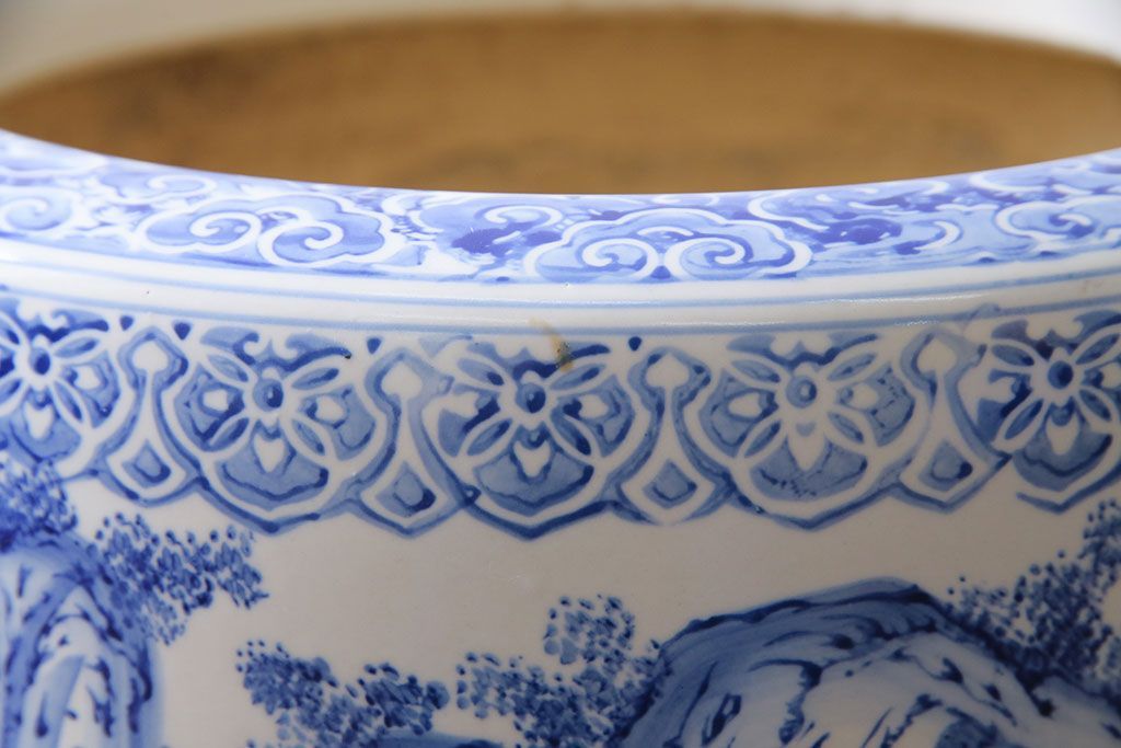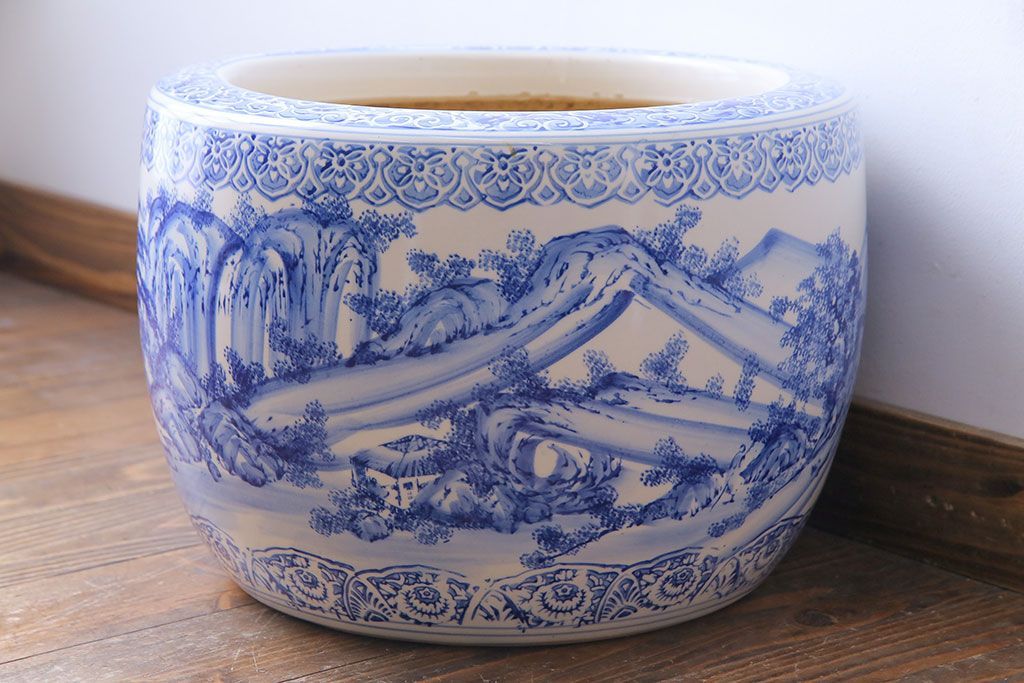 火鉢> 瀬戸火鉢 > アンティーク雑貨 常滑焼 山水図 どこか洋風の雰囲気を漂わせる瀬戸火鉢(鉢カバー)