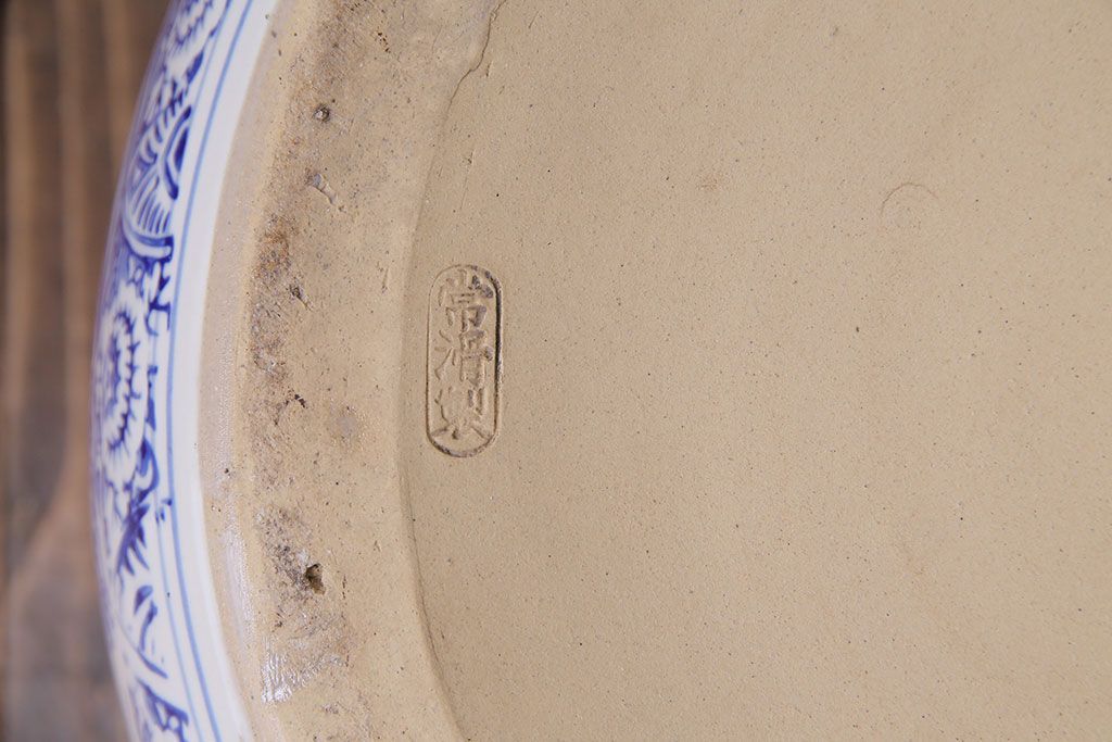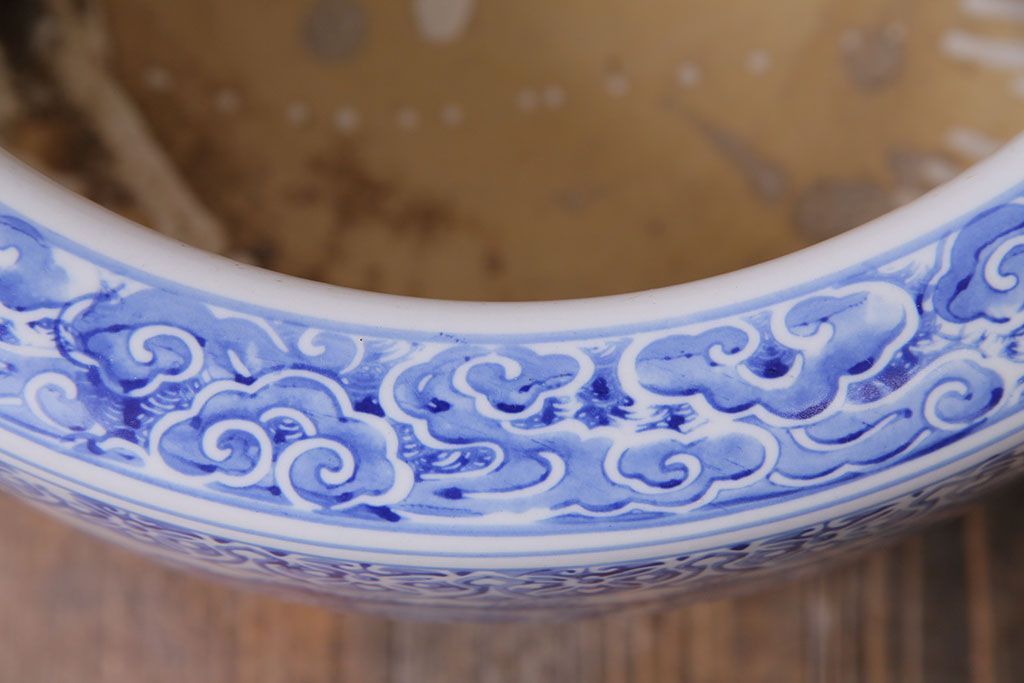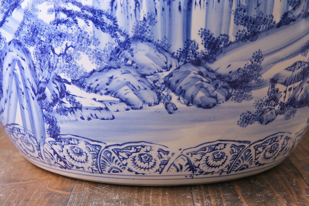 常滑焼 山水図 どこか洋風の雰囲気を漂わせる瀬戸火鉢(鉢カバー)です。
