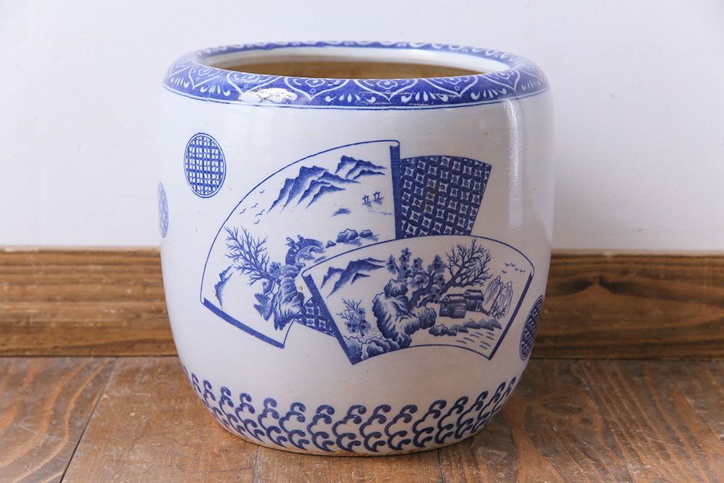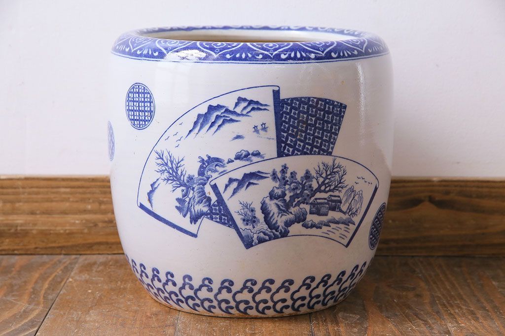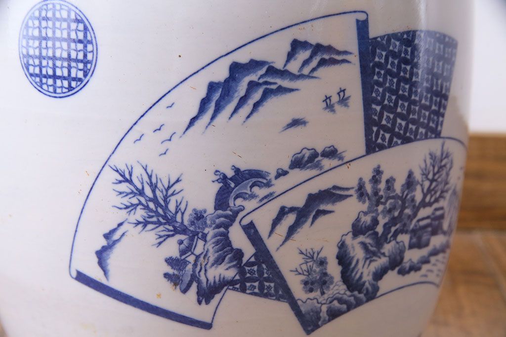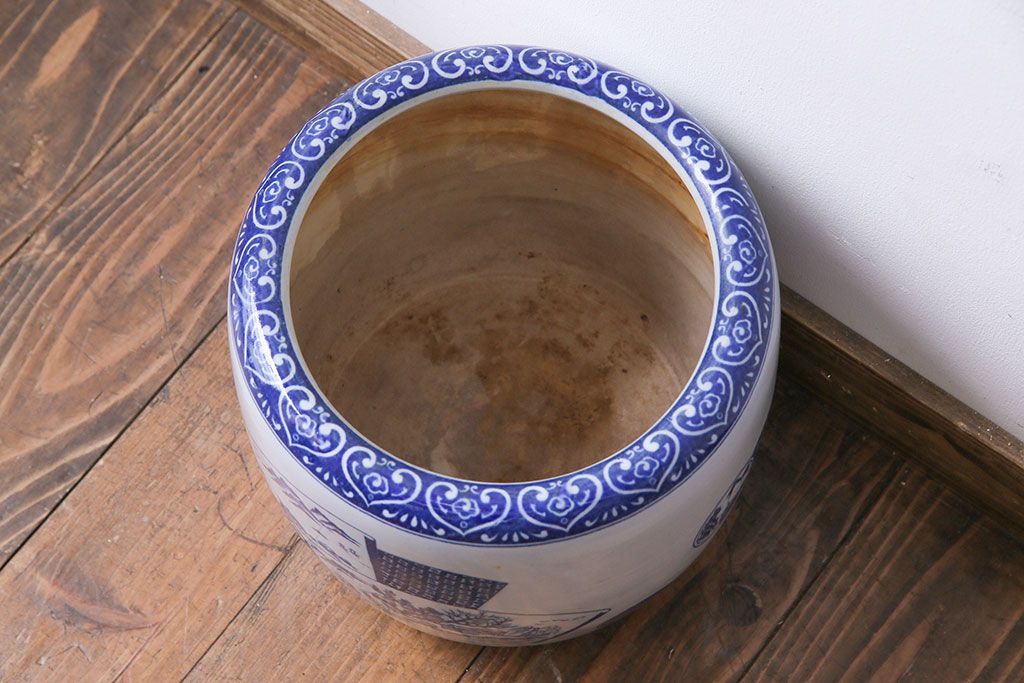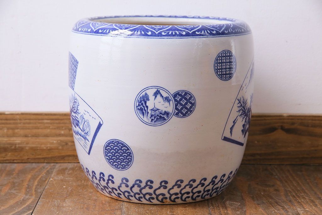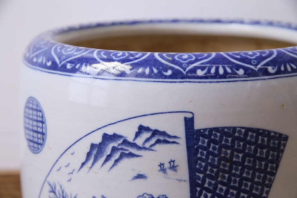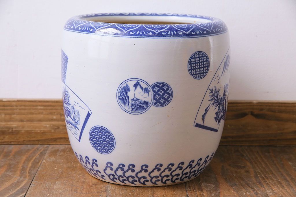 アンティーク雑貨 昭和期 山水図 和の雰囲気漂う瀬戸火鉢(鉢カバー)(1)