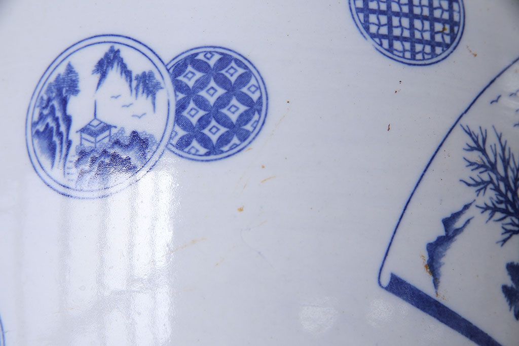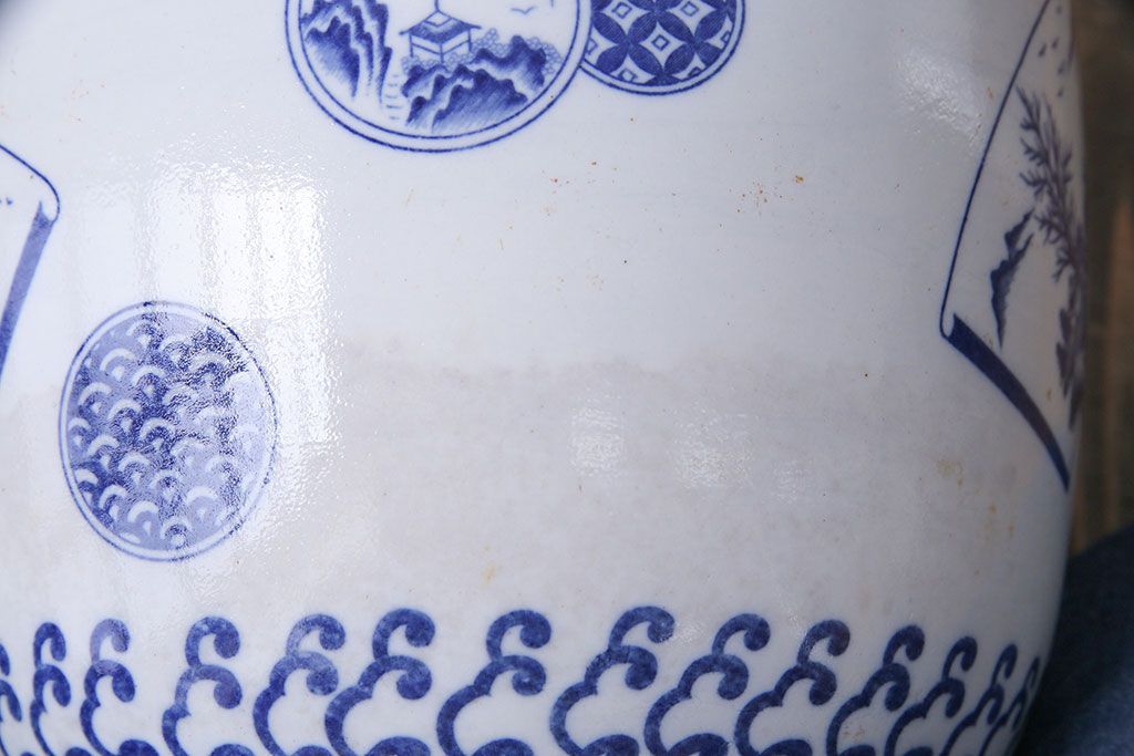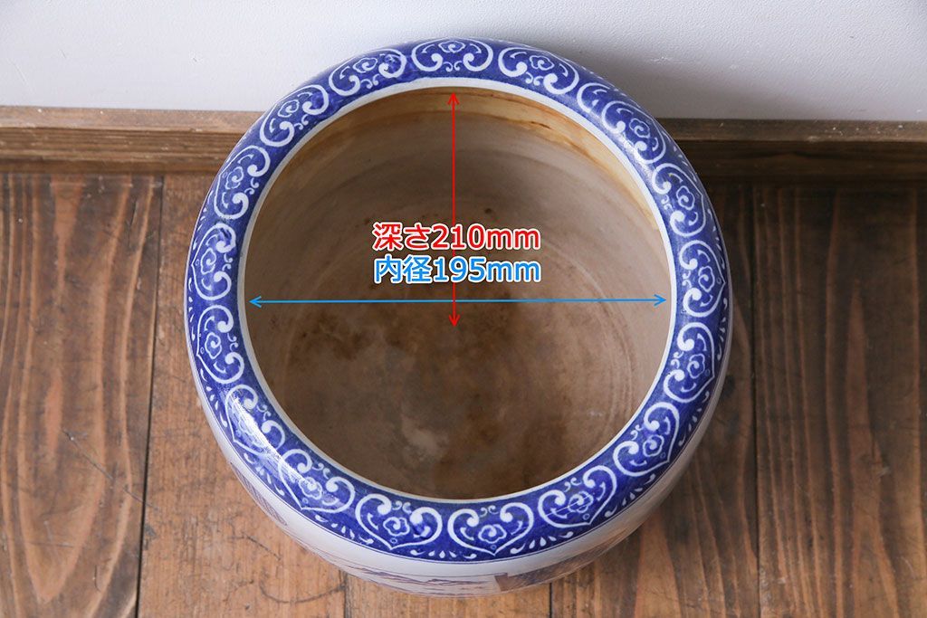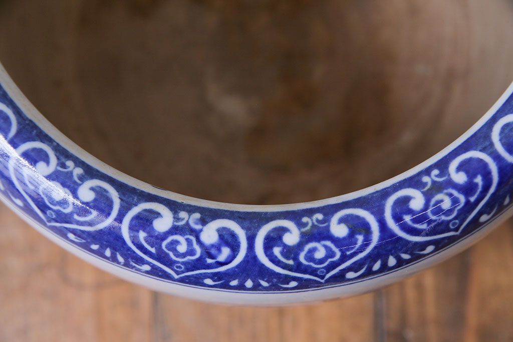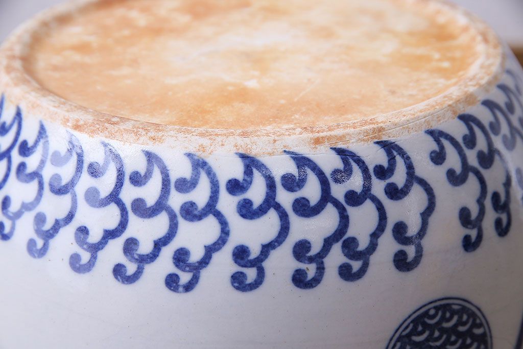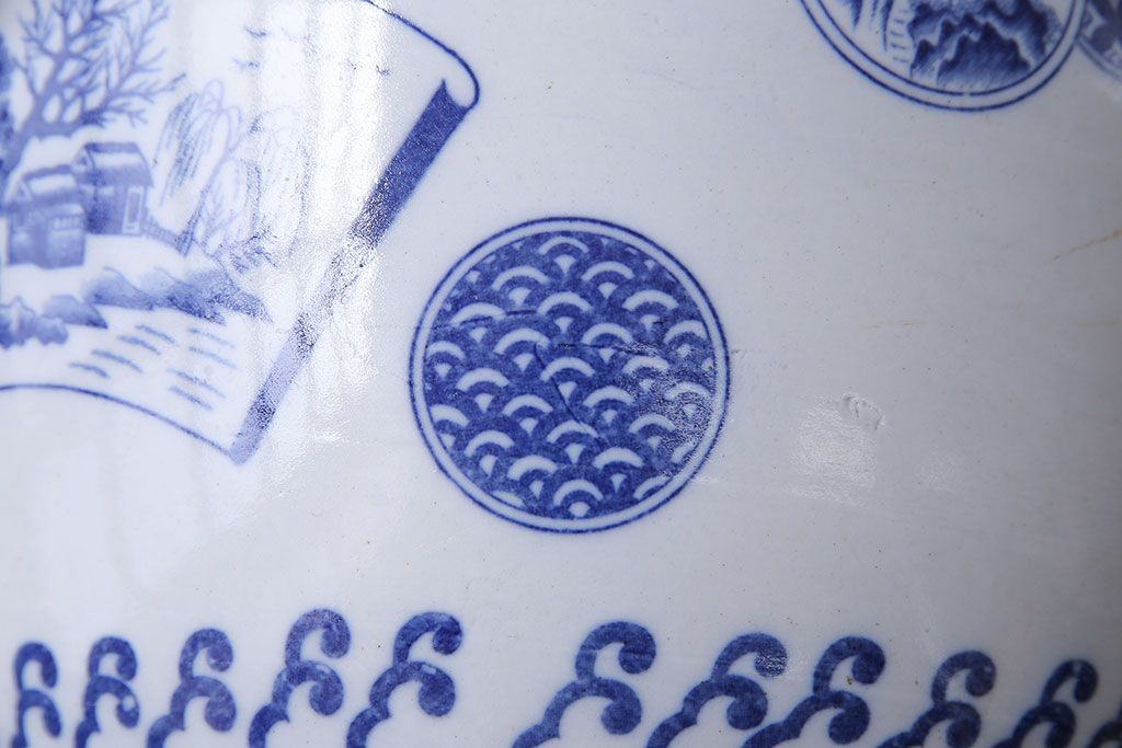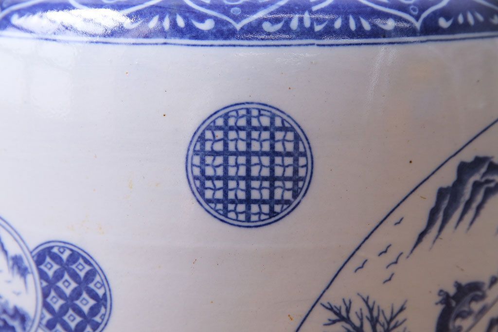 アンティーク雑貨 昭和期 山水図 和の雰囲気漂う瀬戸火鉢(鉢カバー)(1)