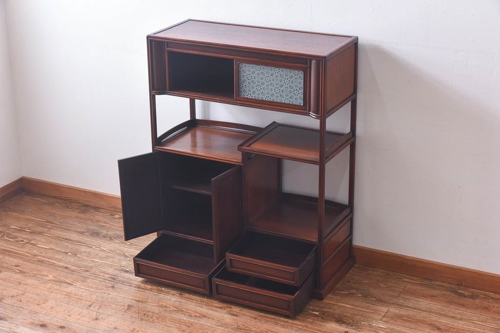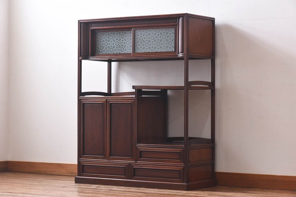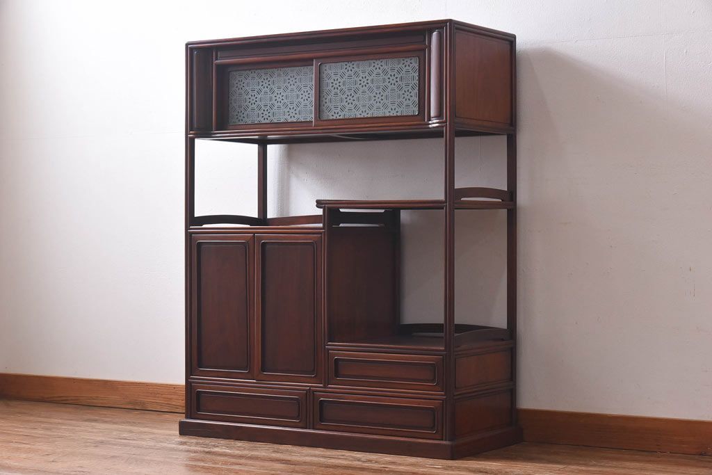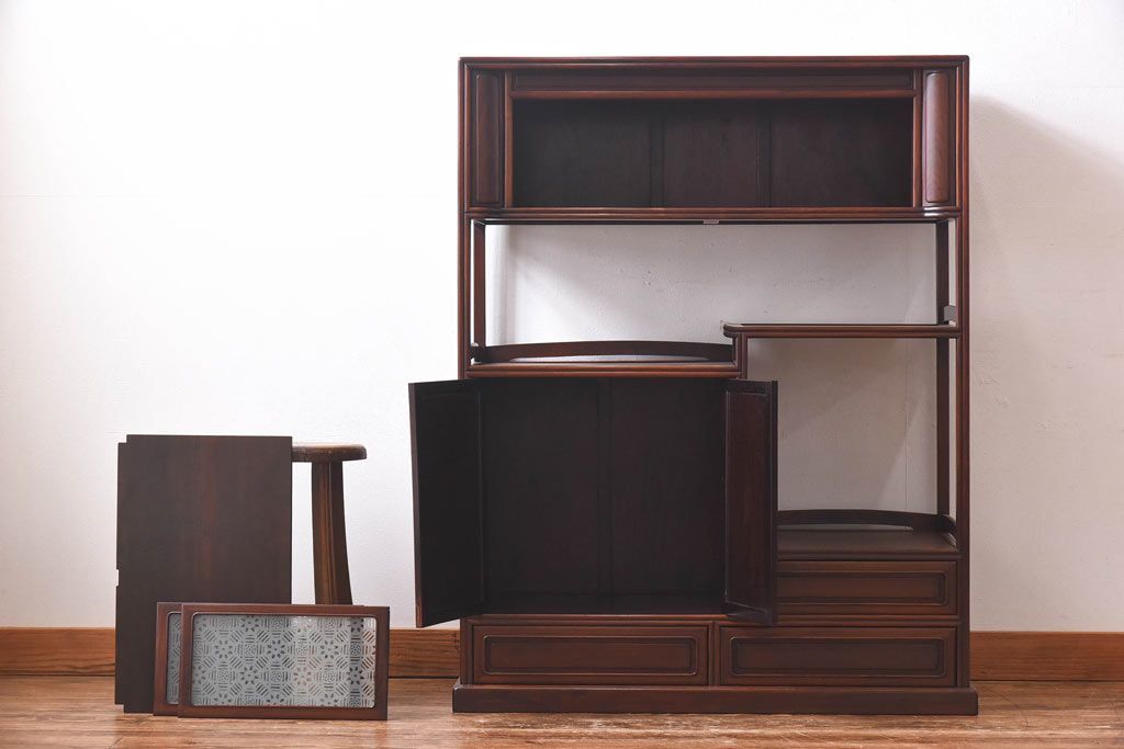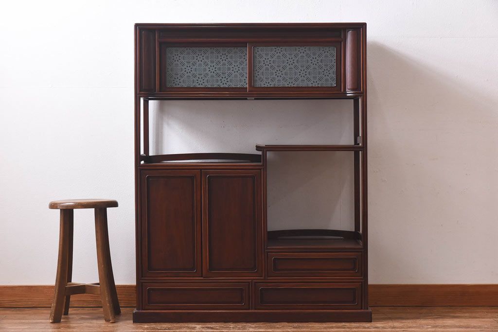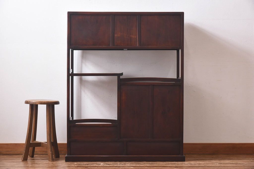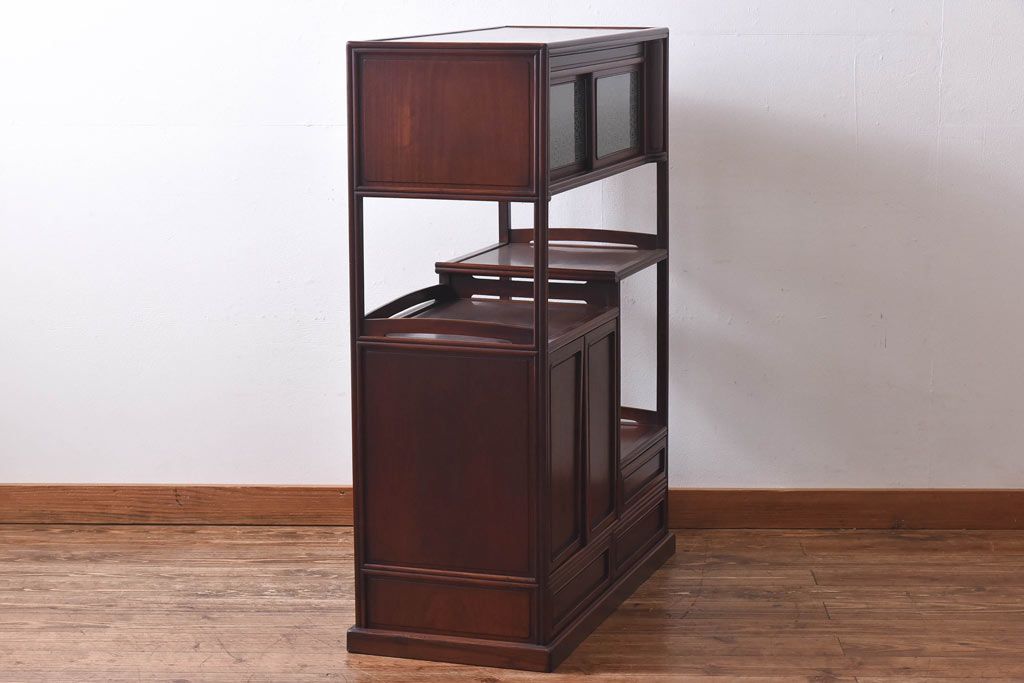 アンティーク家具 和製アンティーク 赤みがかった色合いが美しい唐木の飾り棚(茶棚)