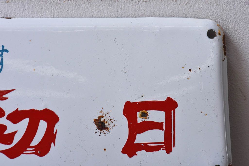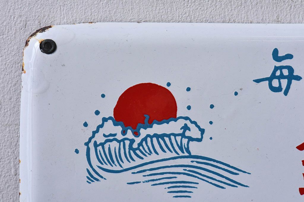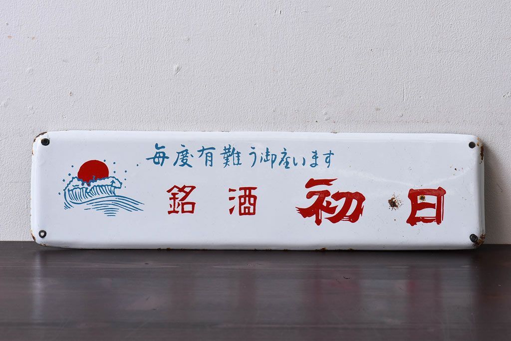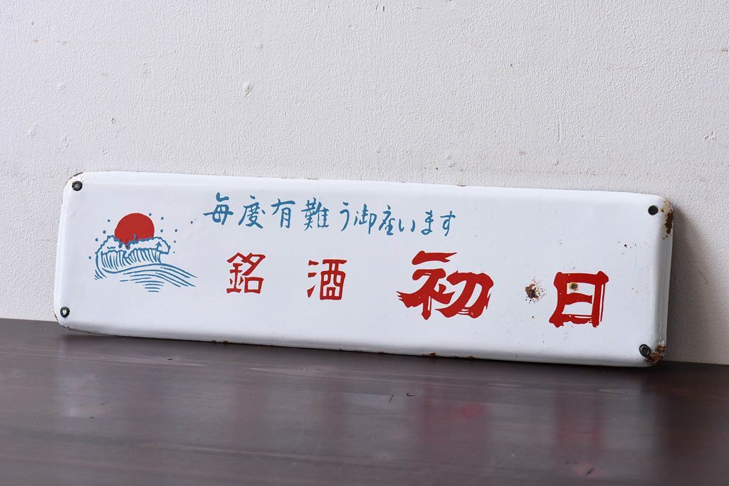 アンティーク雑貨 昭和レトロ デッドストック品 銘酒初日 味わいのあるホーロー看板(企業看板)