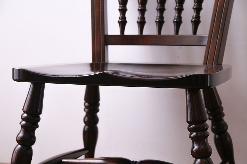 中古 松本民芸家具 #1 アンティーク調にも馴染む安川式スピンドルチェア(ダイニングチェア)(2)