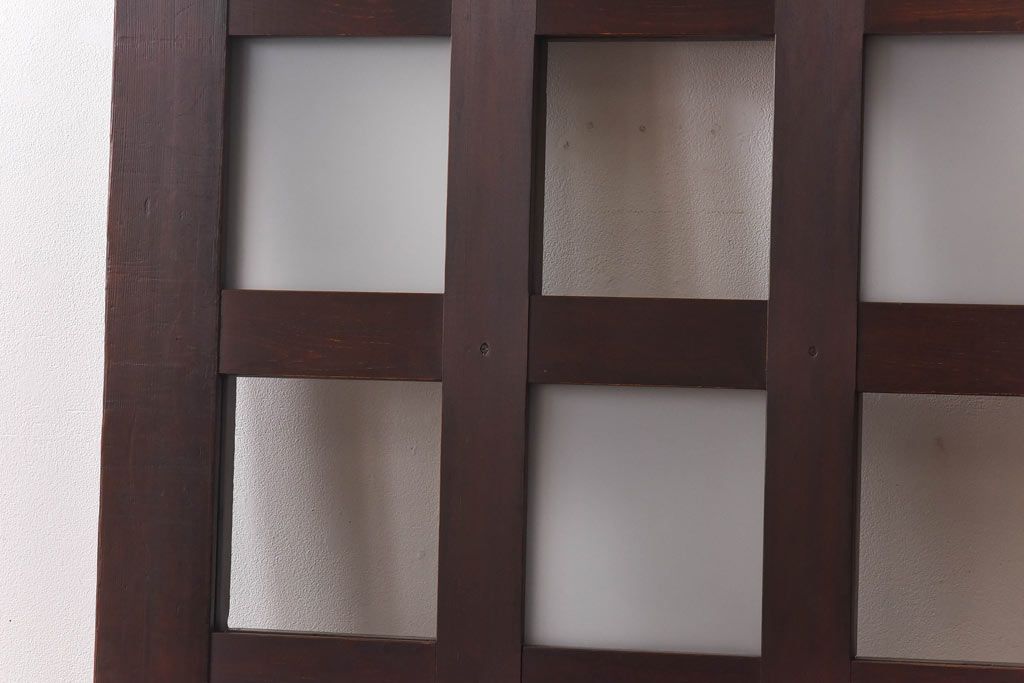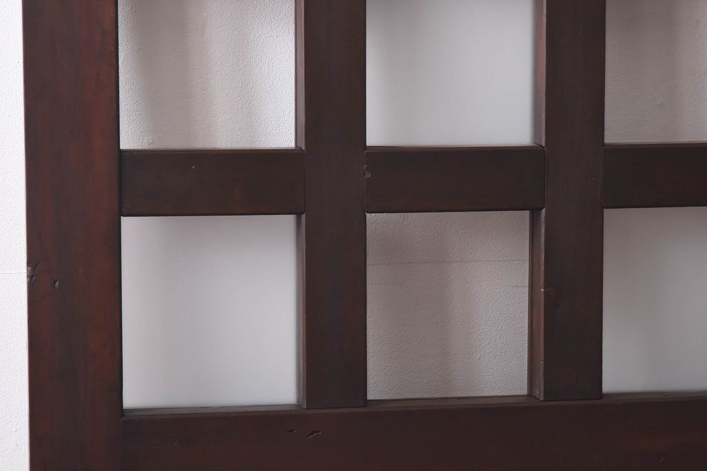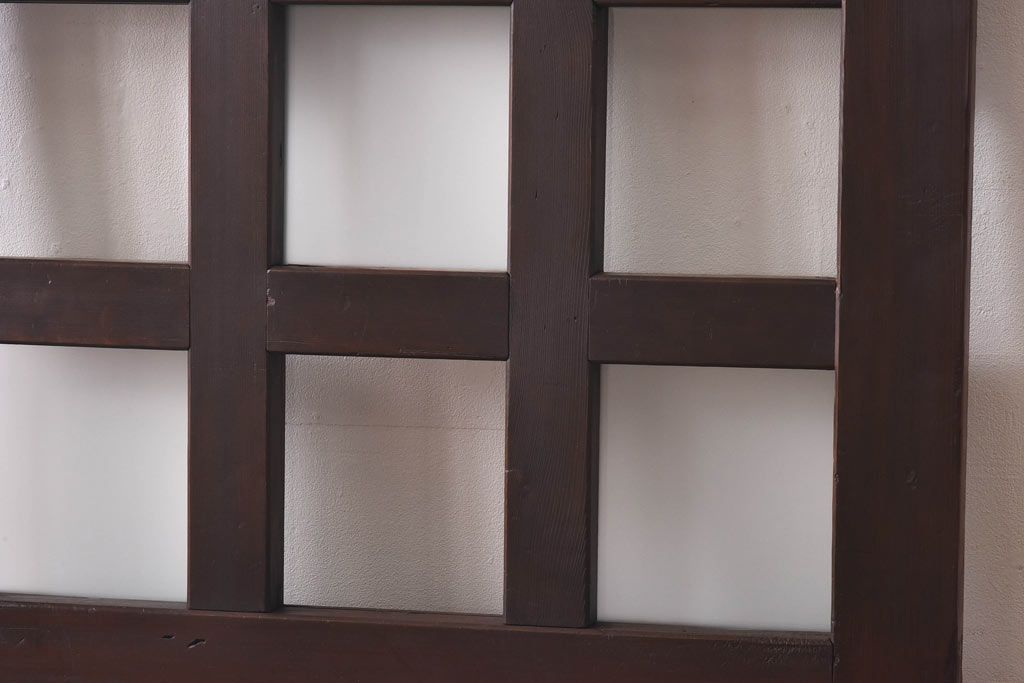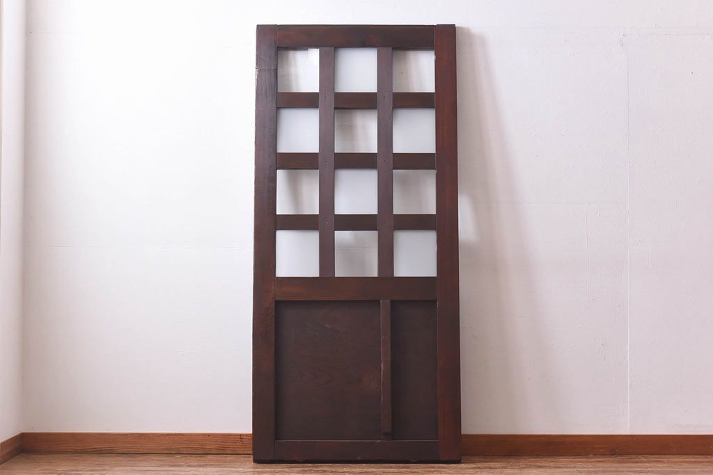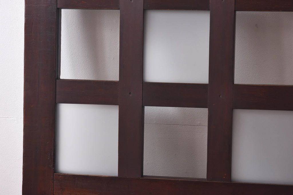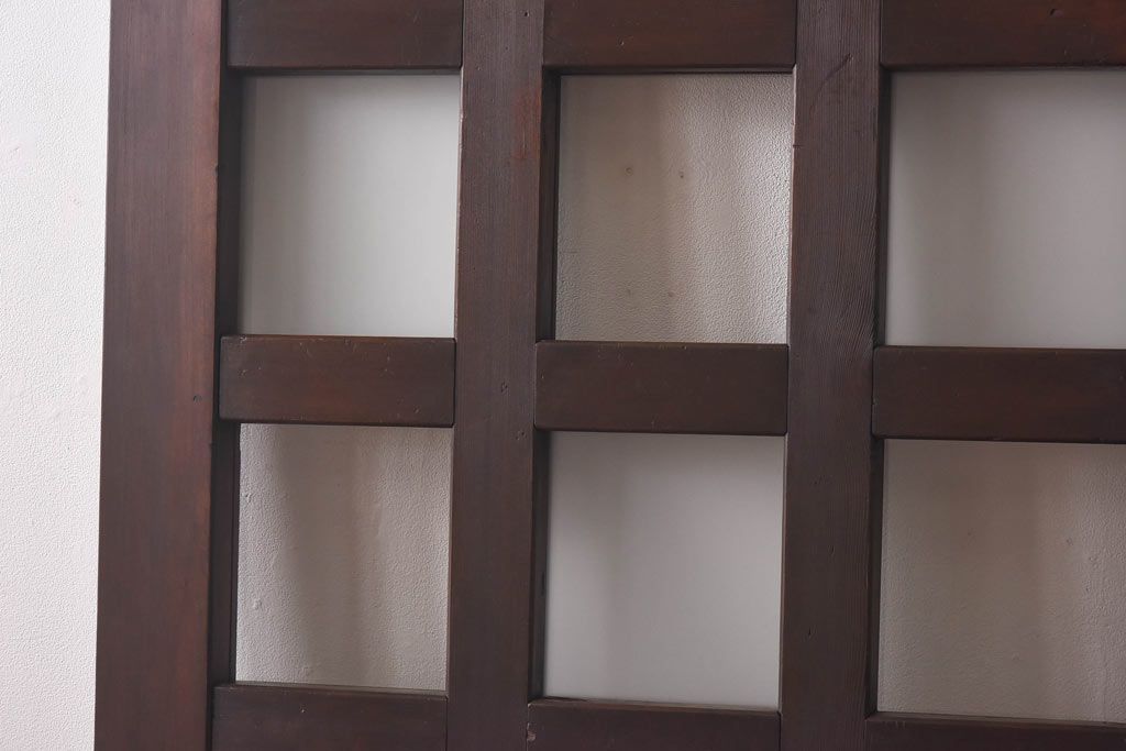 ラフジュ工房> 衝立・パーテーション> スタンド式衝立 > 和製アンティーク ヒノキ材 幅狭 市松模様のガラス入り格子蔵戸(ガラス引き戸、格子戸、建具、玄関戸)