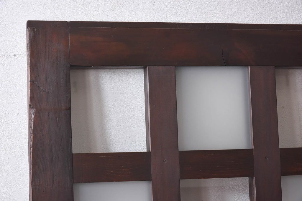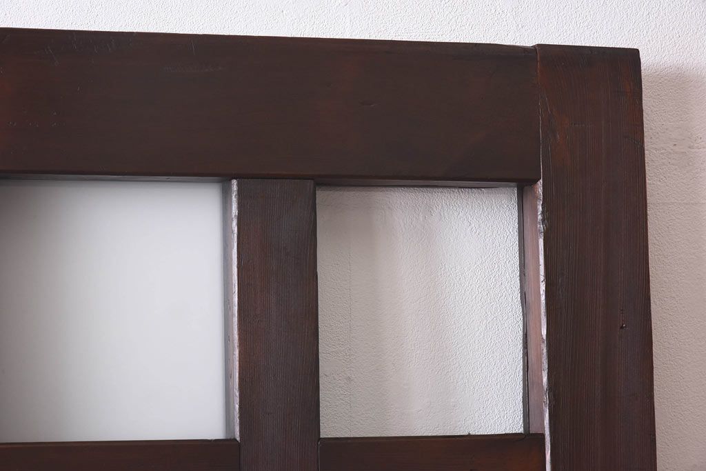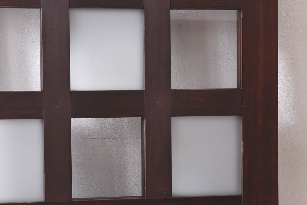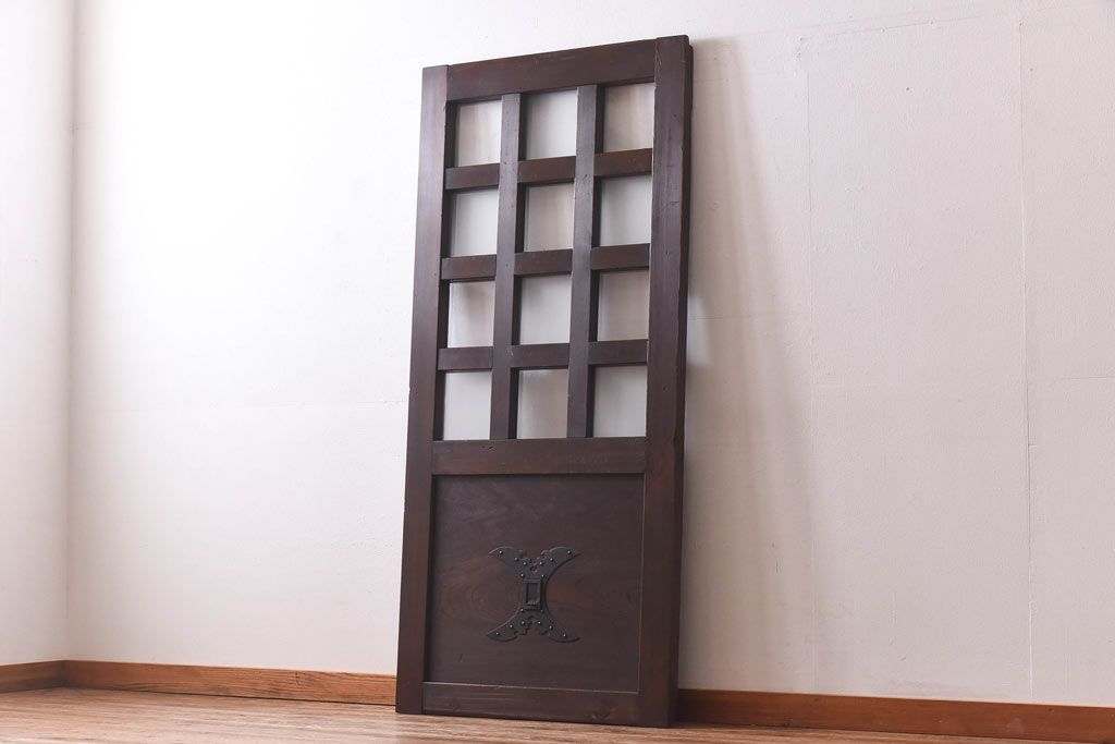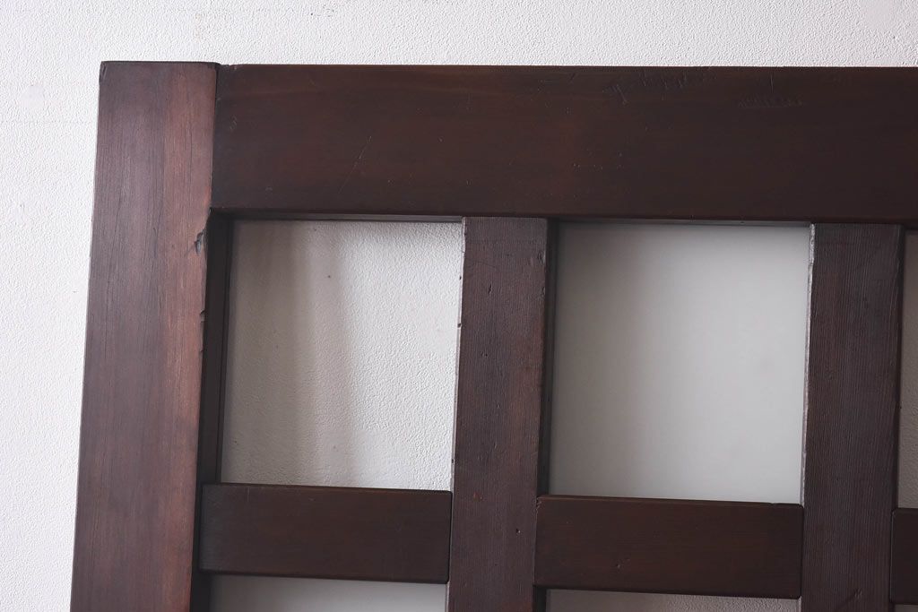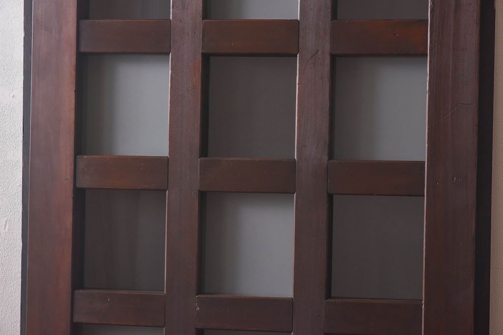 ラフジュ工房> 衝立・パーテーション> スタンド式衝立 > 和製アンティーク ヒノキ材 幅狭 市松模様のガラス入り格子蔵戸(ガラス引き戸、格子戸、建具、玄関戸)