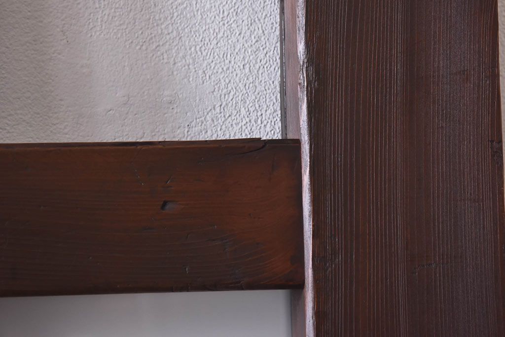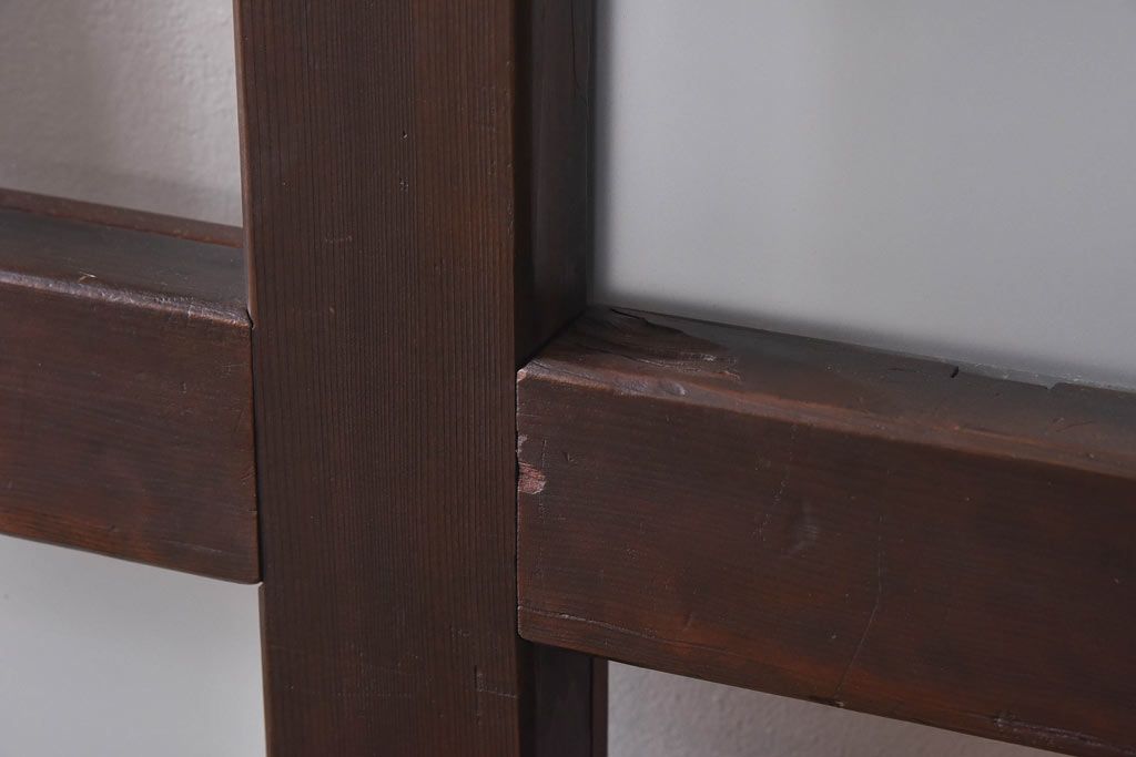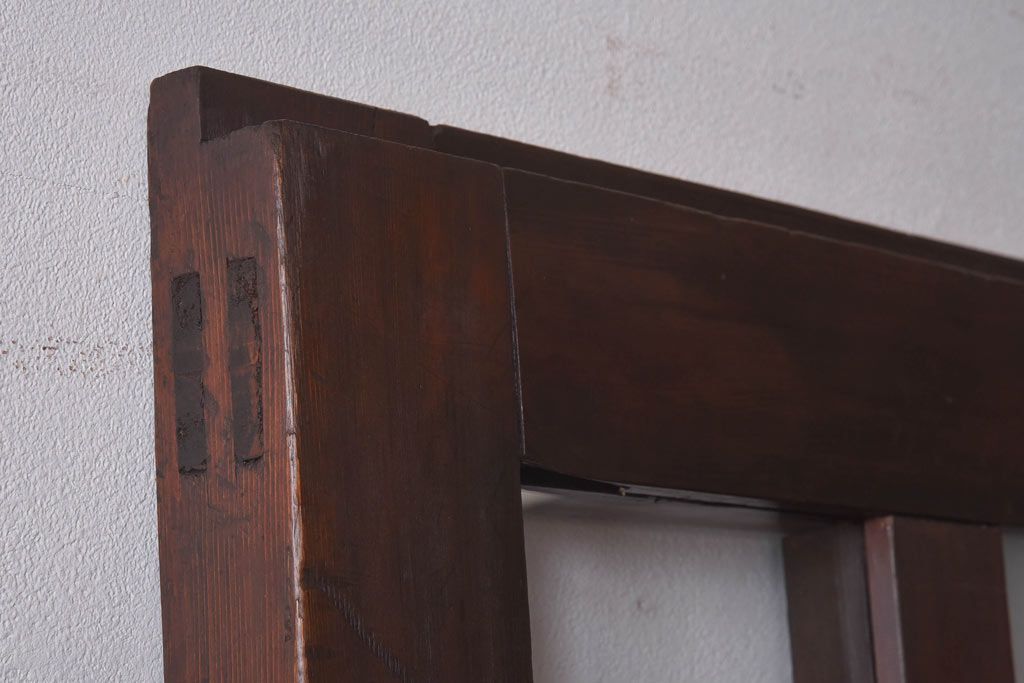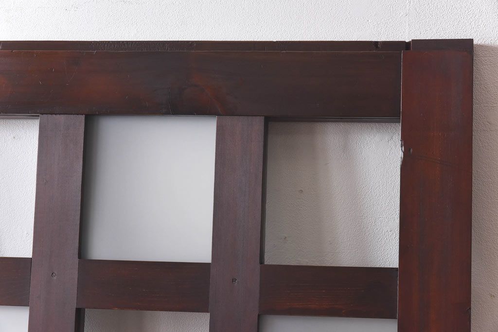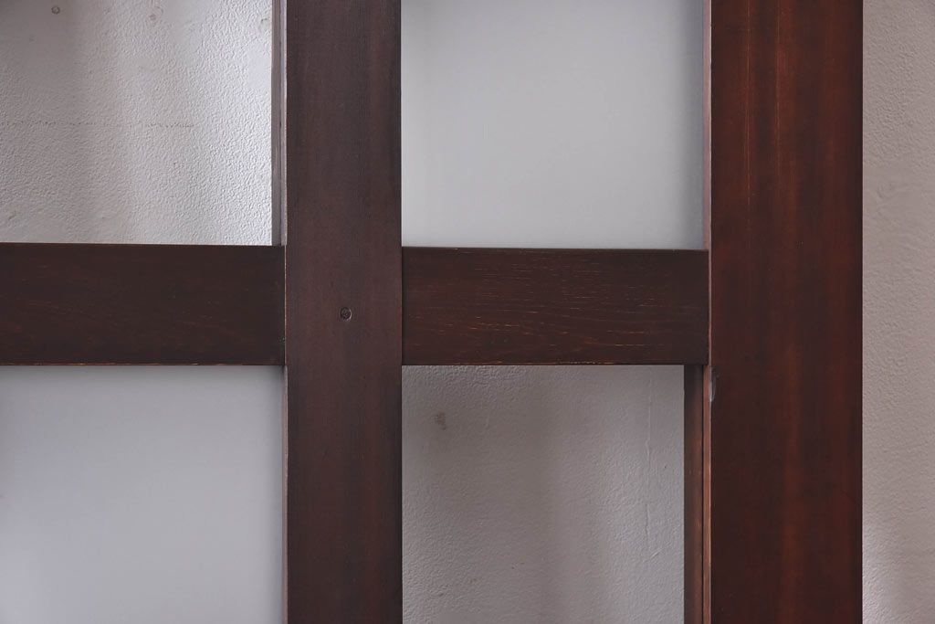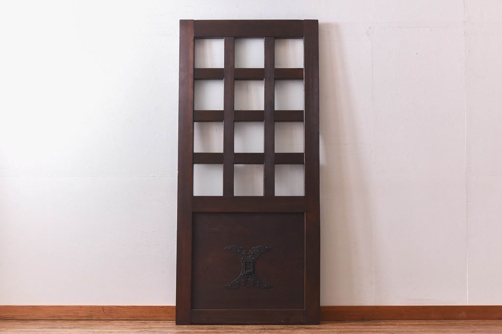 ラフジュ工房> 衝立・パーテーション> スタンド式衝立 > 和製アンティーク ヒノキ材 幅狭 市松模様のガラス入り格子蔵戸(ガラス引き戸、格子戸、建具、玄関戸)