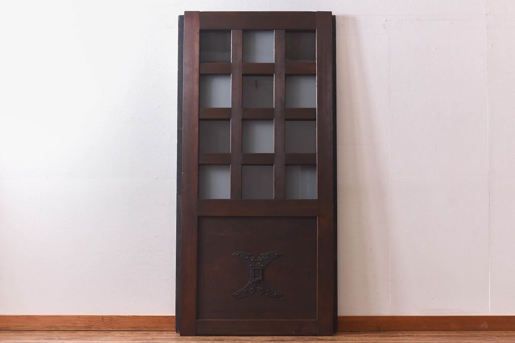ラフジュ工房> ドア・建具> ドア・扉 > 和製アンティーク ヒノキ材 幅狭 市松模様のガラス入り格子蔵戸(ガラス引き戸、格子戸、建具、玄関戸)