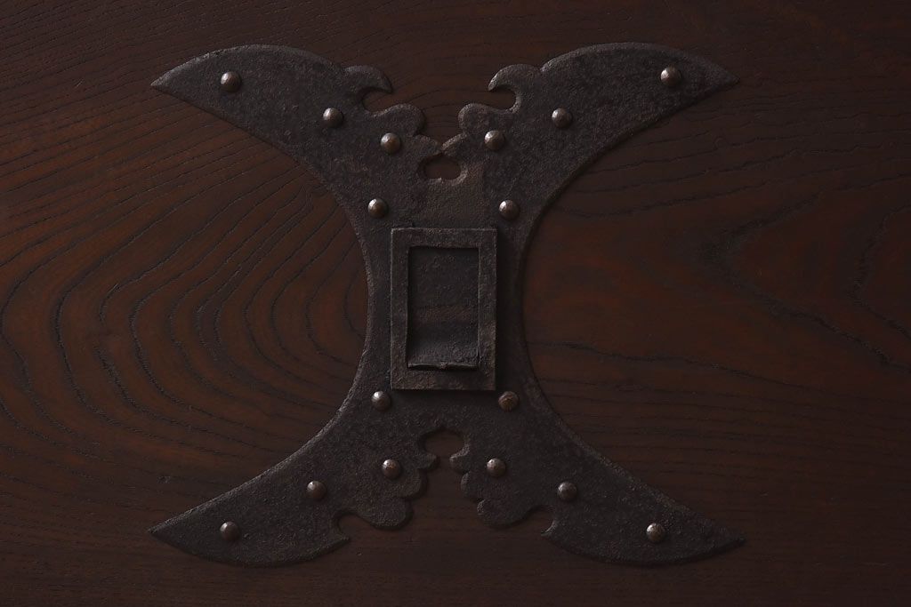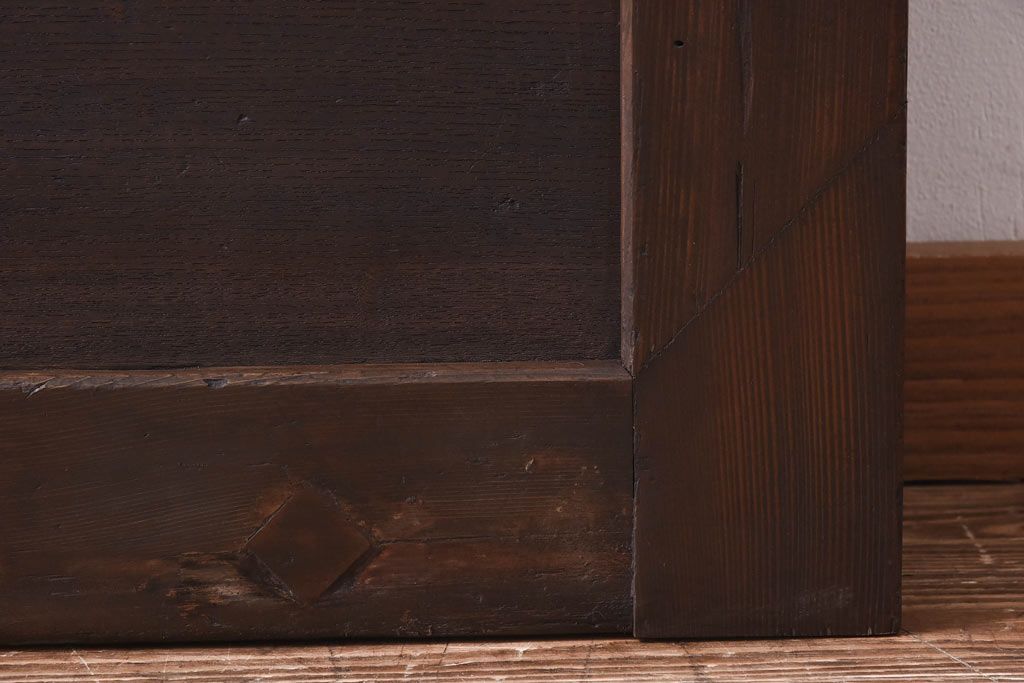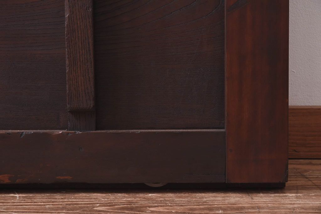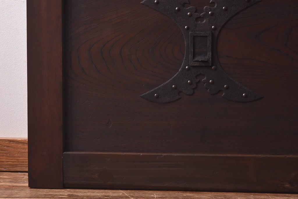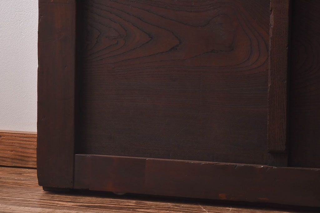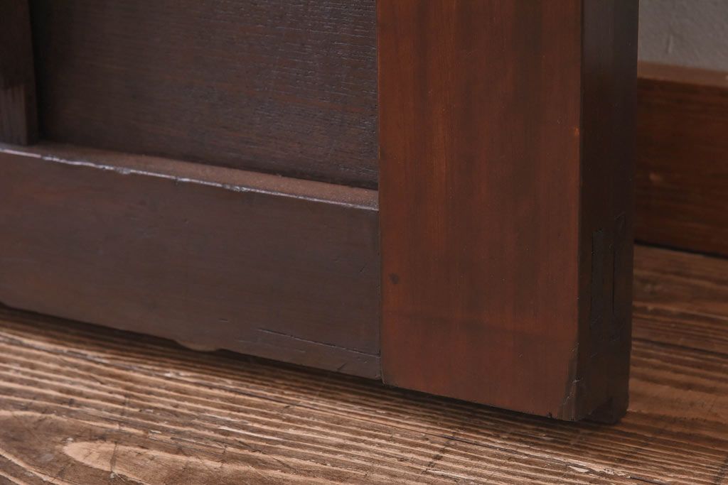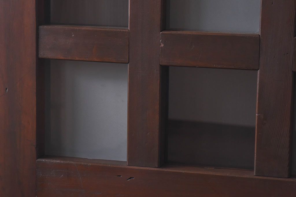 和製アンティーク ヒノキ材 幅狭 市松模様のガラス入り格子蔵戸(ガラス引き戸、格子戸、建具、玄関戸)
