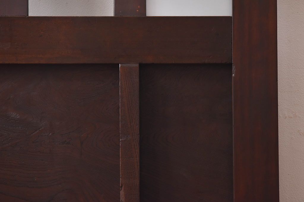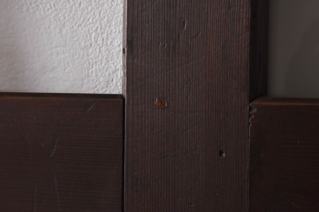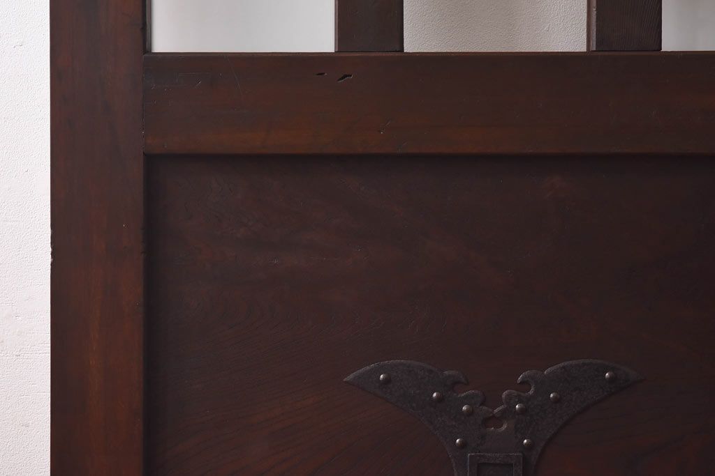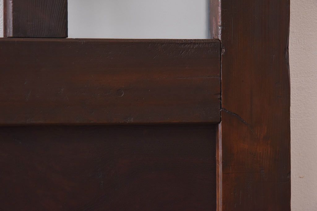 ラフジュ工房> 衝立・パーテーション > 和製アンティーク ヒノキ材 幅狭 市松模様のガラス入り格子蔵戸(ガラス引き戸、格子戸、建具、玄関戸)