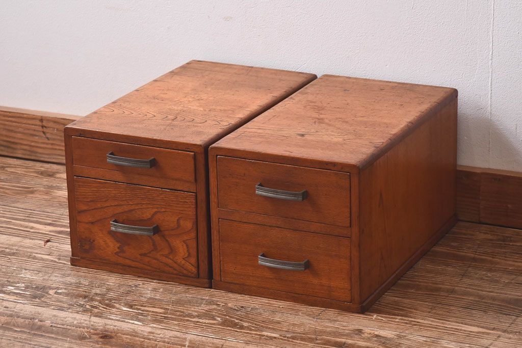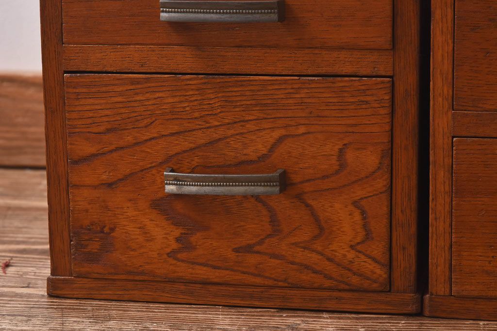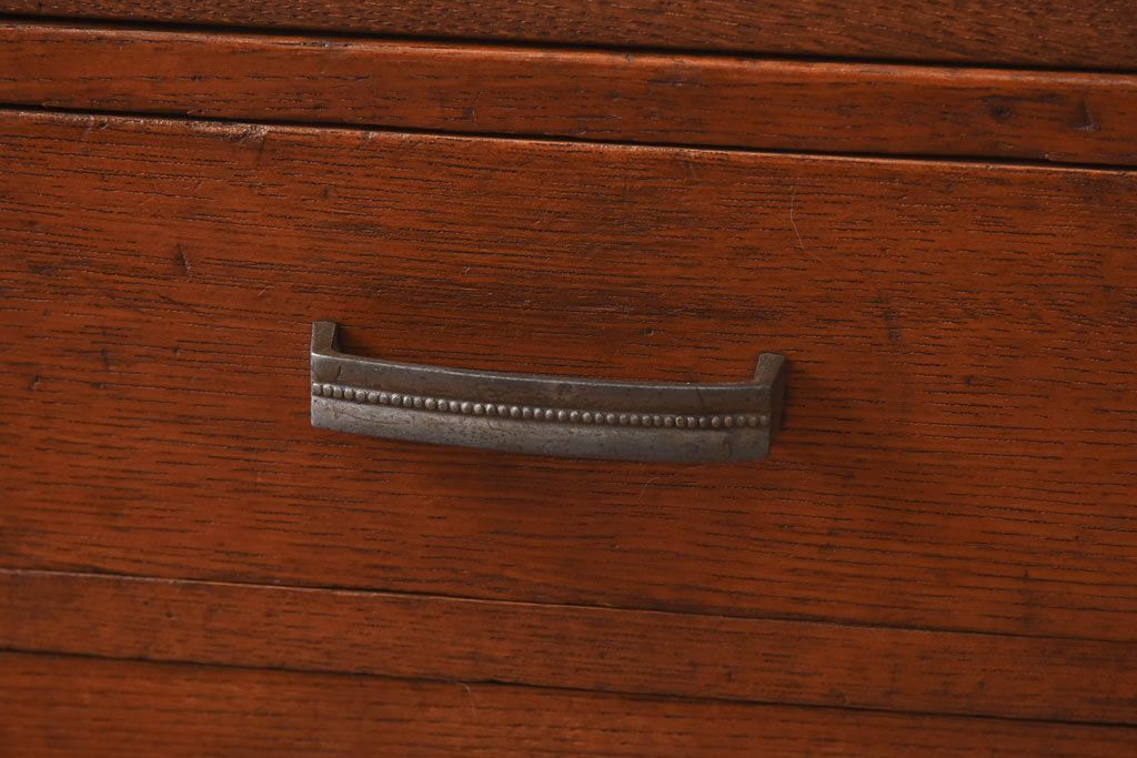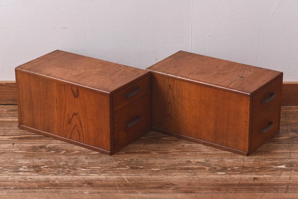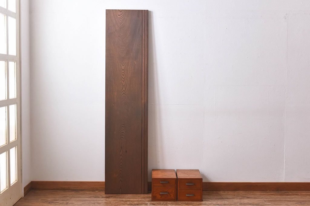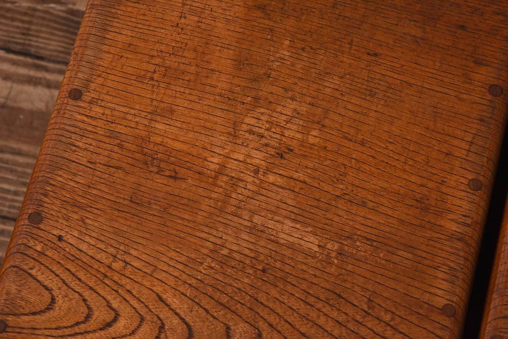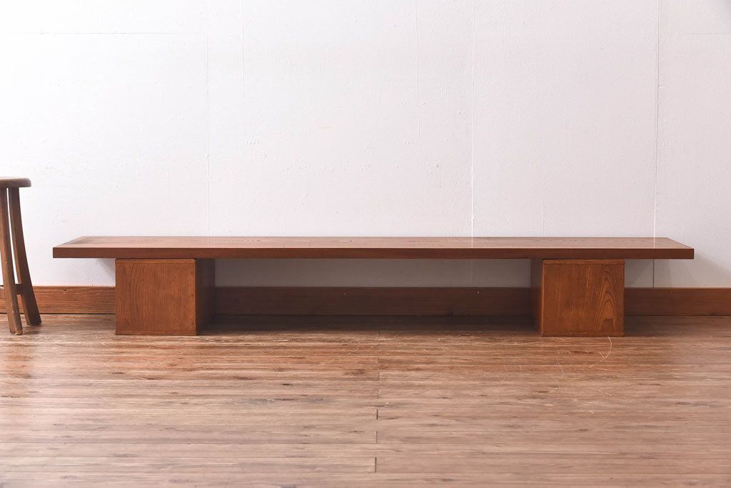 アンティーク雑貨 天板一枚板 小引き出し付き ケヤキの木目が美しい裁ち板(作業台、ローボード)