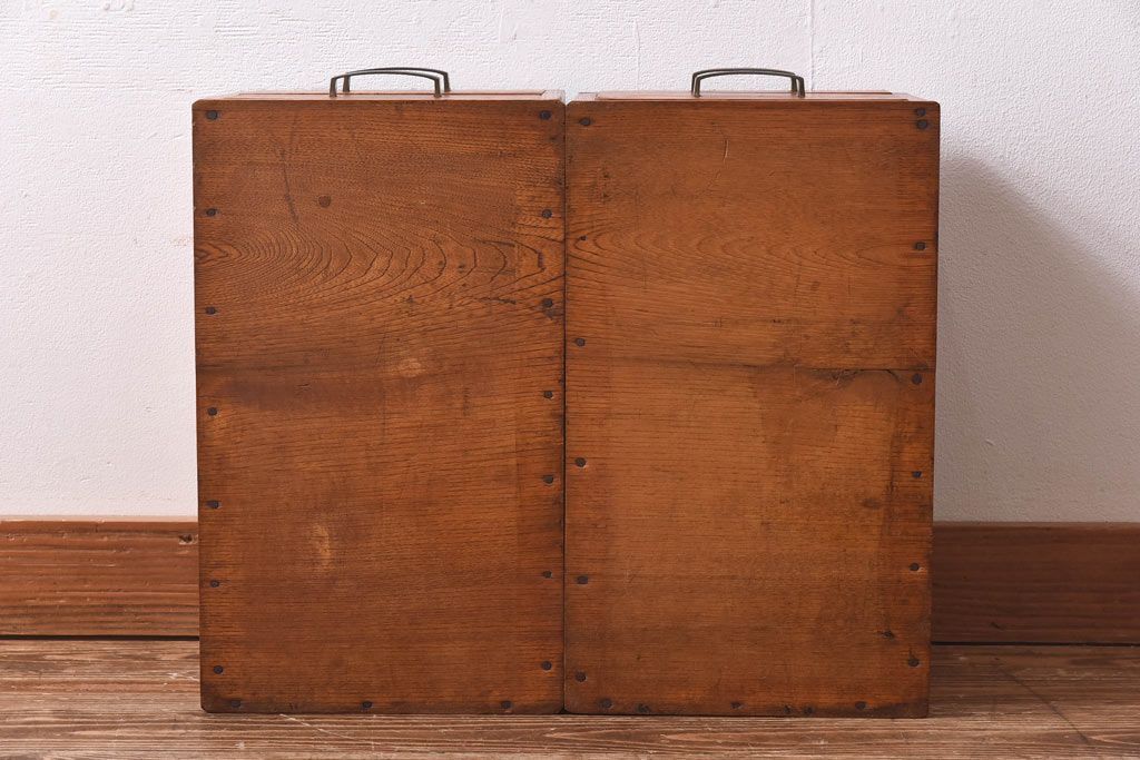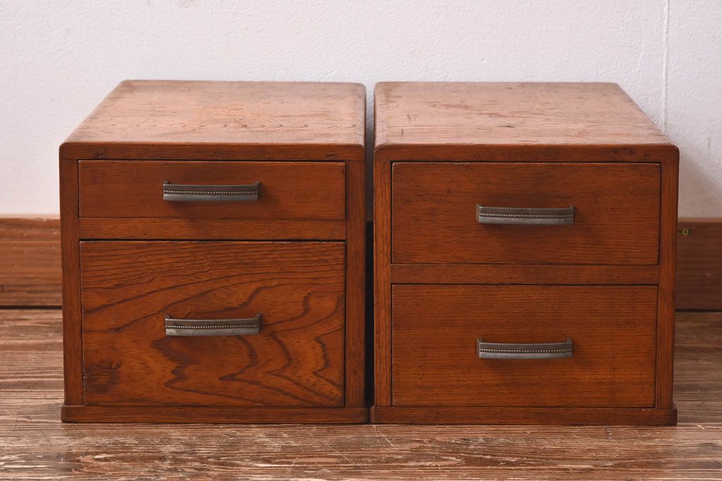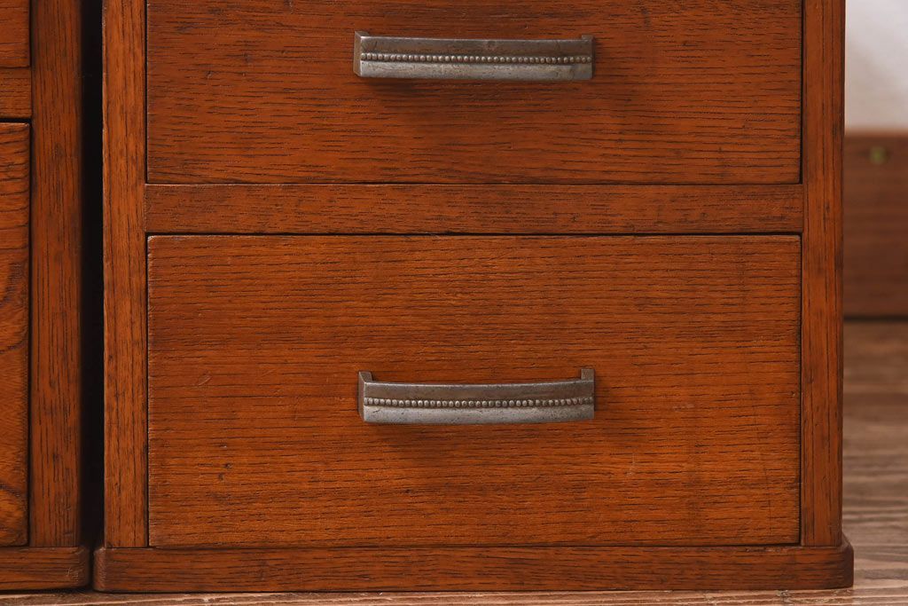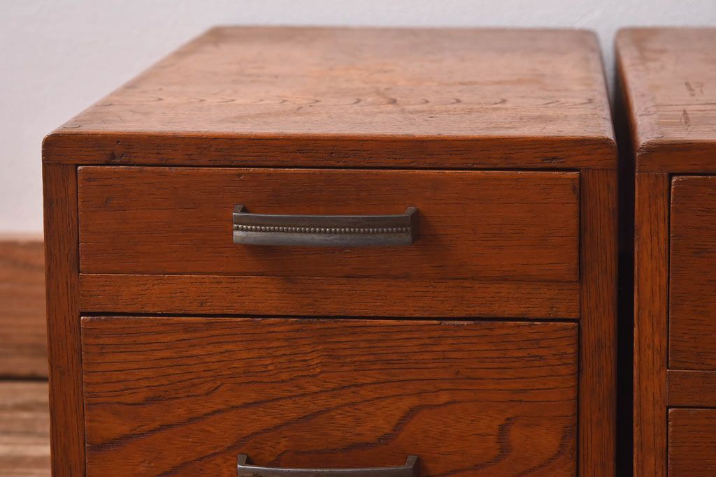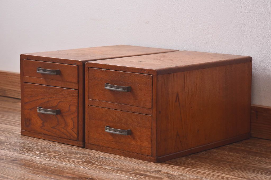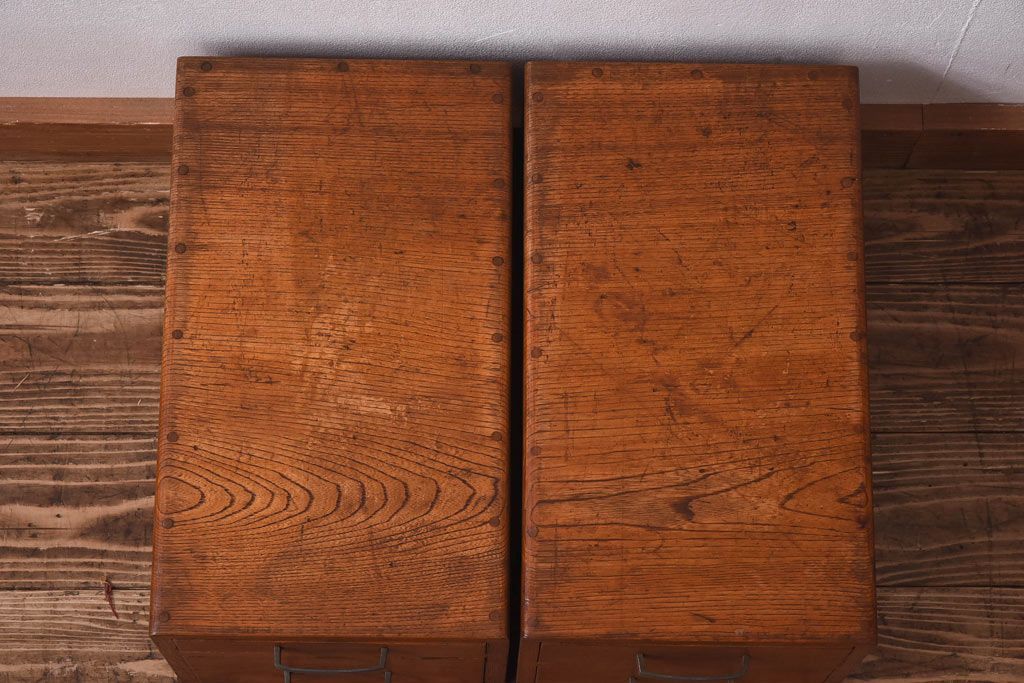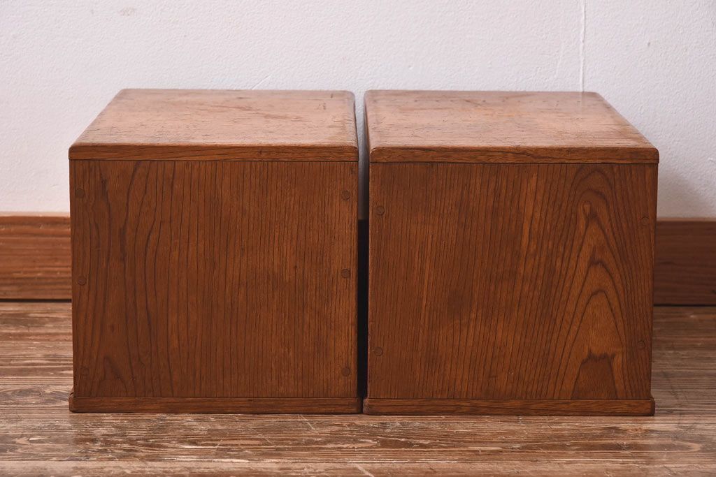 アンティーク雑貨 天板一枚板 小引き出し付き ケヤキの木目が美しい裁ち板(作業台、ローボード)