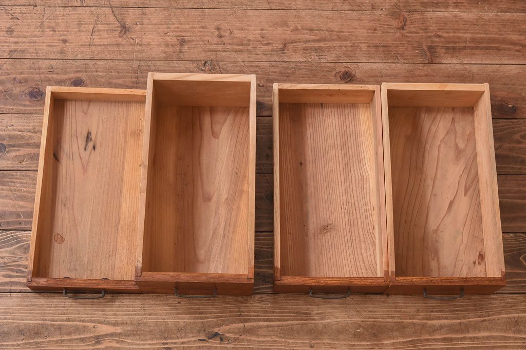 ラフジュ工房> テーブル> 裁ち板・天板・古材 > アンティーク雑貨 天板一枚板 小引き出し付き ケヤキの木目が美しい裁ち板(作業台、ローボード)