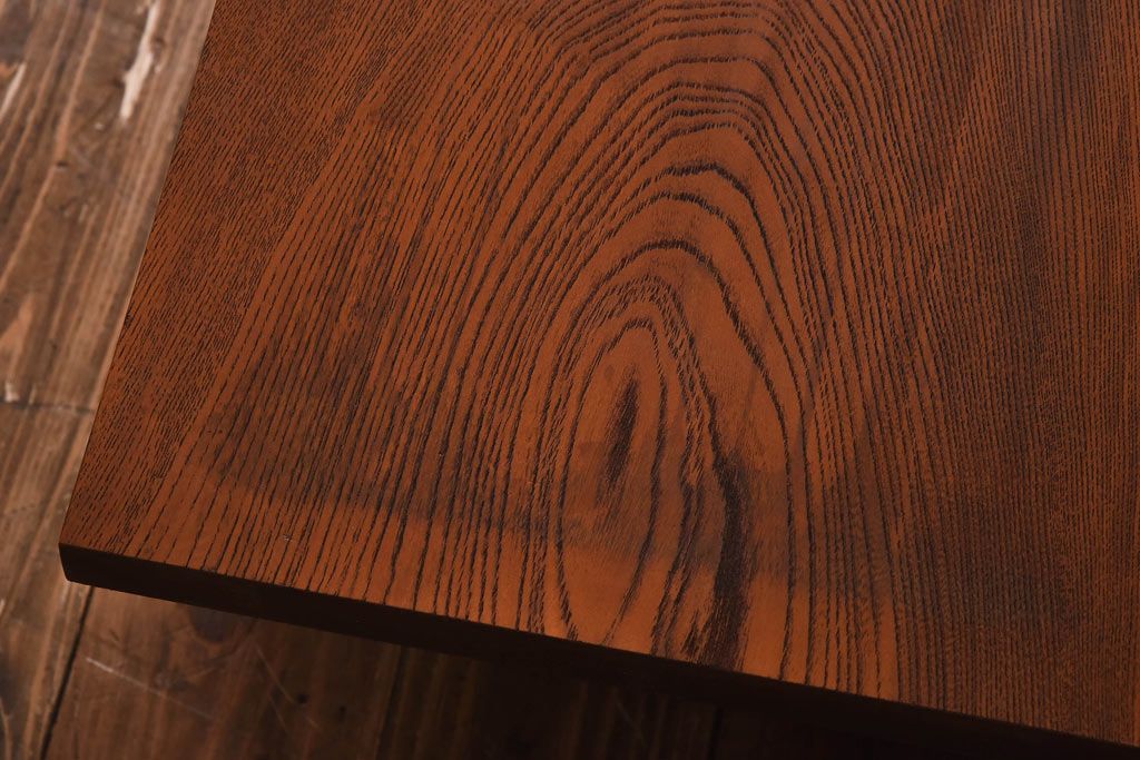 ラフジュ工房> 花台・飾り台 > アンティーク雑貨 天板一枚板 小引き出し付き ケヤキの木目が美しい裁ち板(作業台、ローボード)