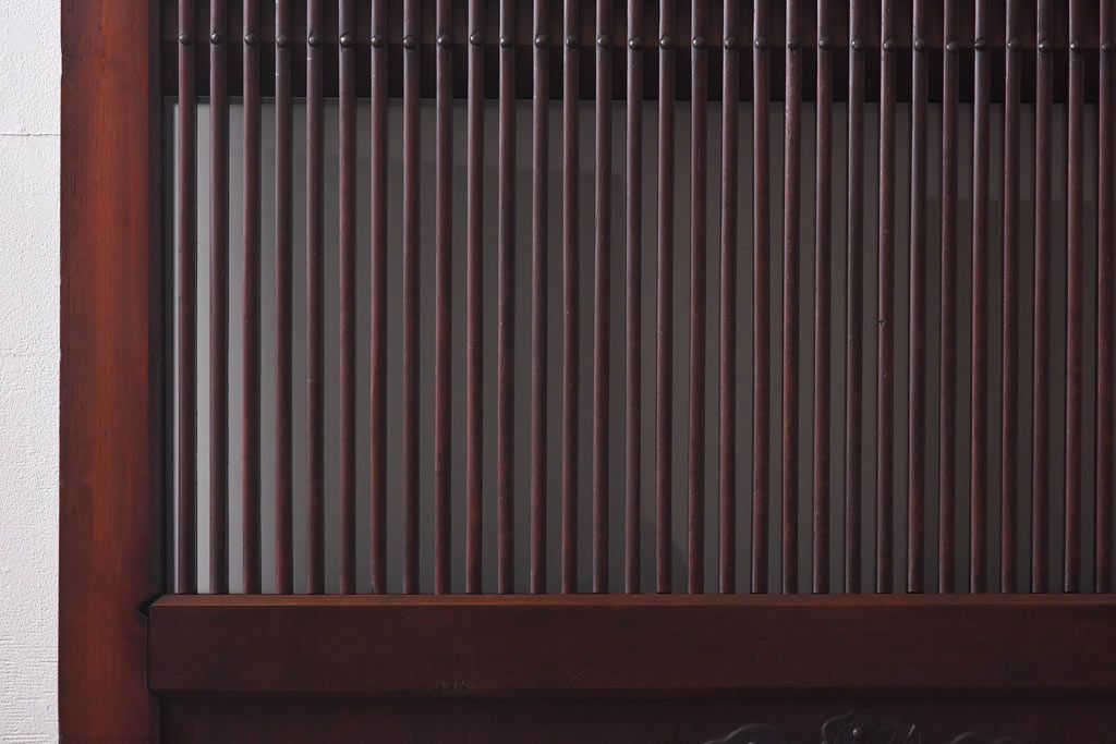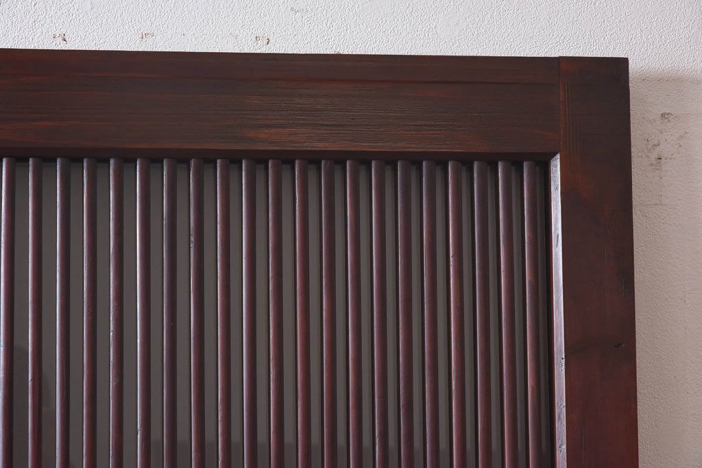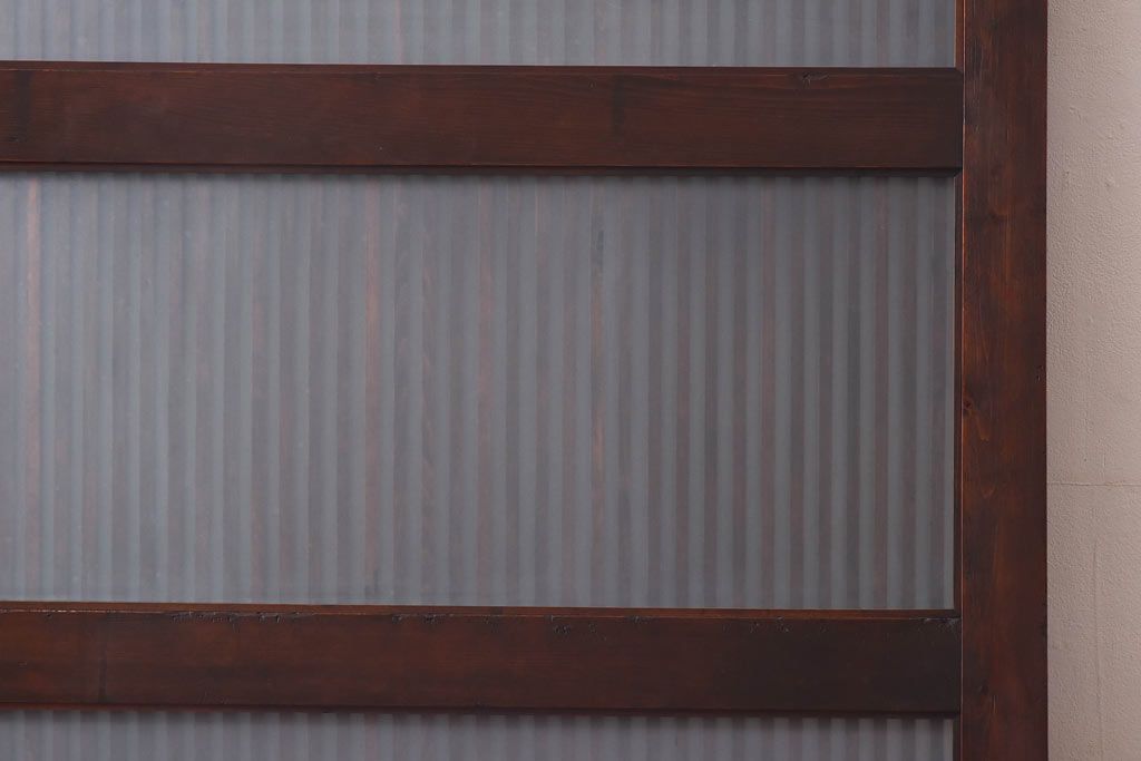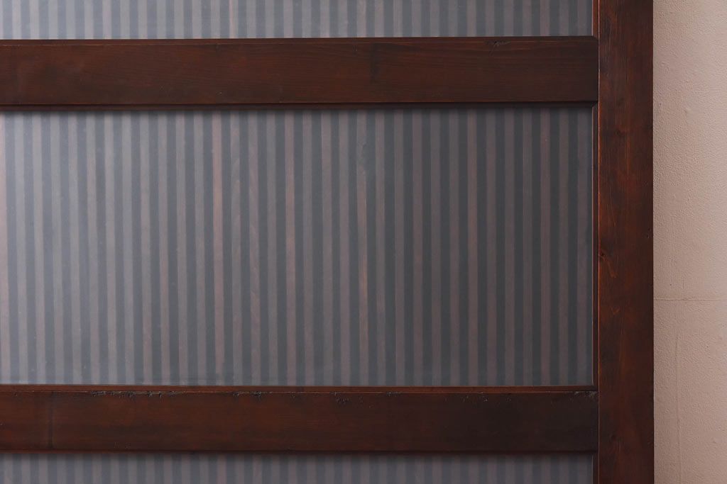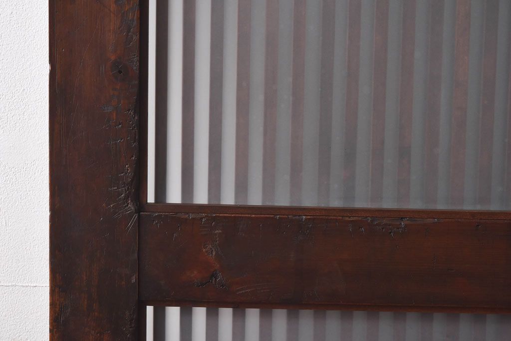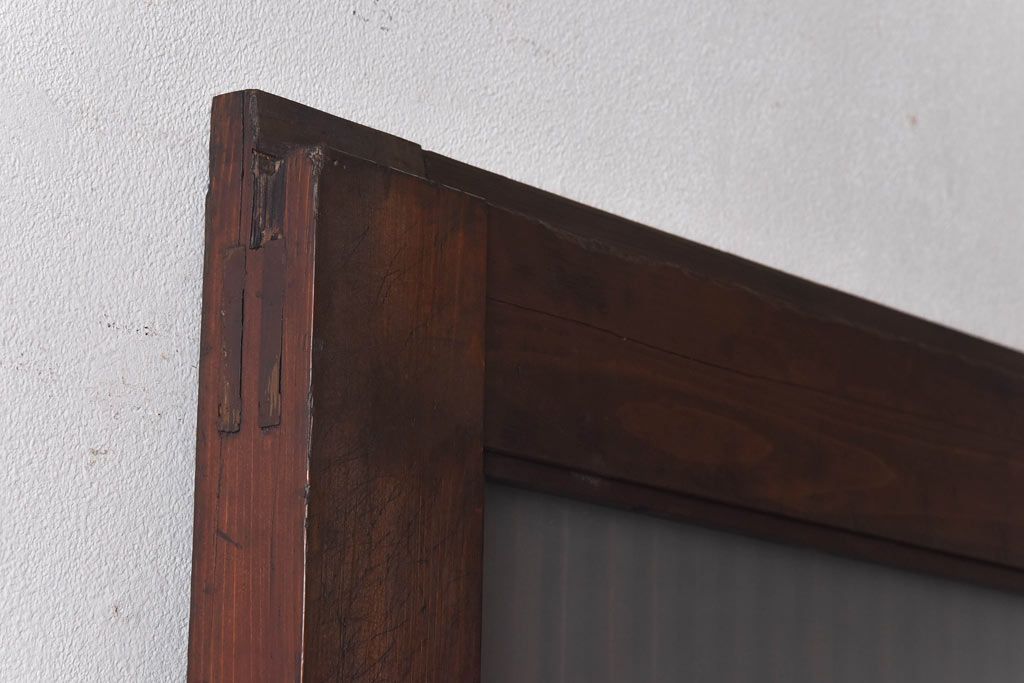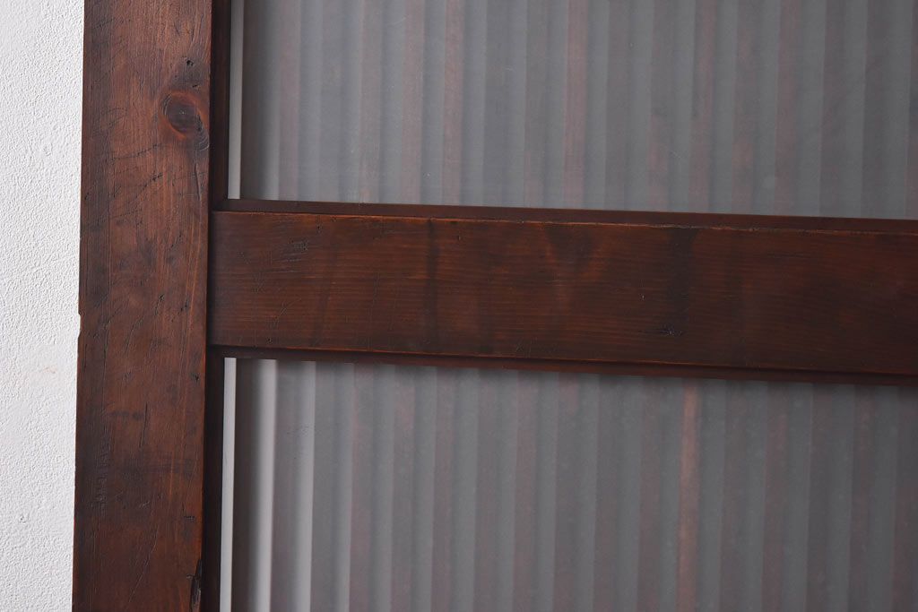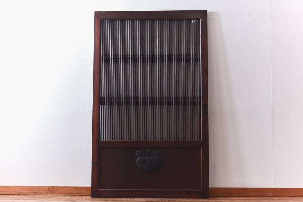 ラフジュ工房> 衝立・パーテーション> スタンド式衝立 > 和製アンティーク ヒノキ材 漆塗り 金具の細工が美しいガラス入り蔵戸(ガラス引き戸、格子戸、建具、玄関戸)