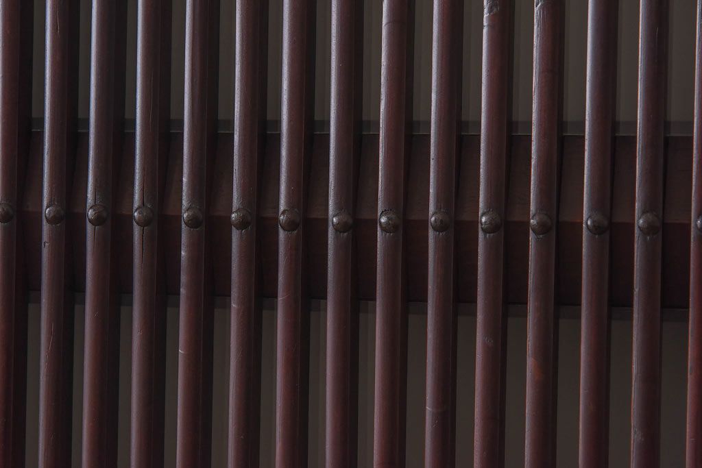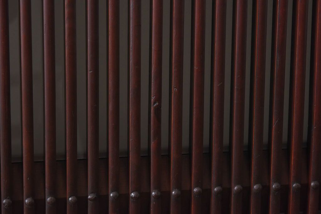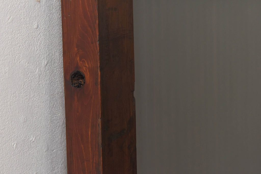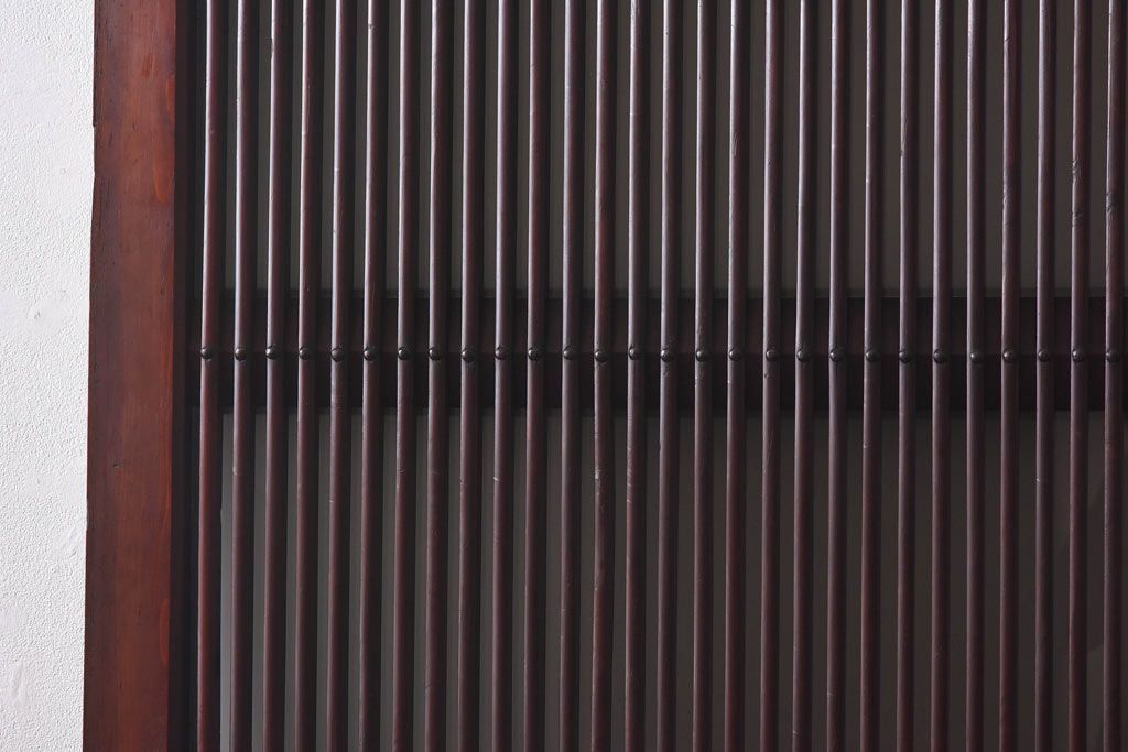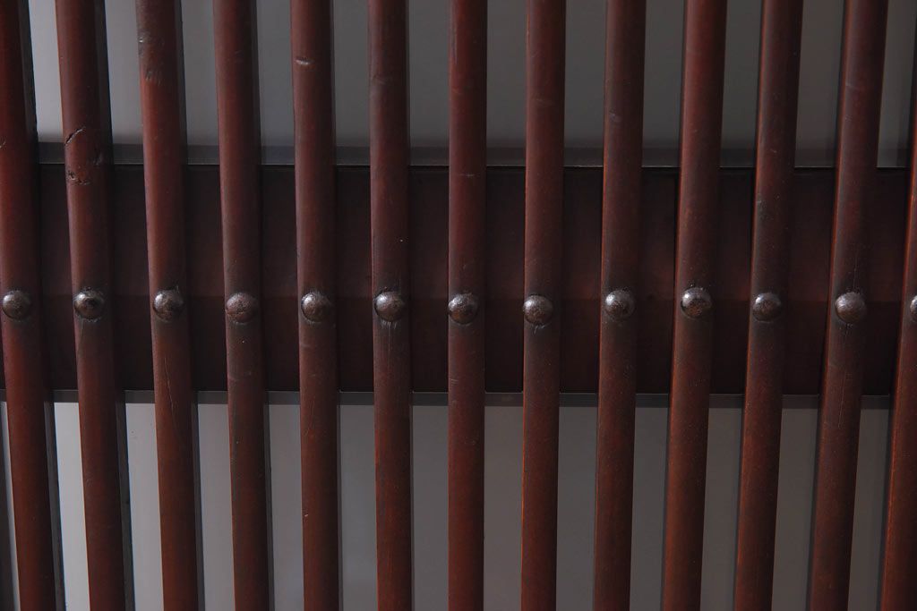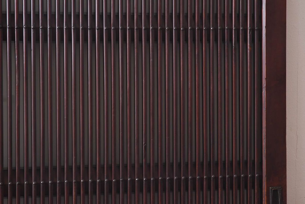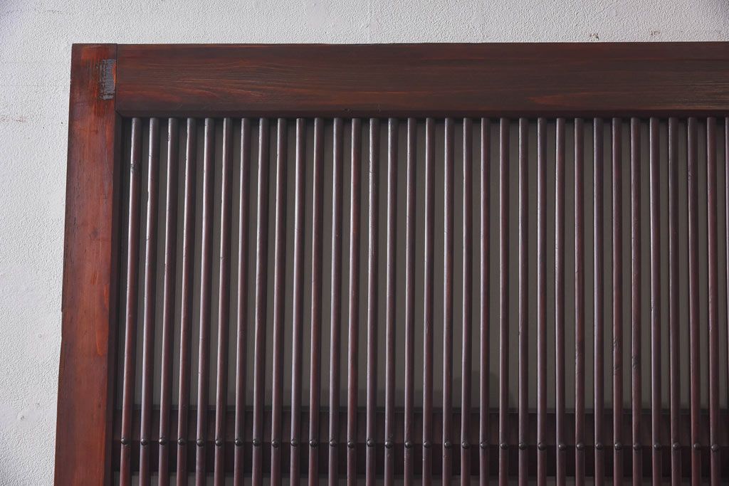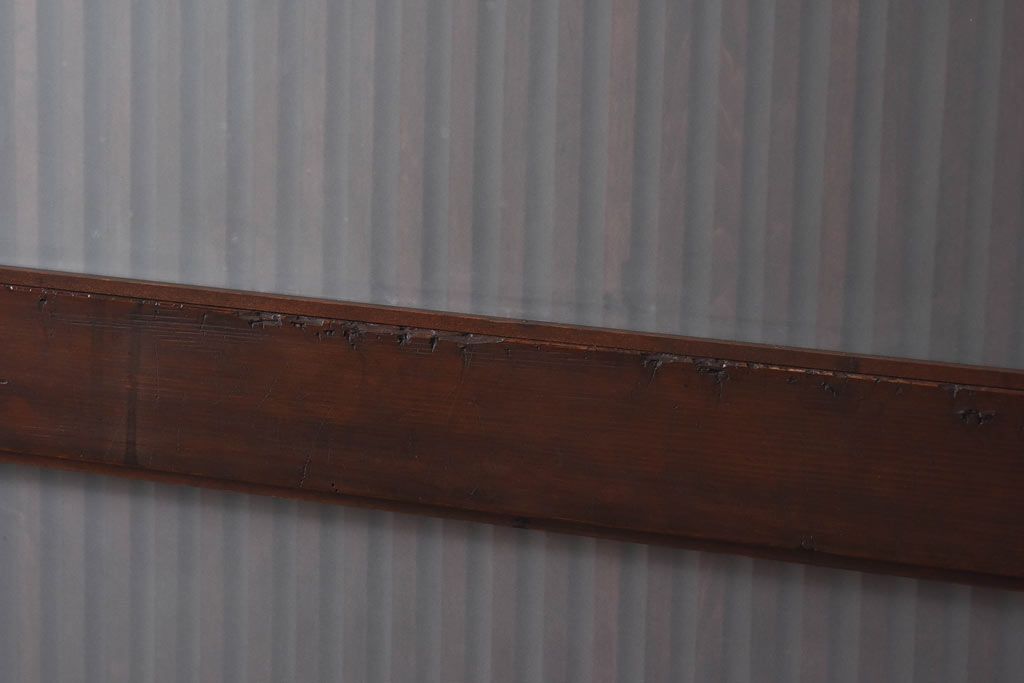 ラフジュ工房> 衝立・パーテーション> スタンド式衝立 > 和製アンティーク ヒノキ材 漆塗り 金具の細工が美しいガラス入り蔵戸(ガラス引き戸、格子戸、建具、玄関戸)