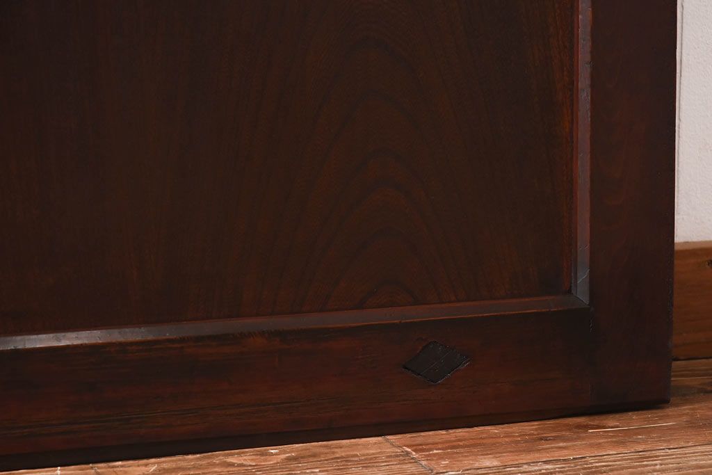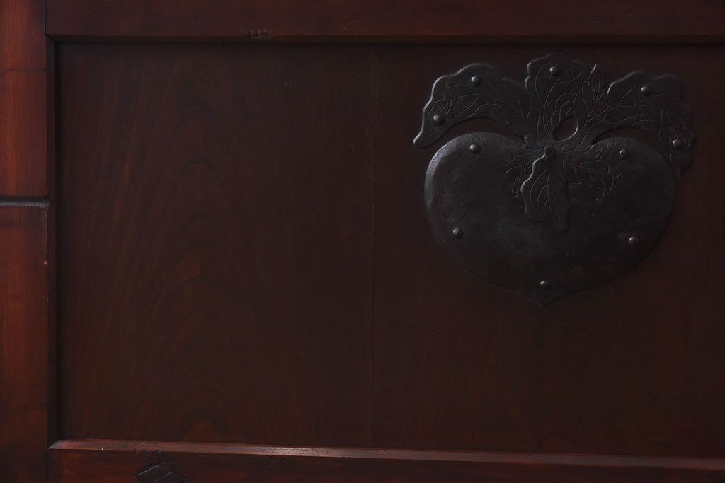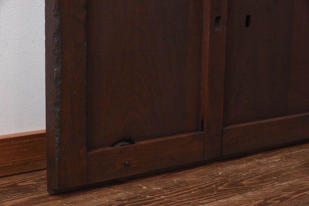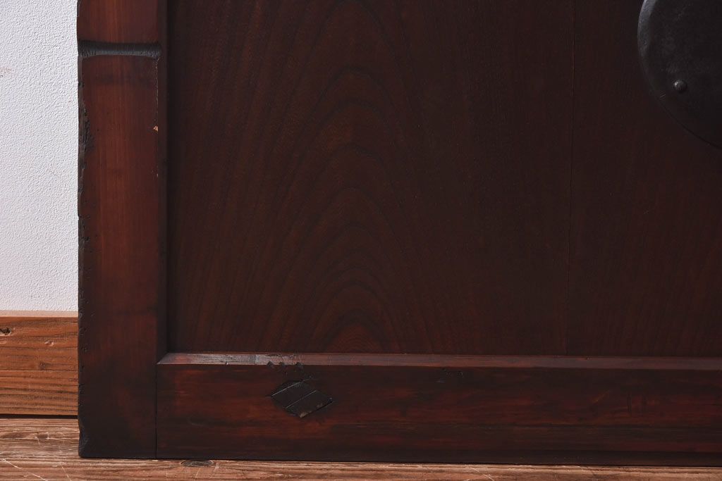 和製アンティーク ヒノキ材 漆塗り 金具の細工が美しいガラス入り蔵戸(ガラス引き戸、格子戸、建具、玄関戸)