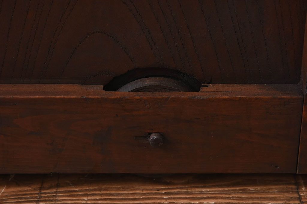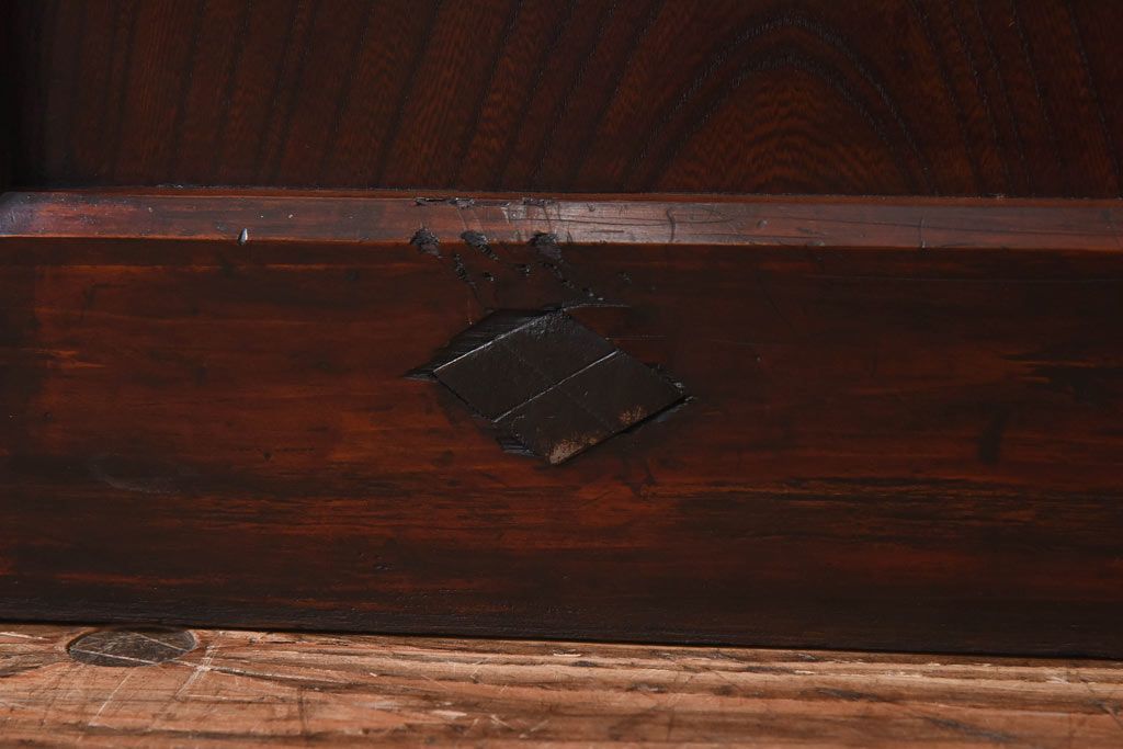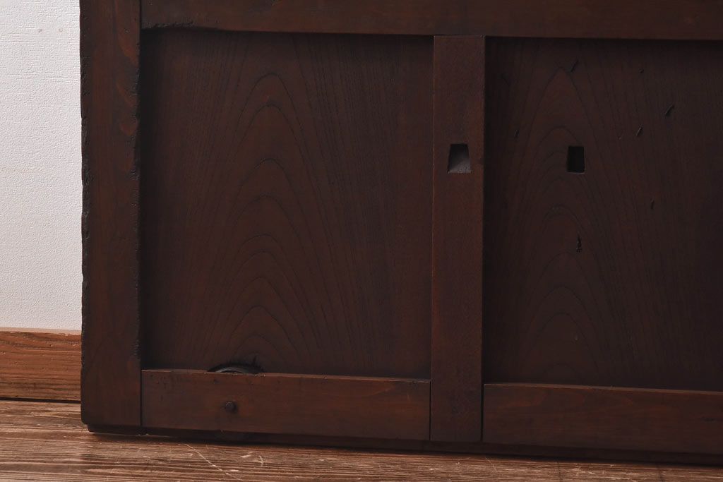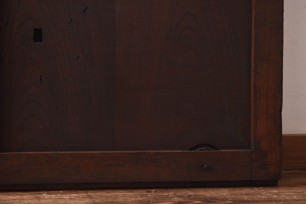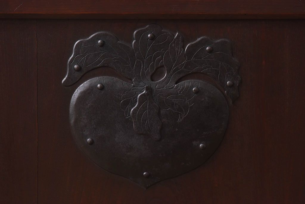 和製アンティーク ヒノキ材 漆塗り 金具の細工が美しいガラス入り蔵戸(ガラス引き戸、格子戸、建具、玄関戸)