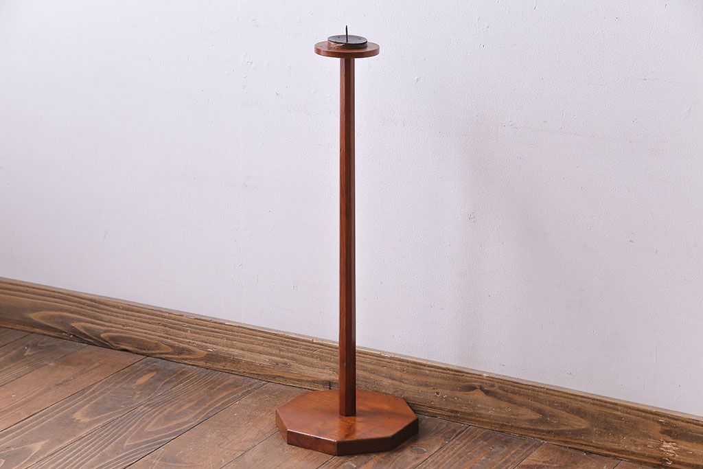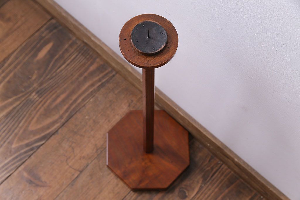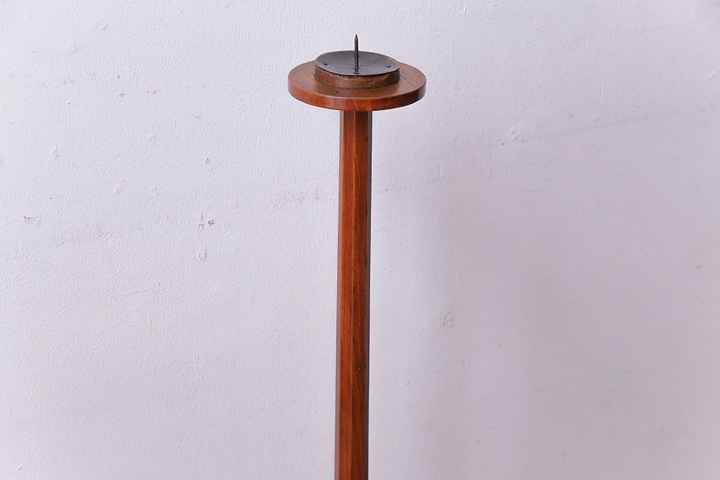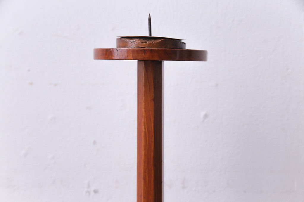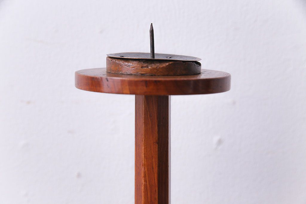 アンティーク雑貨 和製アンティーク 台座ケヤキ材 シンプルなシルエットが格好いいロウソク立て(燭台、キャンドルスタンド)(1)