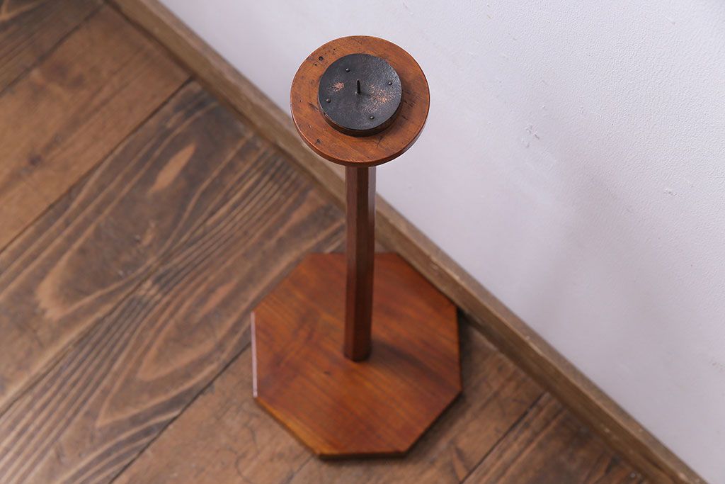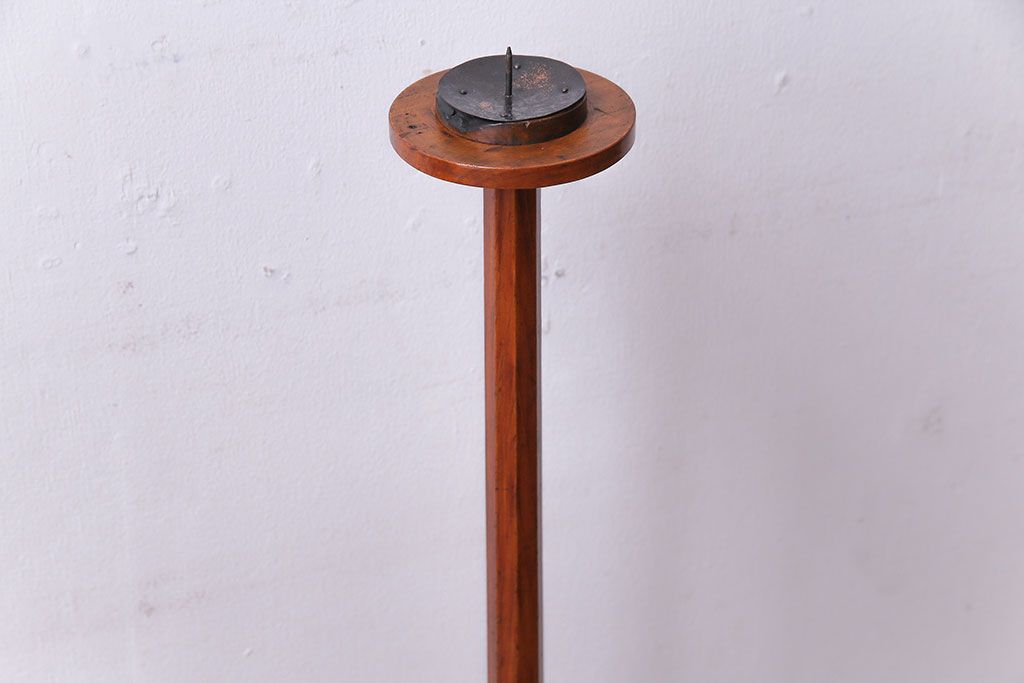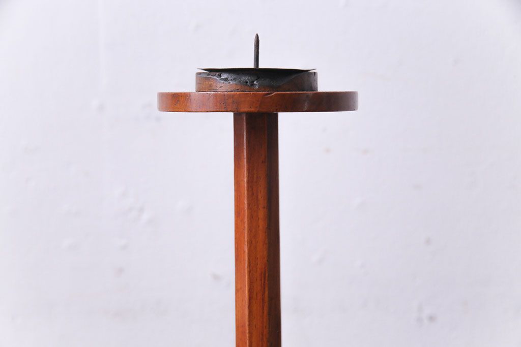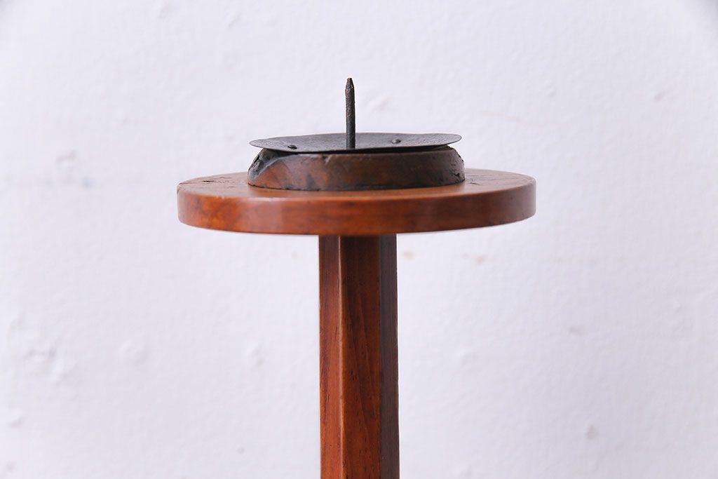 アンティーク雑貨 和製アンティーク 台座ケヤキ材 シンプルなシルエットが格好いいロウソク立て(燭台、キャンドルスタンド)(2)