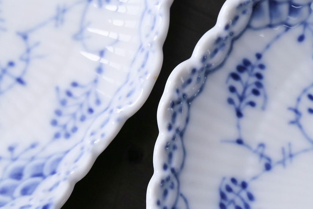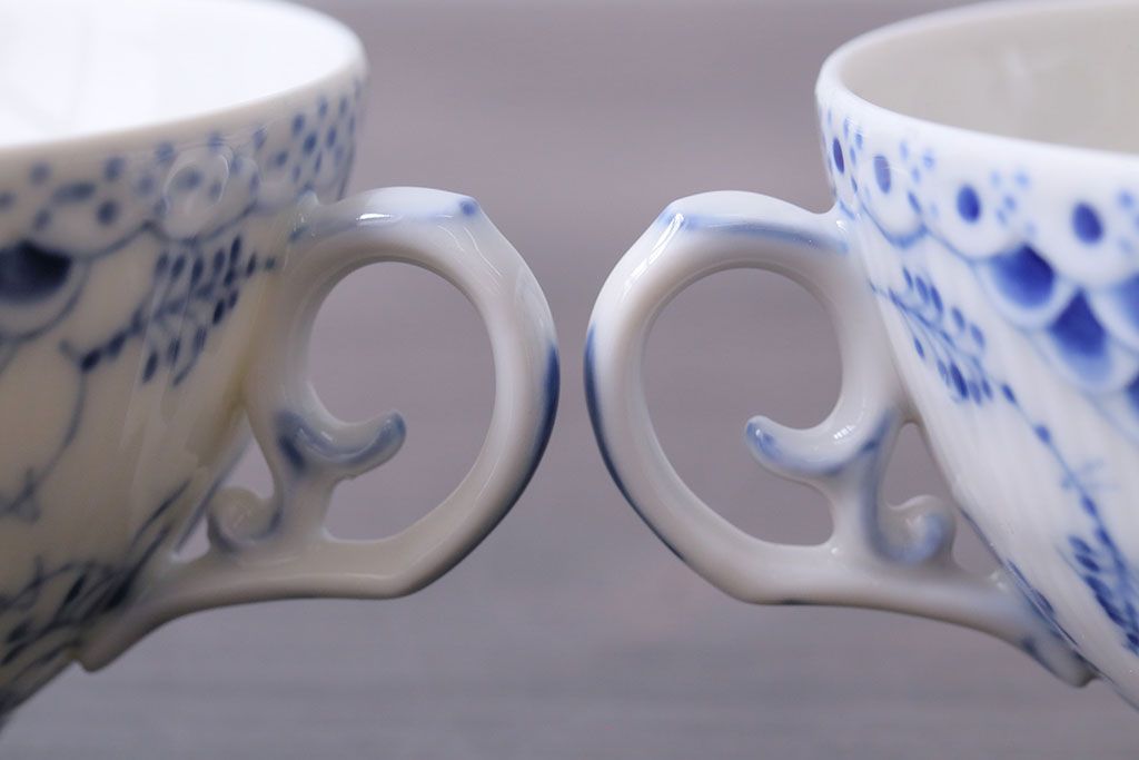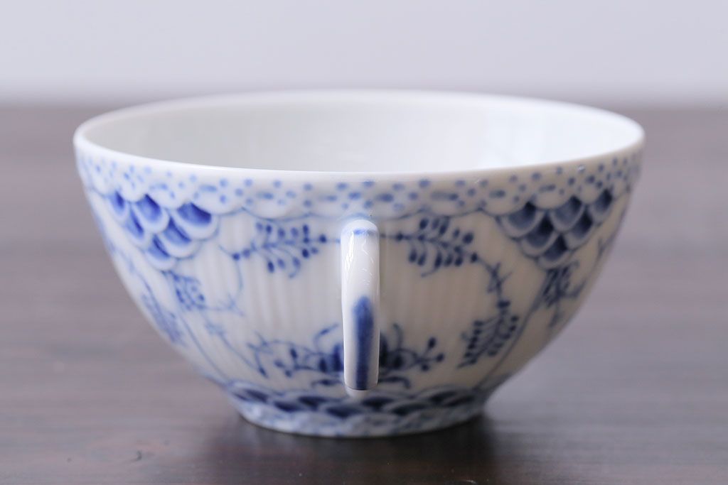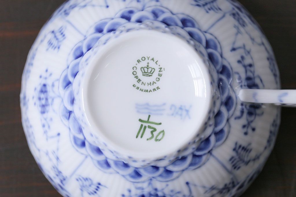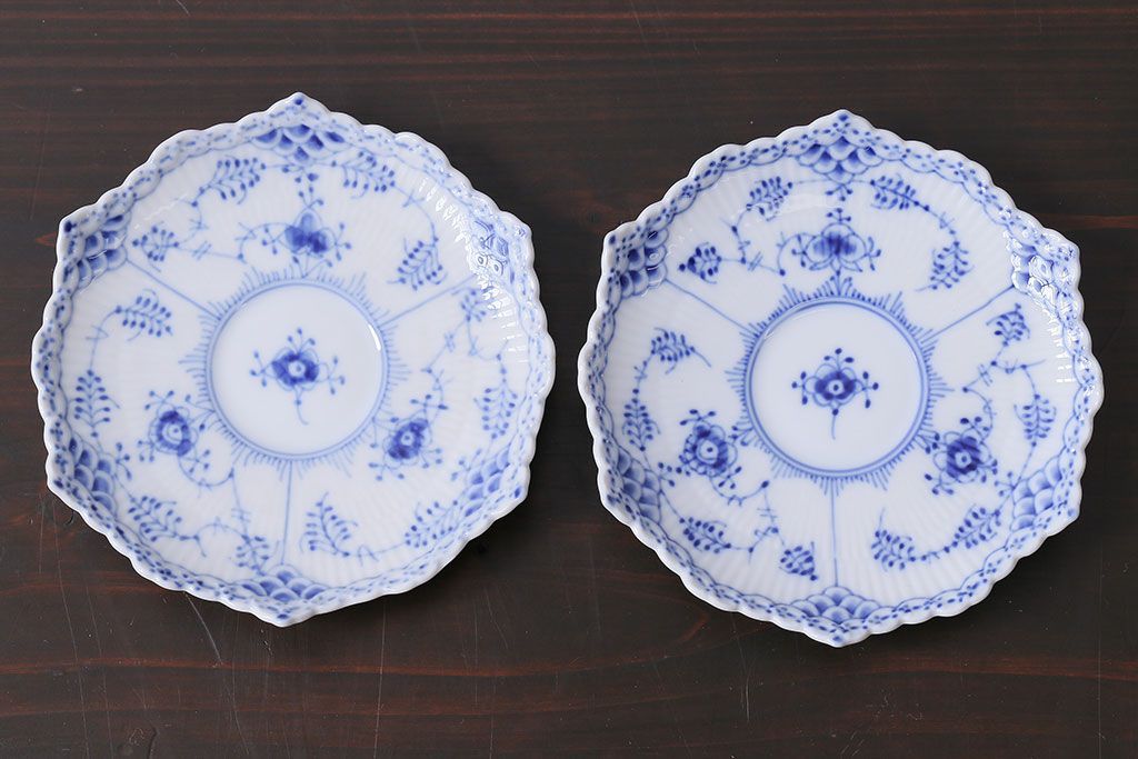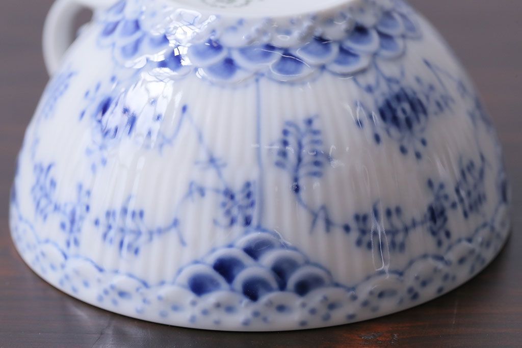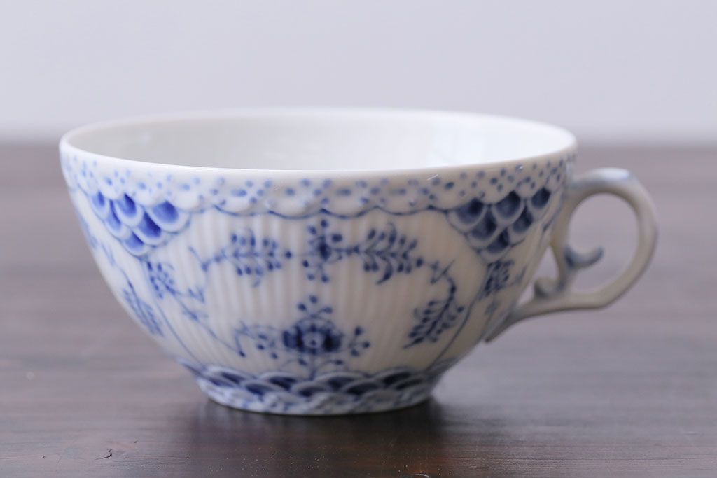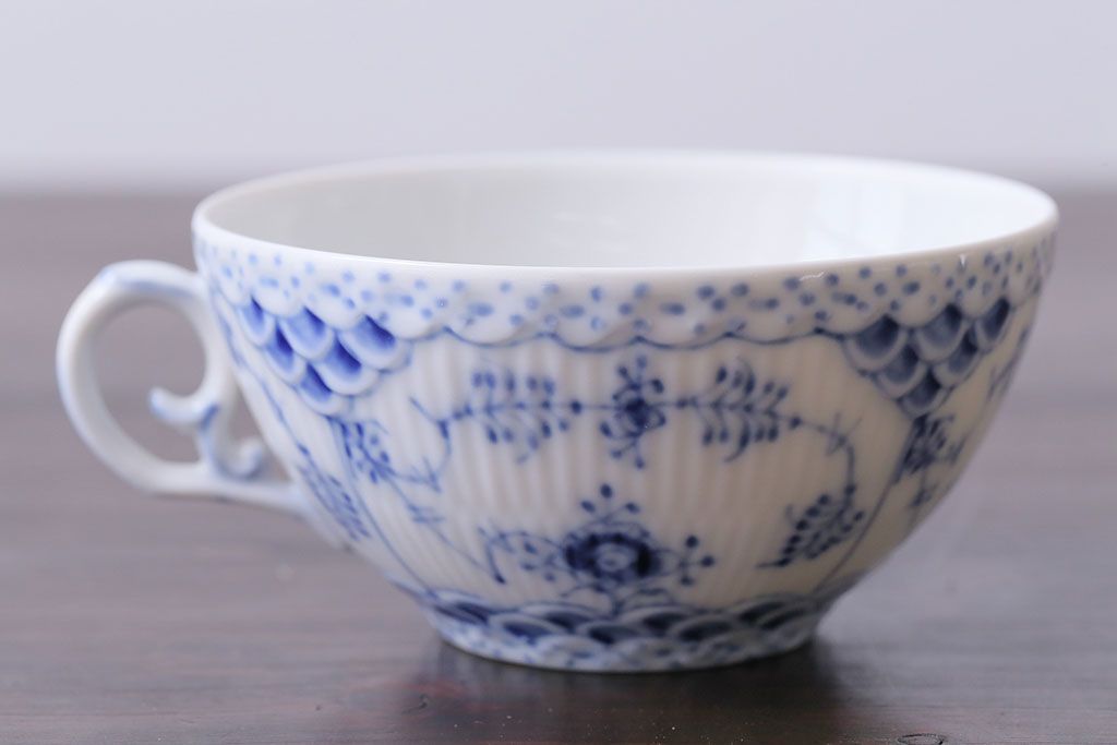 アンティーク雑貨 中古 ROYAL COPENHAGEN(ロイヤルコペンハーゲン) ブルーフルーテッド フルレース カップ&ソーサー(ティーカップ、洋食器)2客セット(定価約8万6千円)(1)