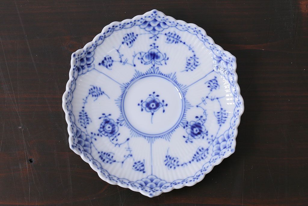 ラフジュ工房> 洋食器・キッチン用品> ティーセット > アンティーク雑貨 中古 ROYAL COPENHAGEN(ロイヤルコペンハーゲン) ブルーフルーテッド フルレース カップ&ソーサー(ティーカップ、洋食器)2客セット(定価約8万6千円)(1)