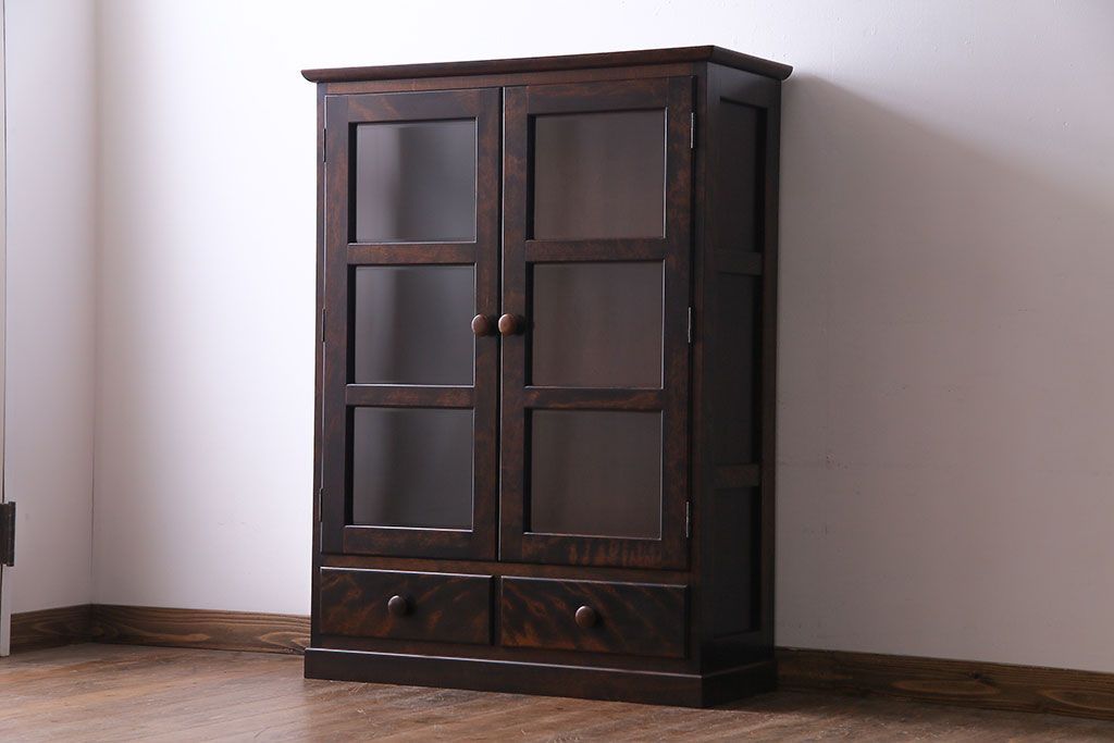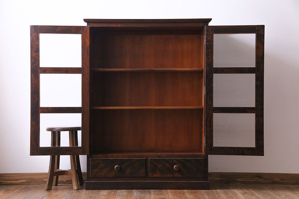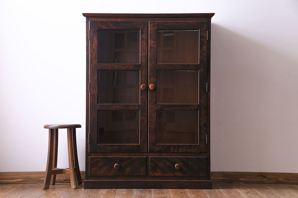 中古美品 ビンテージ 松本民芸家具 深い色味が魅力的な小振りの本箱(飾り棚、食器棚、キャビネット)