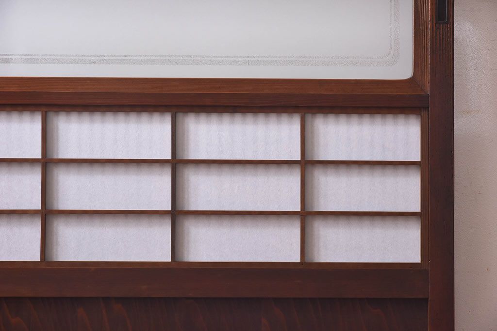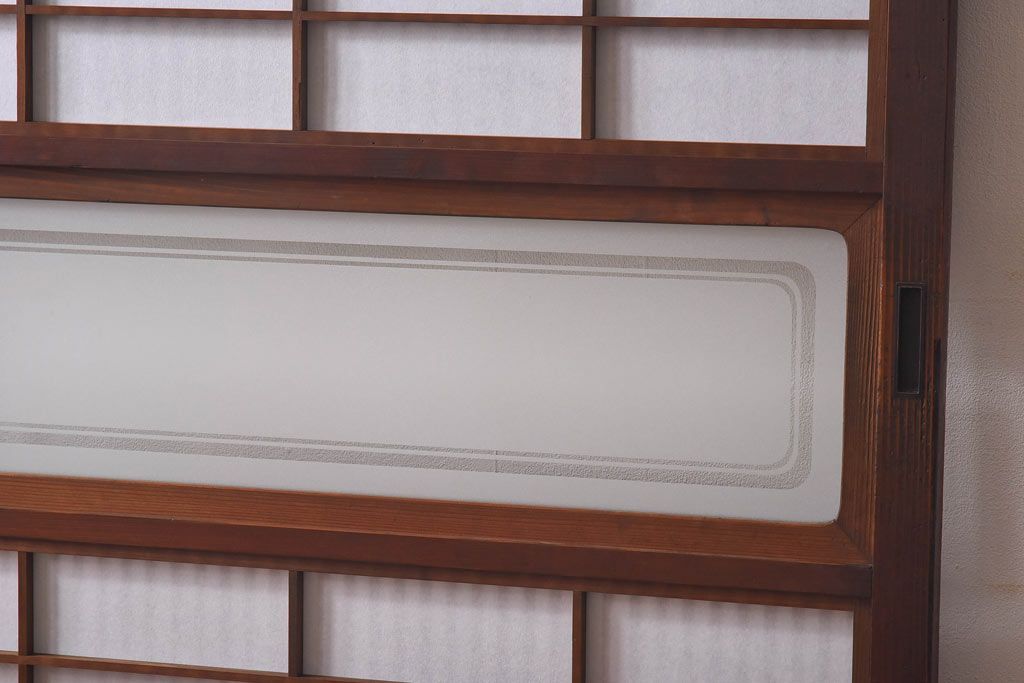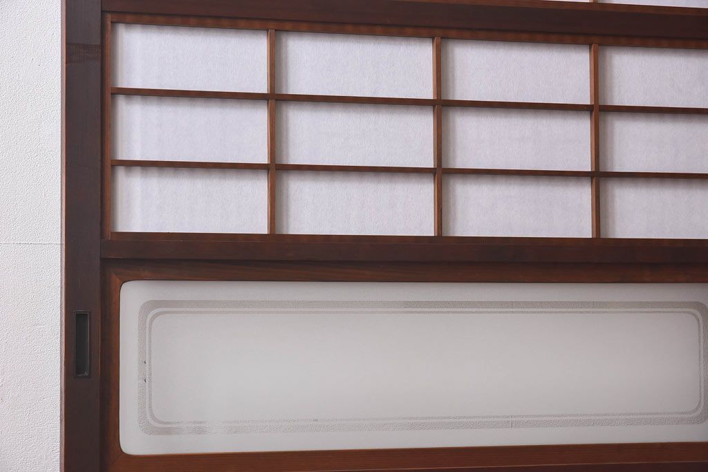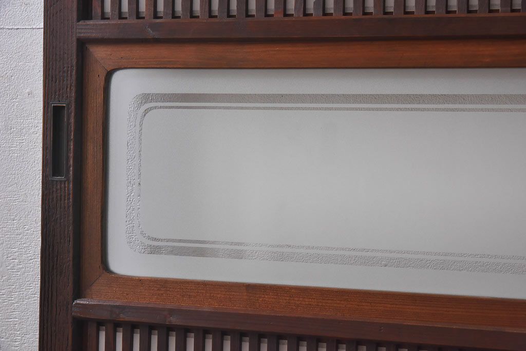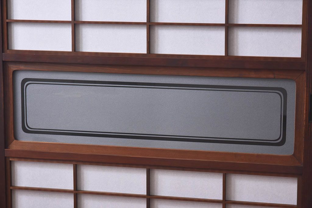 デザインガラス 細身の桟が上品な裏障子付き格子戸(引き戸、建具、ガラス帯戸)