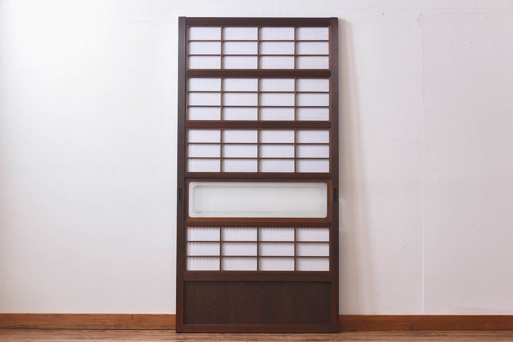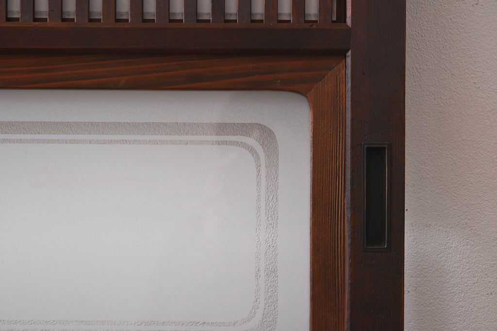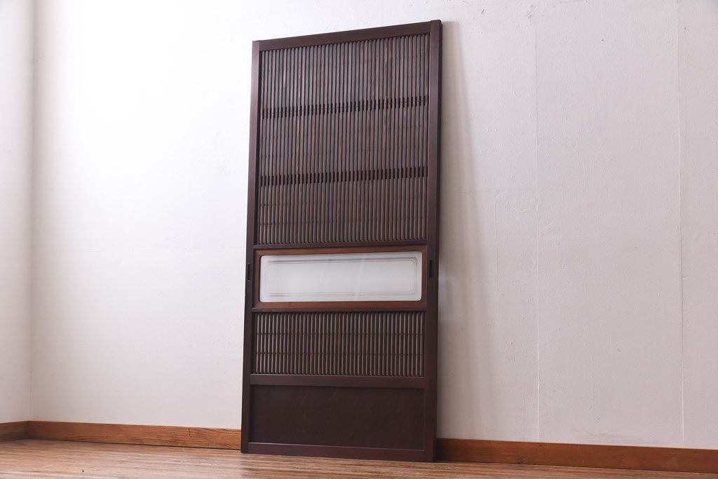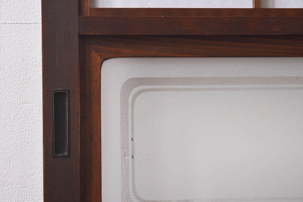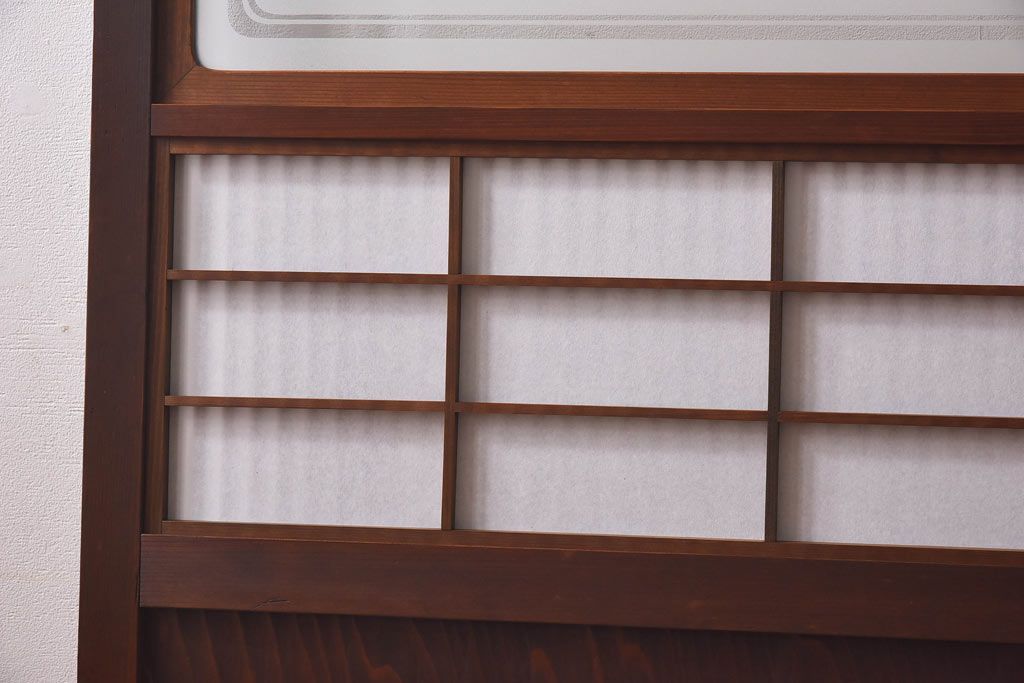 デザインガラス 細身の桟が上品な裏障子付き格子戸(引き戸、建具、ガラス帯戸)