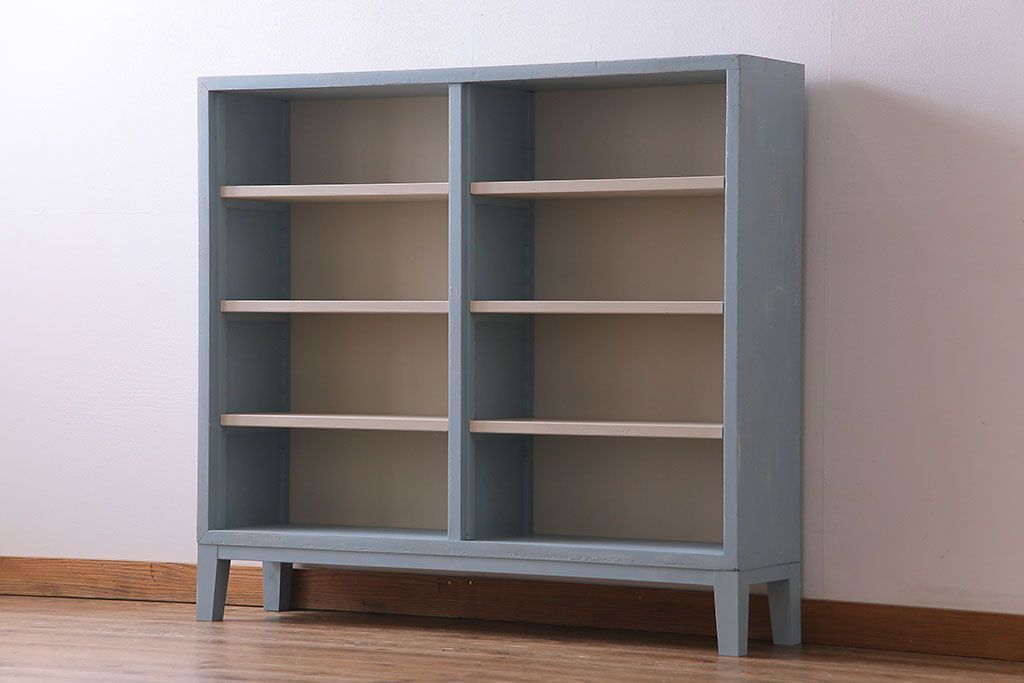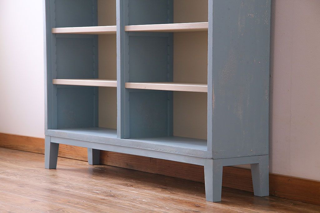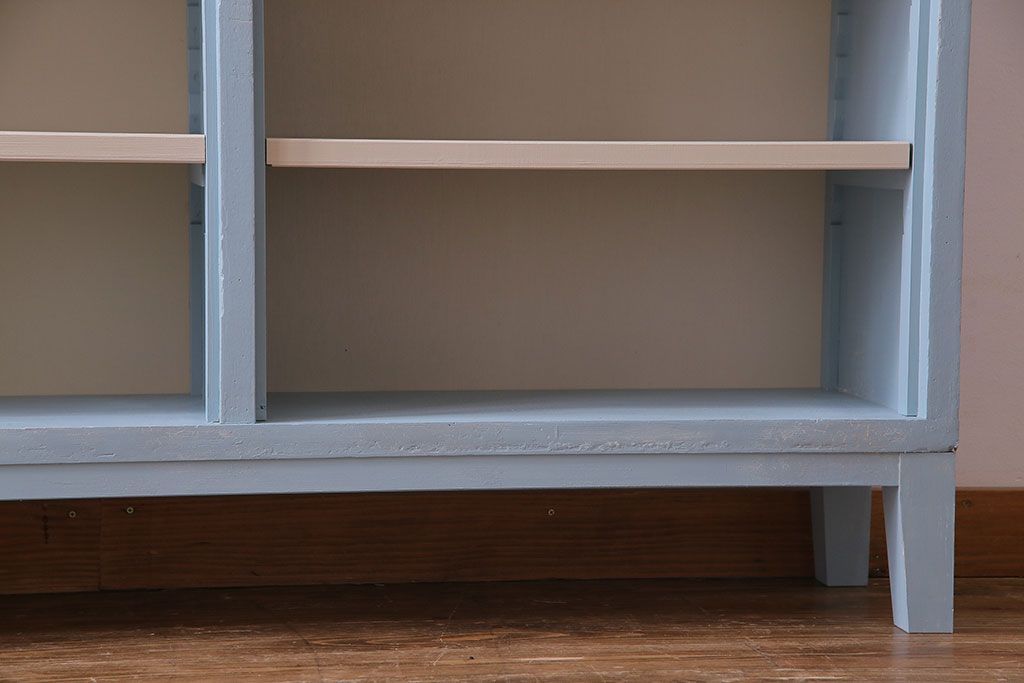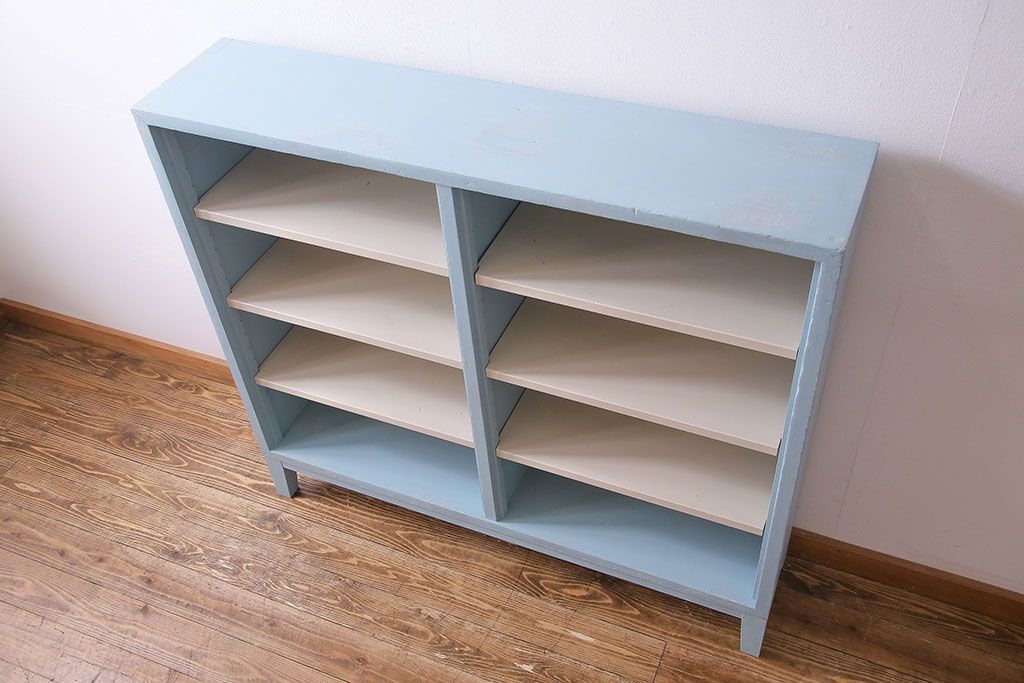 ペイント家具 淡い色合いが爽やかな印象のオープンラック(陳列棚、本棚、ブックシェルフ)(1)です。